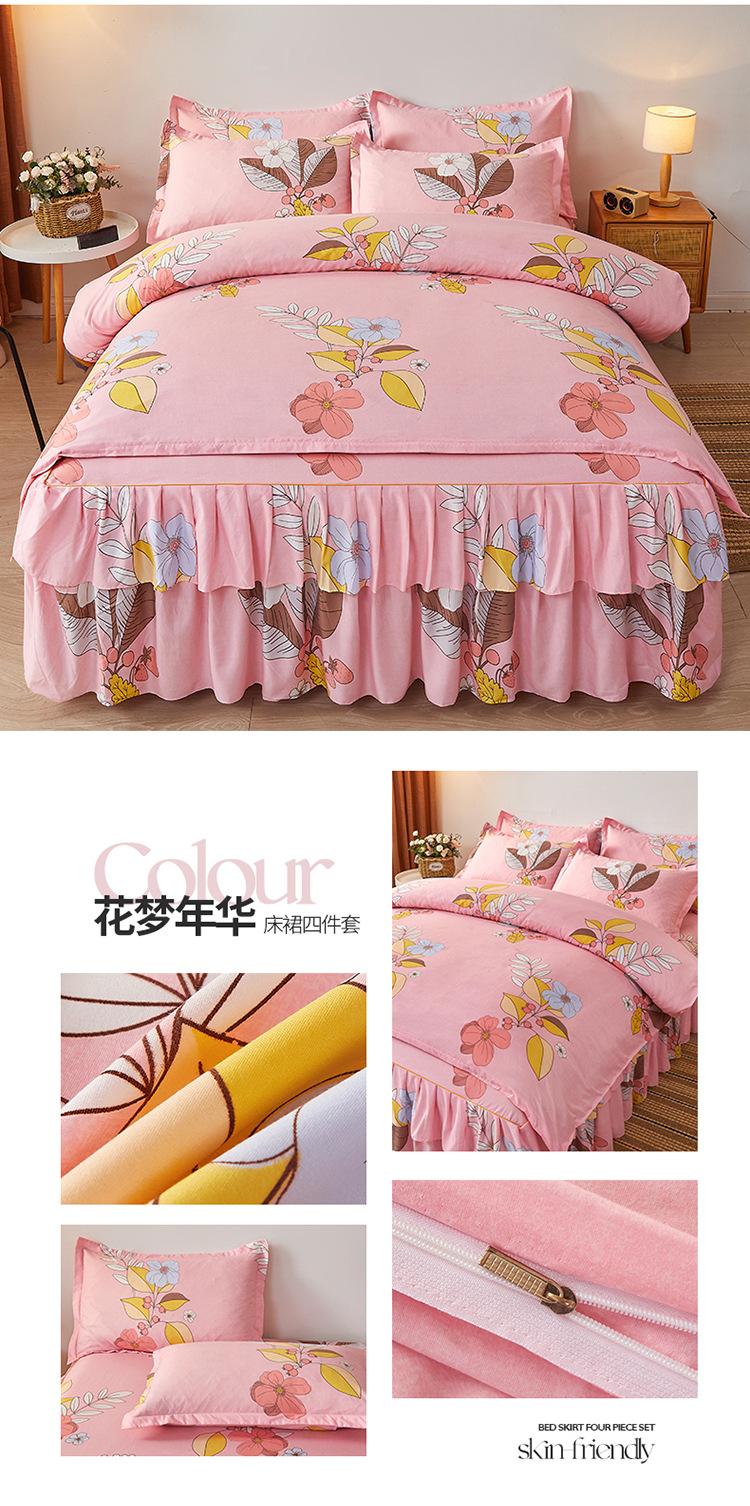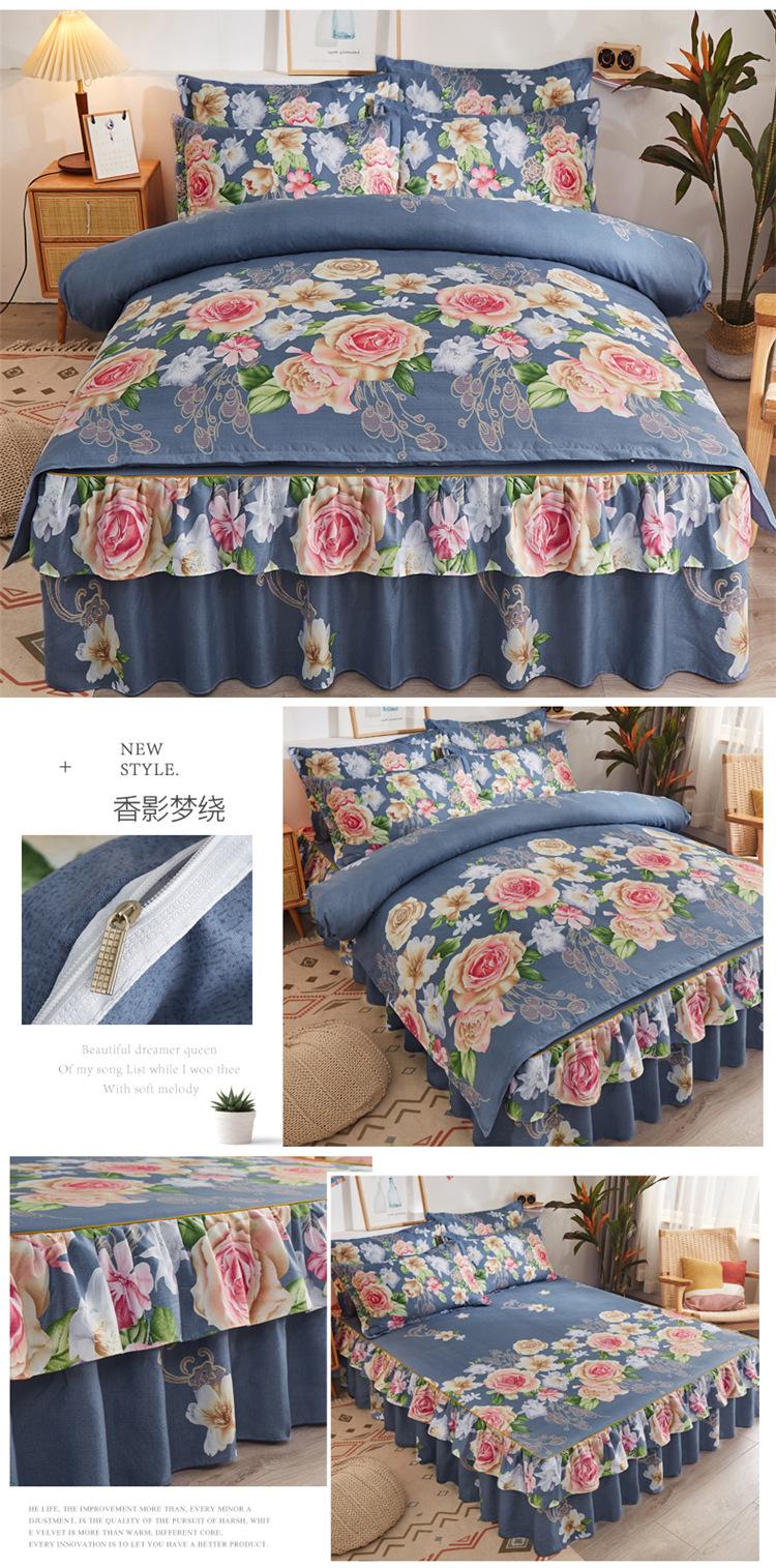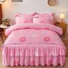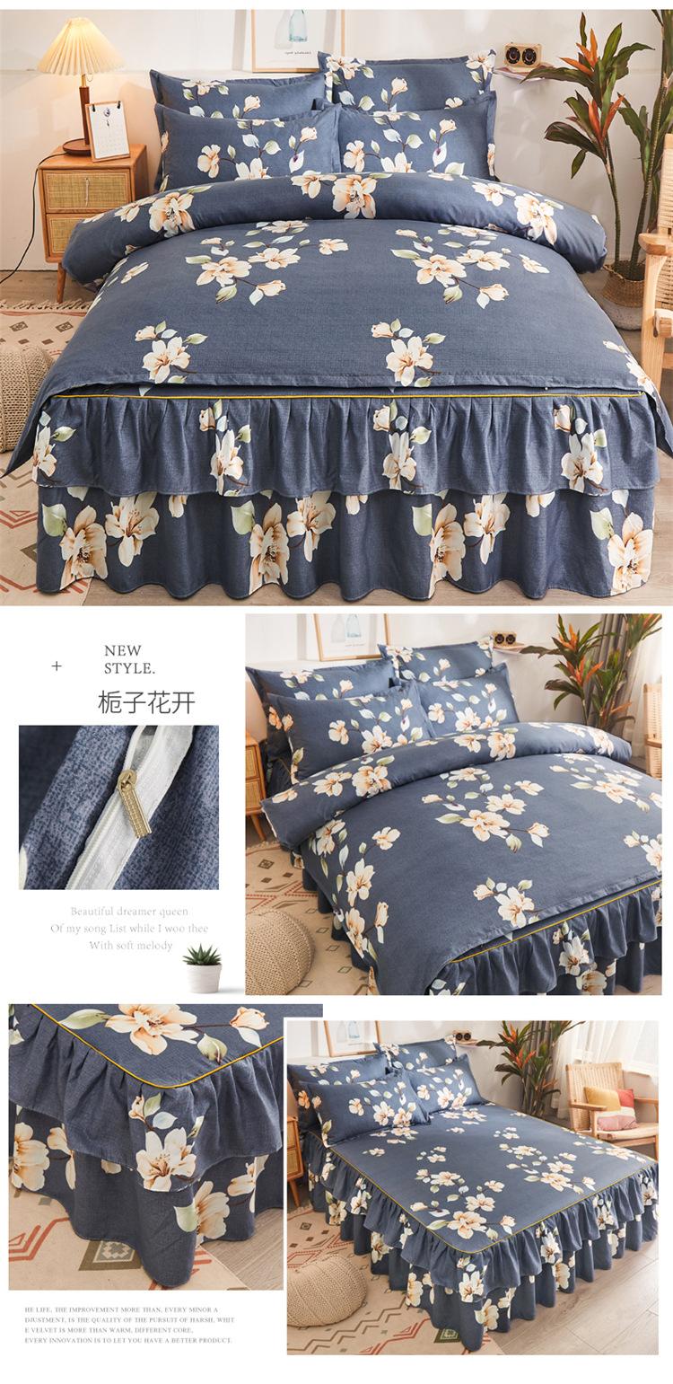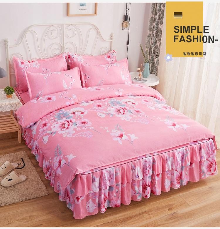Falda de cama cepillada suave para la piel estilo coreano de cuatro piezas funda de edredón engrosada protector de colchón Simmons juego de tres piezas para regalo venta al por mayor