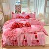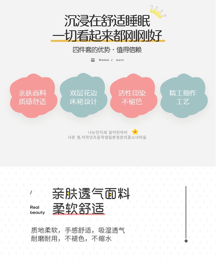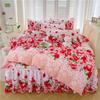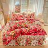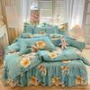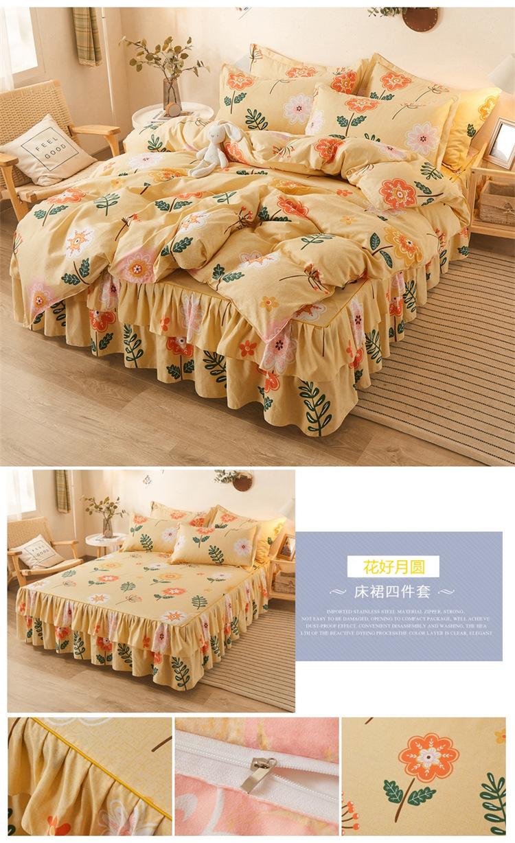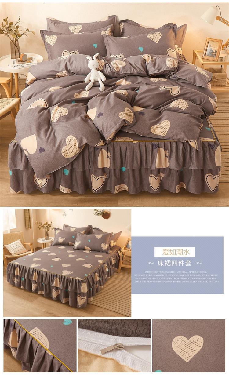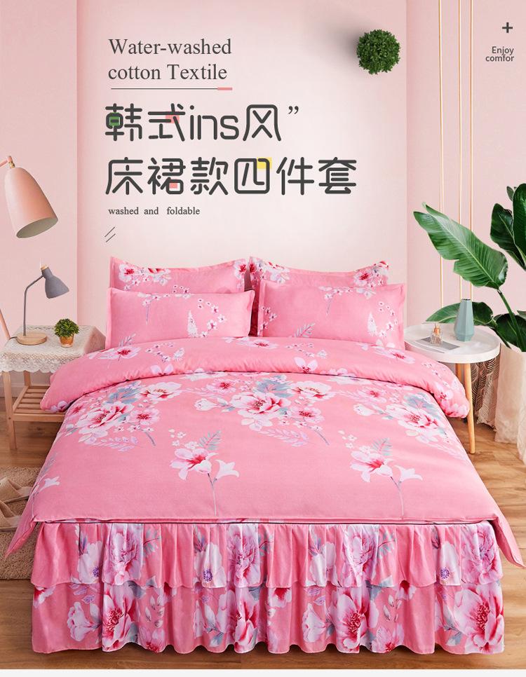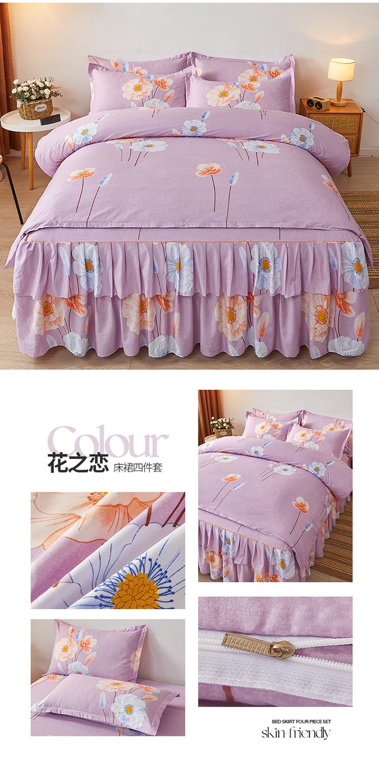 Falda de cama cepillada suave para la piel estilo coreano de cuatro piezas funda de edredón engrosada protector de colchón Simmons juego de tres piezas para regalo venta al por mayor