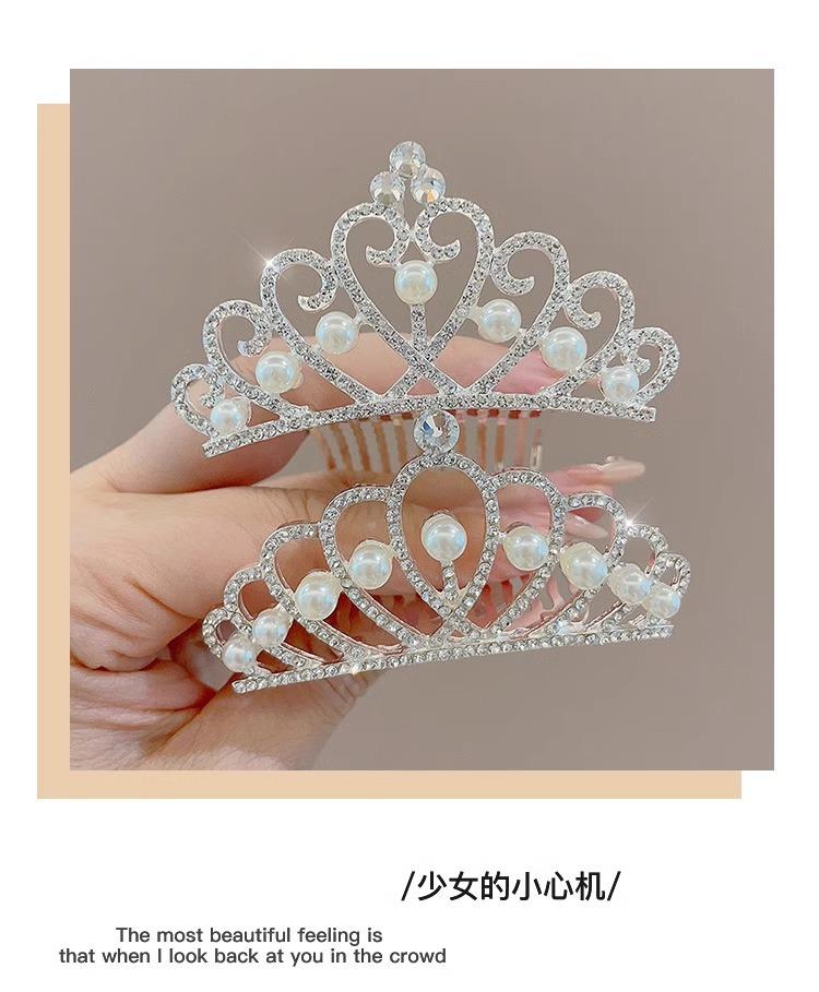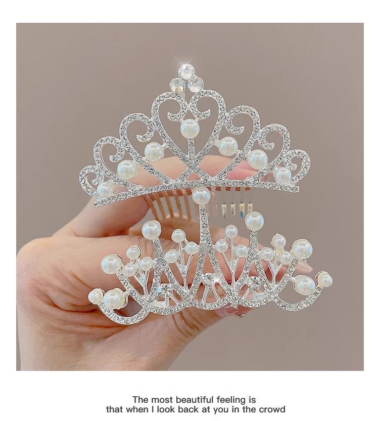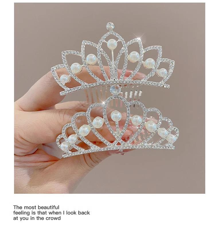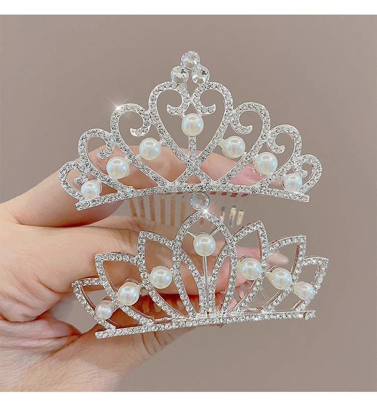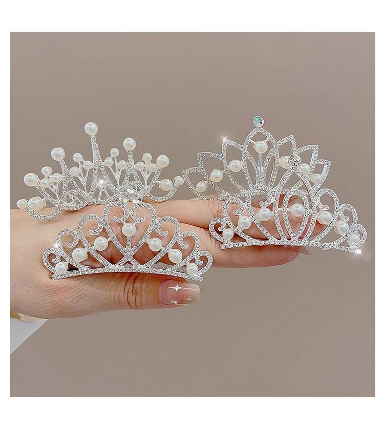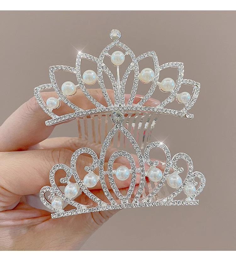 2#Diamond crown water hair comb, 4#Flower colored diamond hair comb, Heart pearl crown hair comb (girls love i...