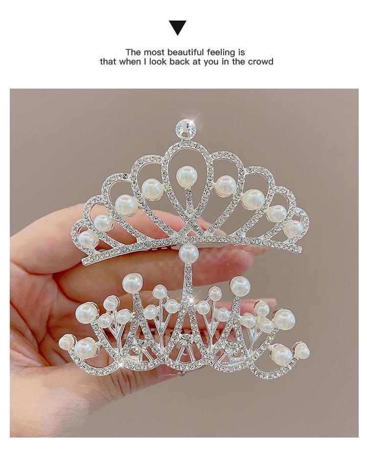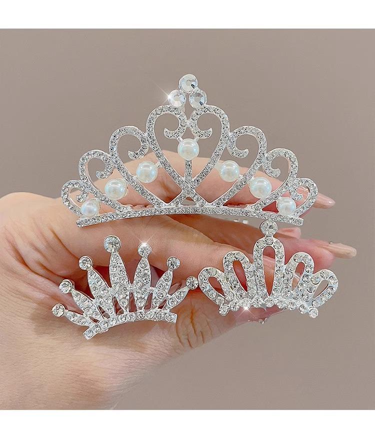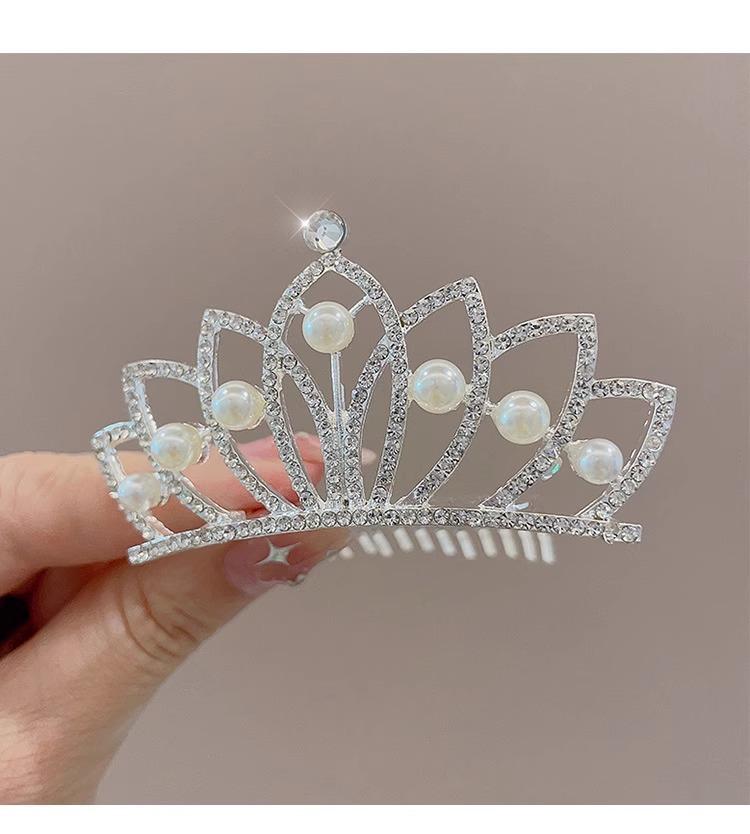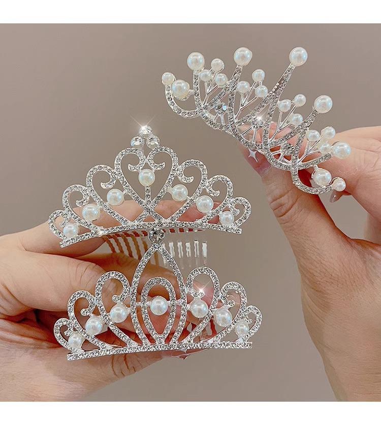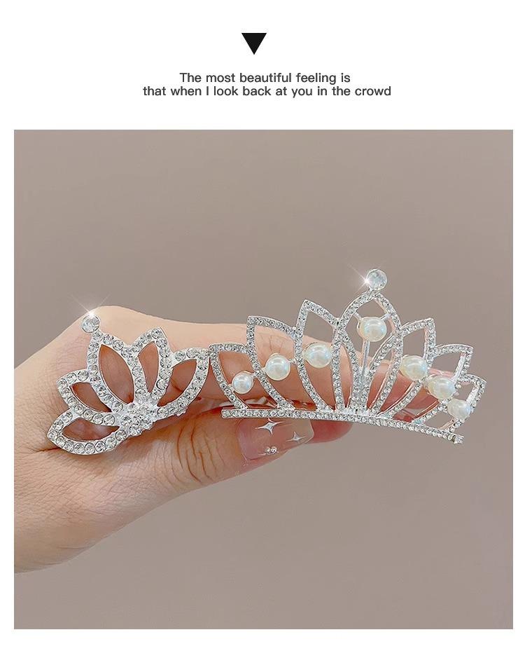 2#Diamond crown water hair comb, 4#Flower colored diamond hair comb, Heart pearl crown hair comb (girls love i...
