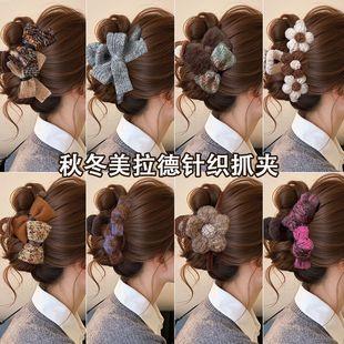 Clip de garra de lazo tejido de otoño e invierno para mujer 2025 nuevo de alta gama para moño en la parte posterior de la cabeza, clip de tiburón para tarjeta, tocado de flor