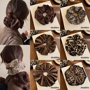 Scrunchie coreano de alta gama con estampado de leopardo para mujer 2025 nuevo coletero para moño, lazo para el cabello con temperamento para coleta, cuerda para el cabello, accesorios para el cabello