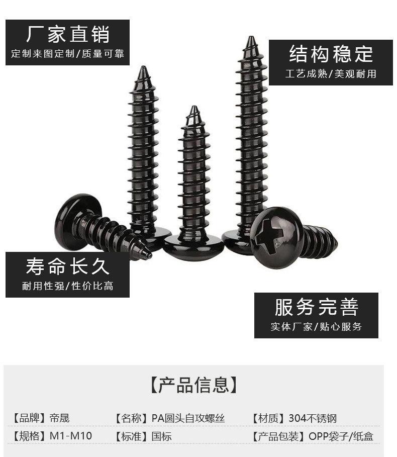 Acero Inoxidable 304 Zincado Negro Tornillos Autorroscantes de Cabeza Redonda Phillips Cabeza Pan M2M3M4M5M6 Tornillos Pequeños Autorroscantes Negros
