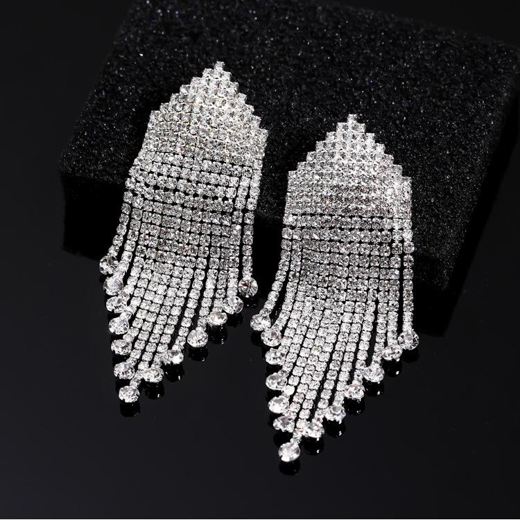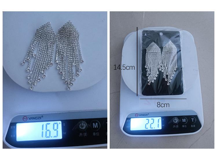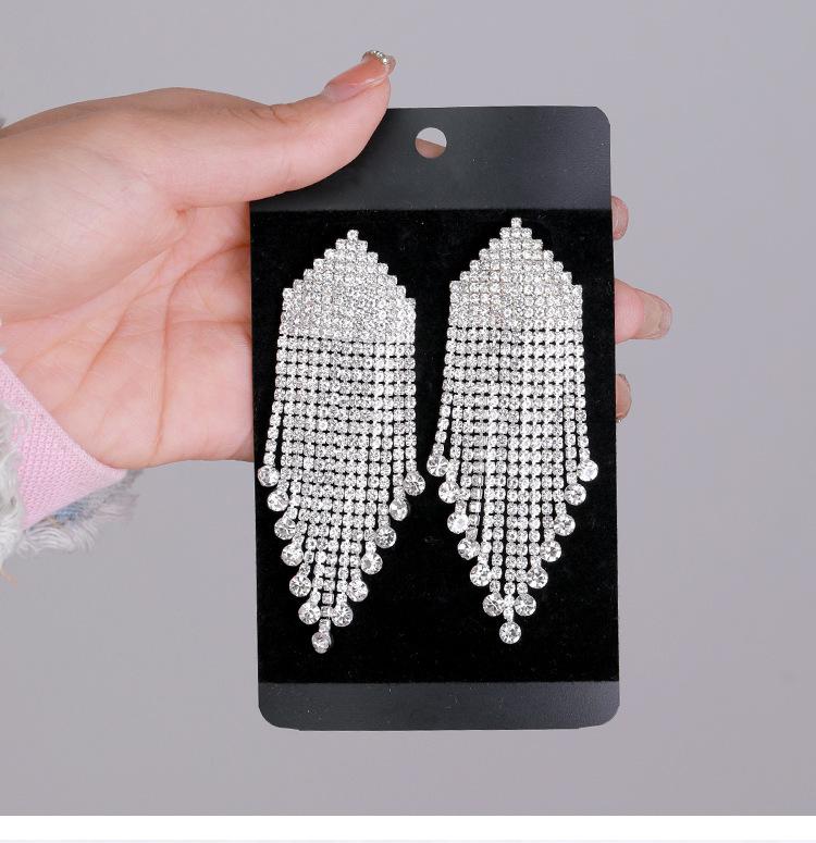 Pendientes largos con borlas de diamantes de moda europea y americana, pendientes largos con borlas de diamantes con clip de cadena exagerado, pendientes de diamantes con personalidad
