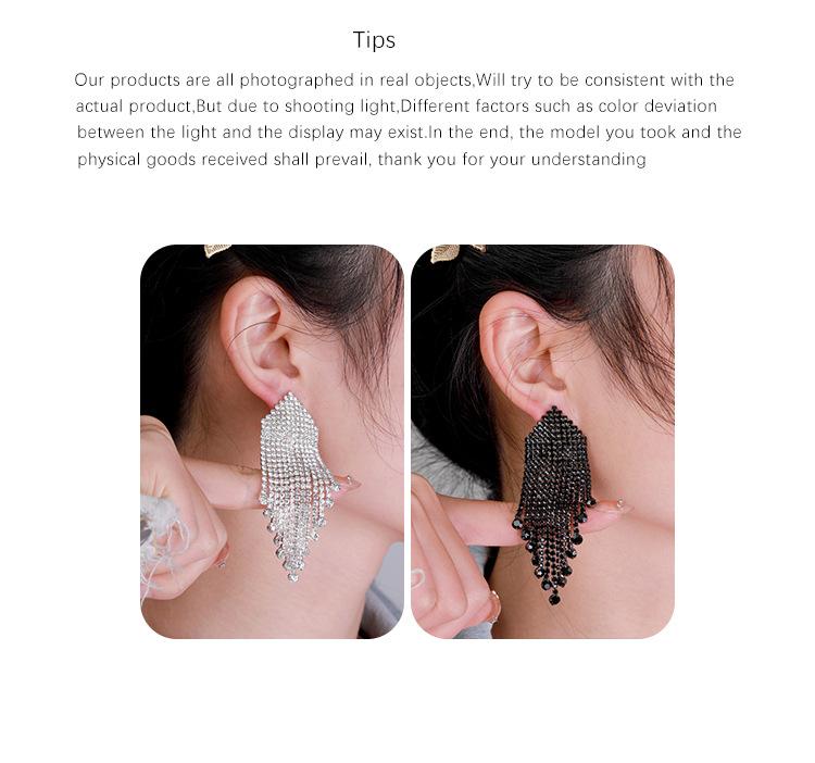 Pendientes largos con borlas y diamantes de imitación para mujer, de aleación y con clip, de estilo europeo y americano, muy vendidos.