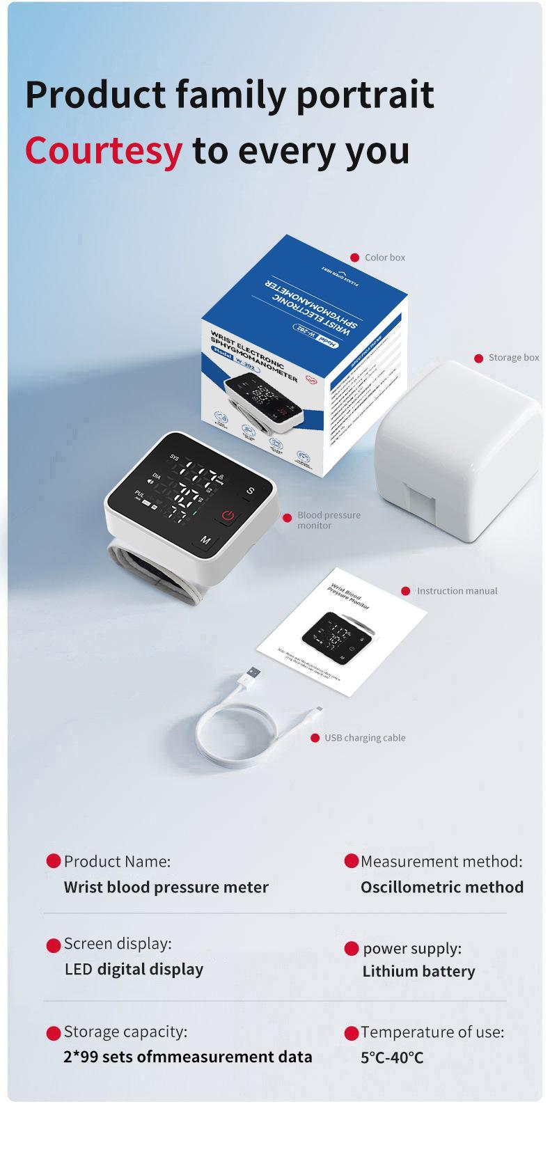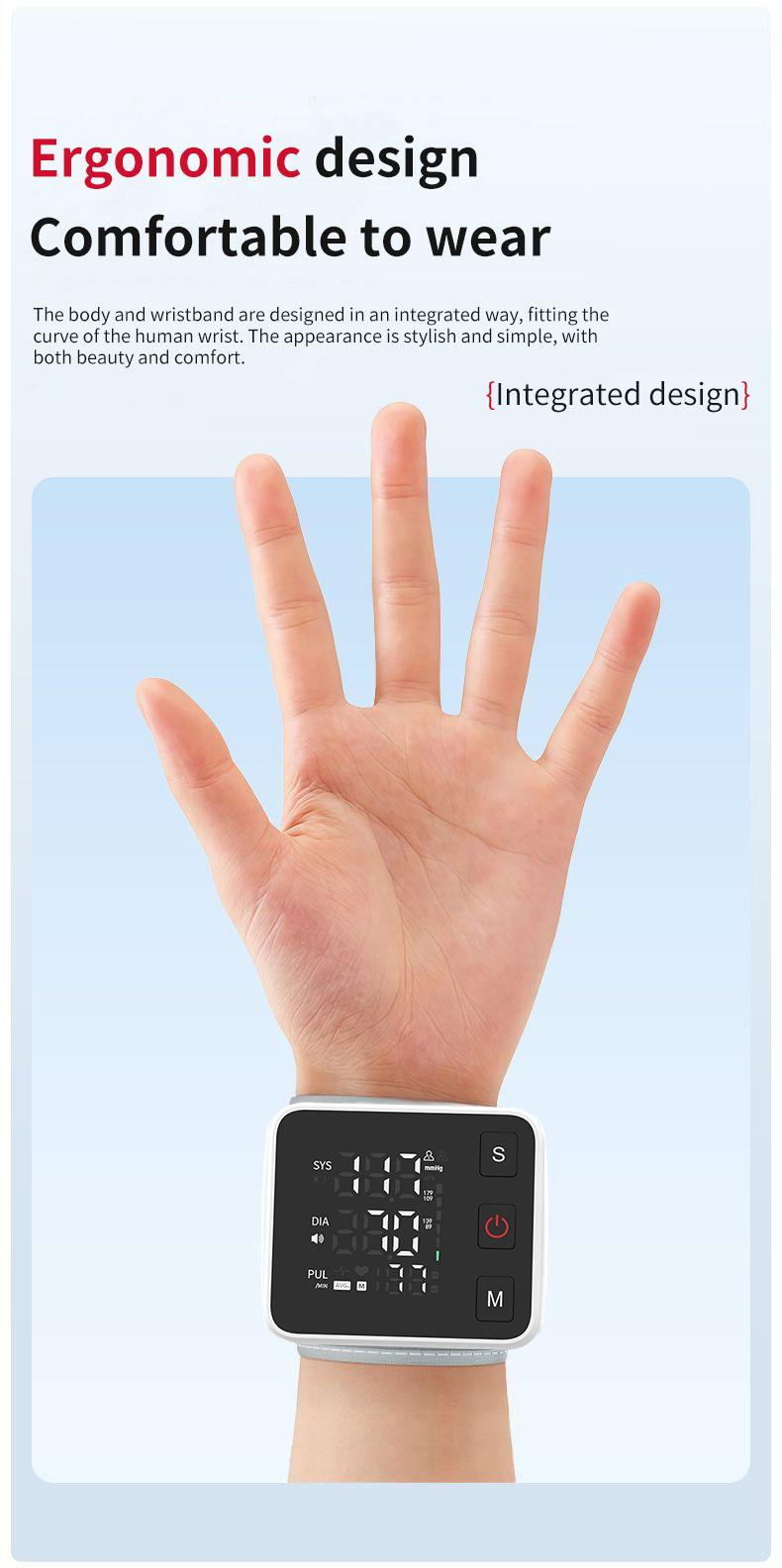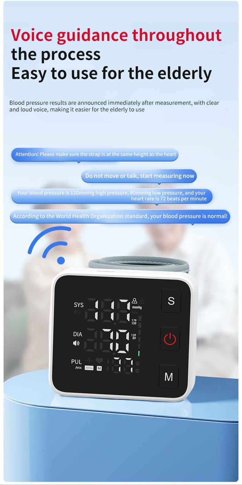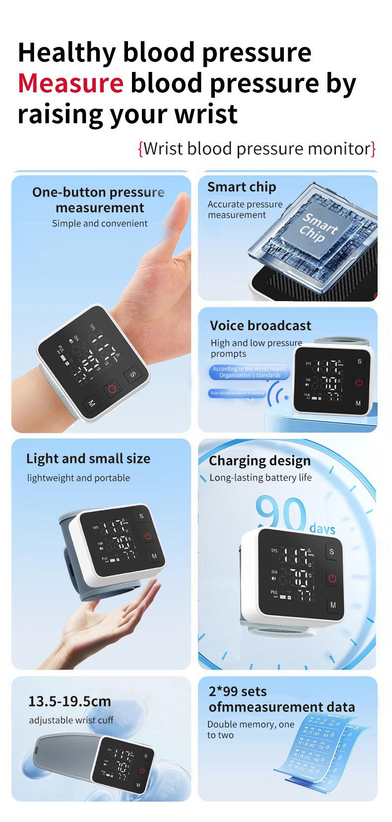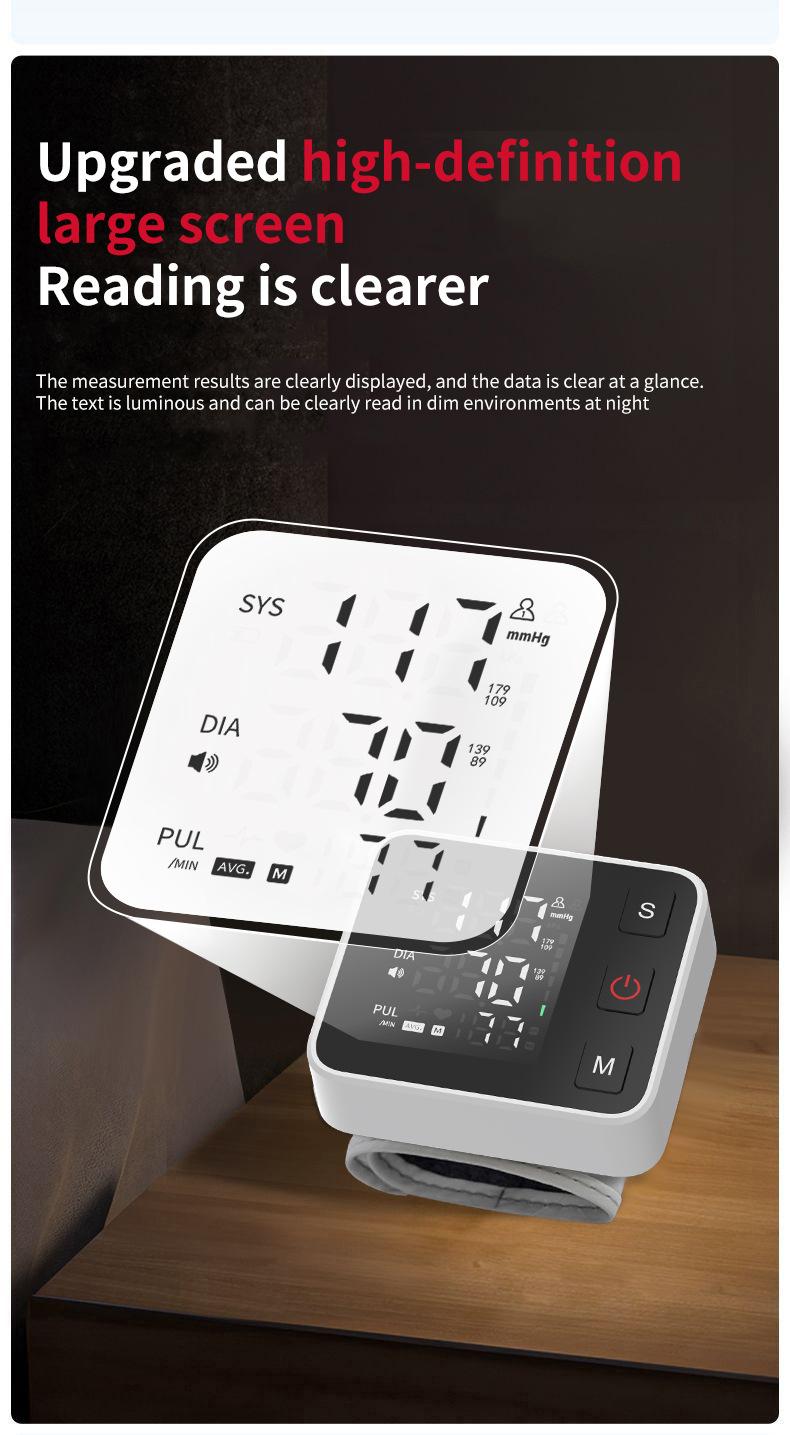 Monitor de Presión Arterial de Muñeca Medidor de Presión Arterial Hogar Electrónico Alta Precisión Tabla de Presión Arterial Monitor de Presión Arterial Portátil