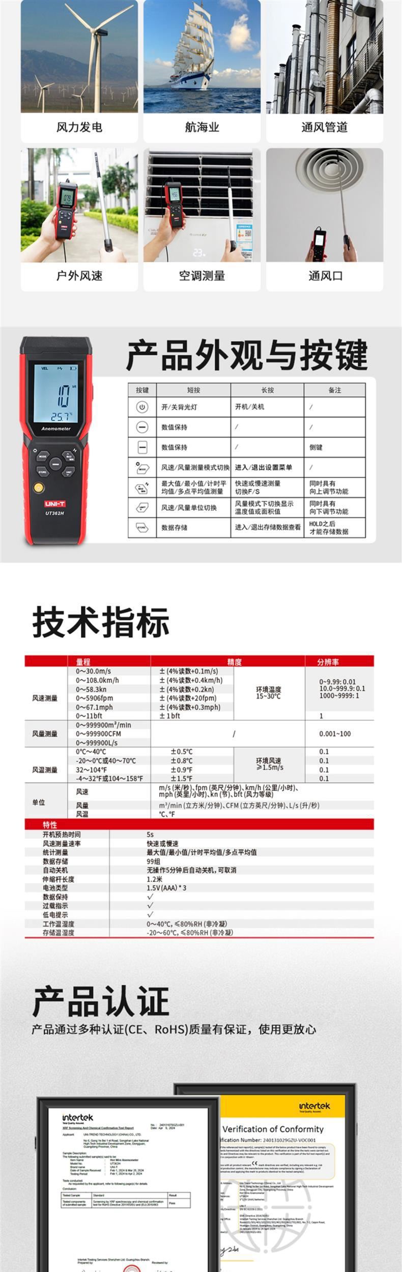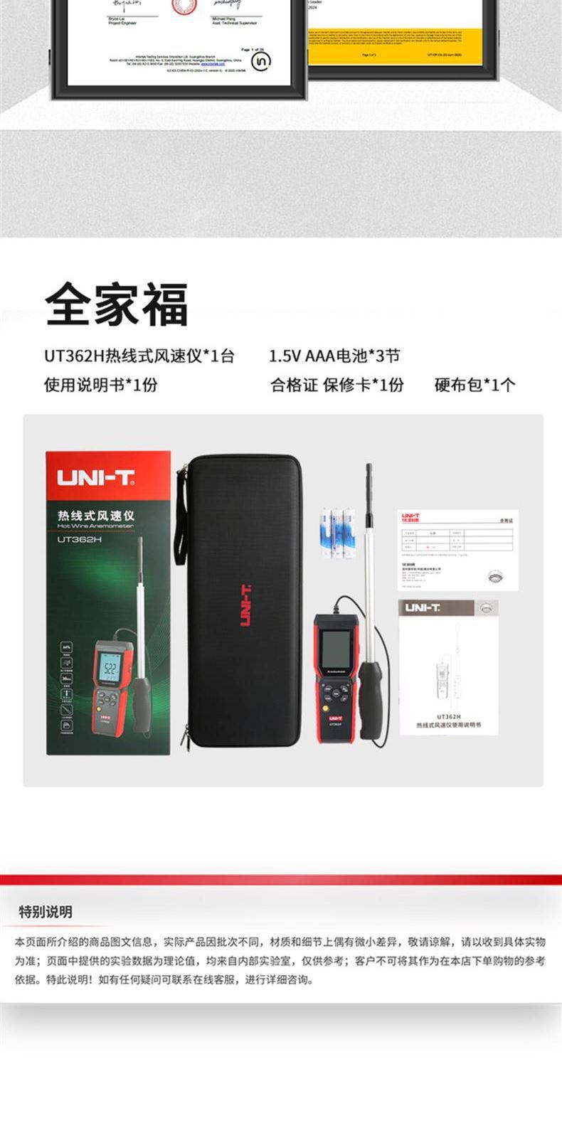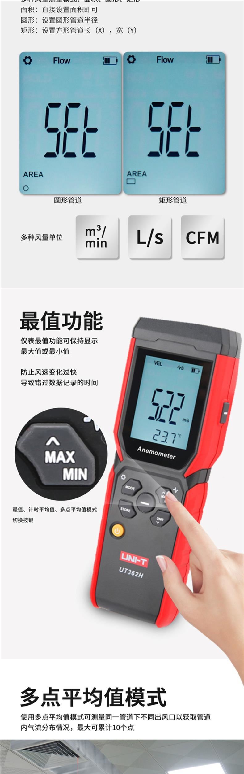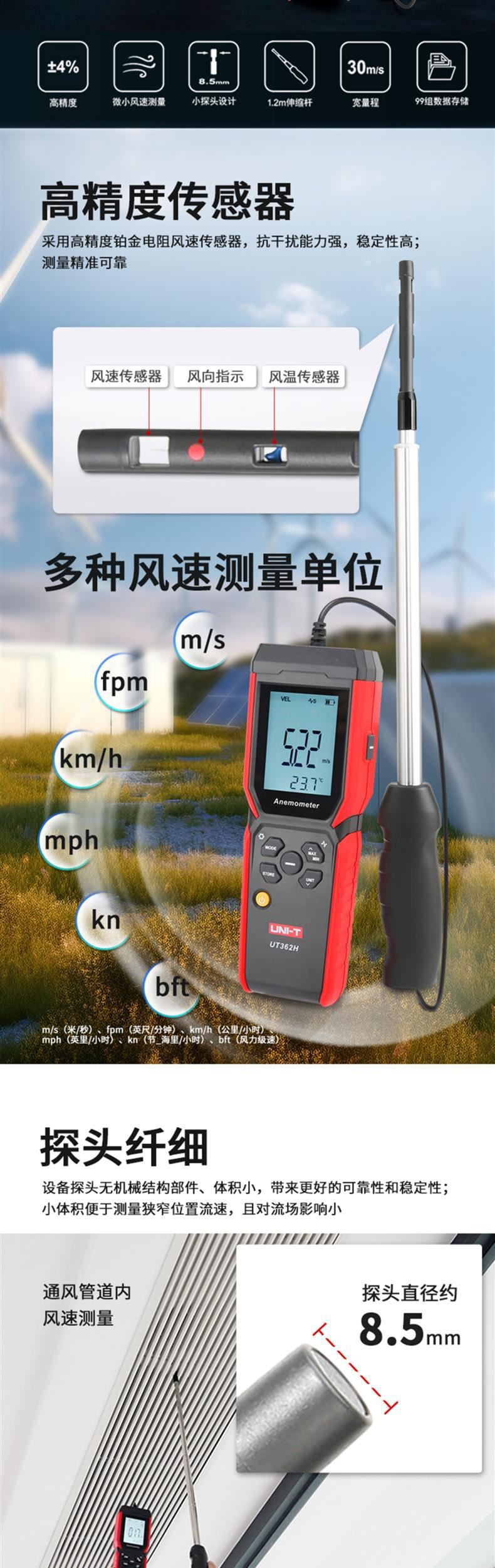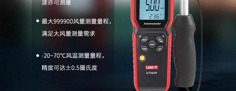 Anemómetro de Hilo Caliente Dividido de Alta Precisión Uleid UT362H Medición de Velocidad del Viento, Volumen de Aire y Temperatura del Aire en Tuberías, Interior y Exterior