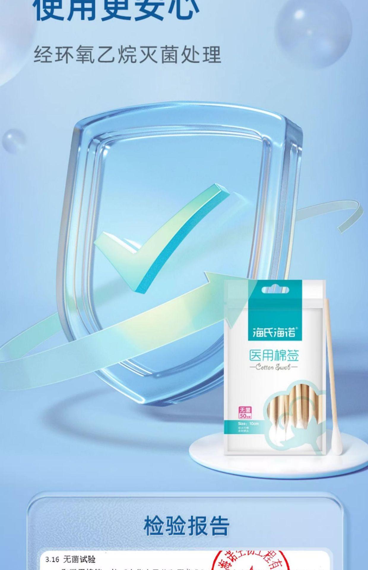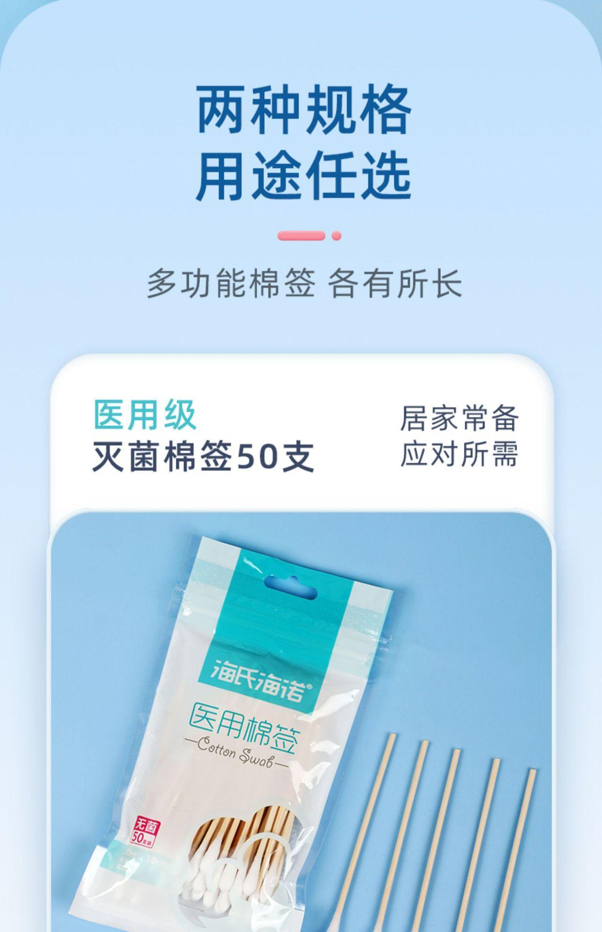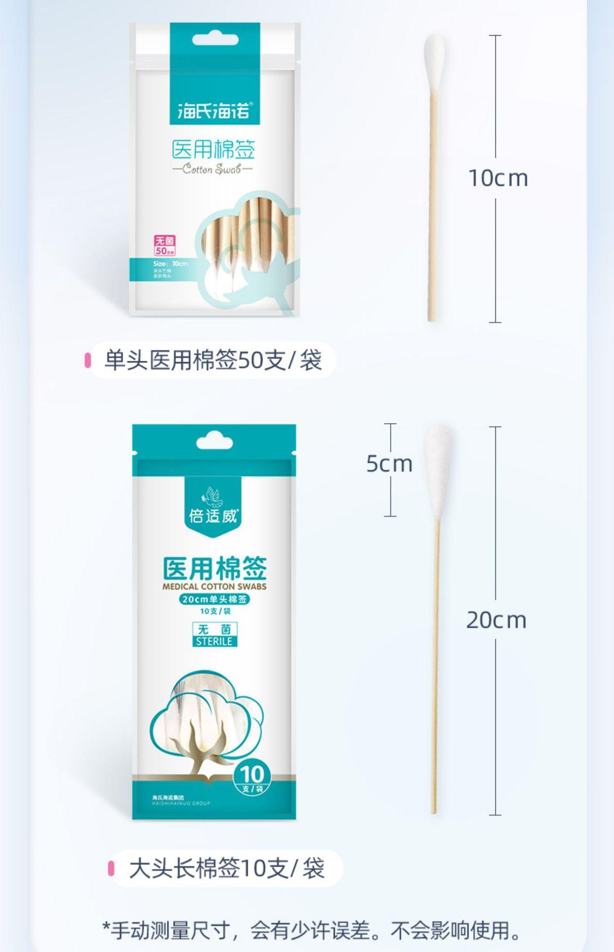 Hishe Hainuo Bastoncillo de Algodón Médico Estéril 50 Médico Cabeza Grande Hogar Desengrasante Bastoncillo de Algodón Cabeza Sencilla Algodón para Oídos de Bebé