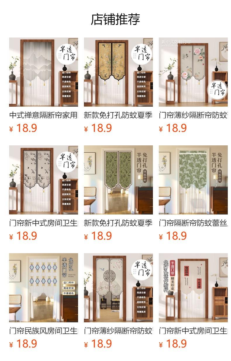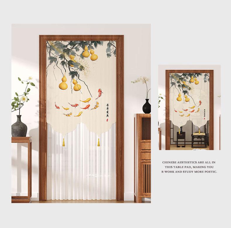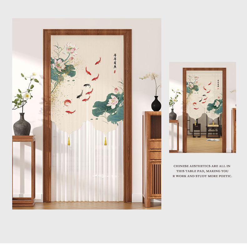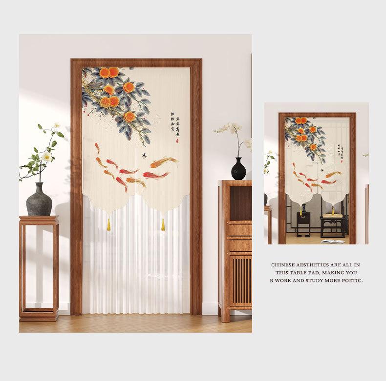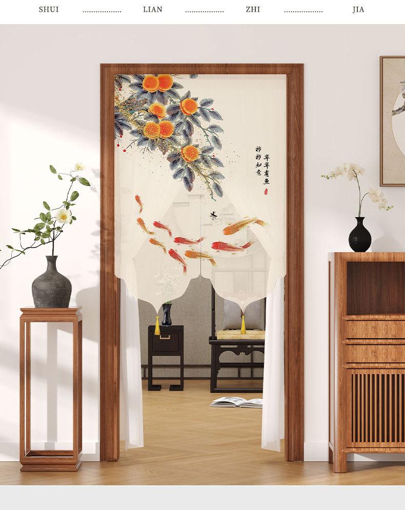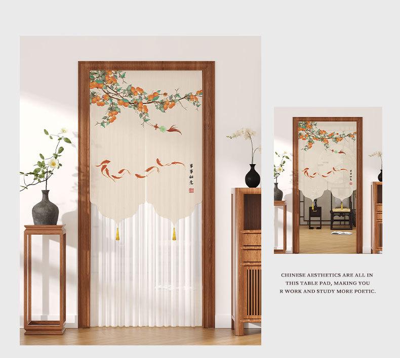 Cortina de Puerta de Verano a Prueba de Mosquitos sin Perforaciones Tela Estilo Chino Cortina de Gasa Dormitorio Partición de Encaje Feng Shui Cortina de Privacidad Media Cortina