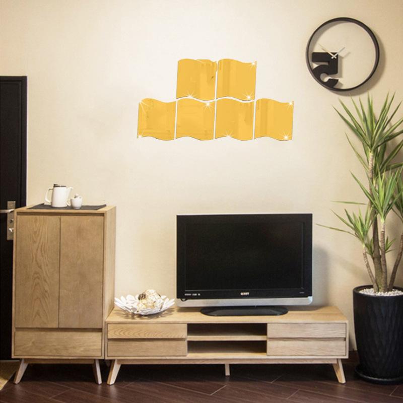 Espejo Acrílico Ondulado Transfronterizo Personalizado Cristal Estéreo Adhesivos de Pared Sala de Estar Pasillo Fondo Pintura Decorativa Adhesivos de Espejo