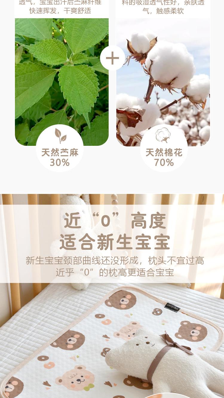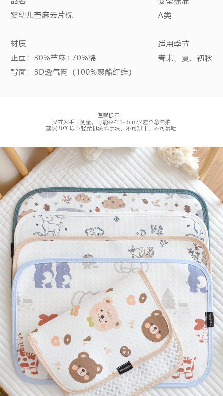 Almohada de Nube de Ramio para Bebé Recién Nacido Almohada de Verano para Bebé Absorbente de Sudor Transpirable Almohada Plana Anti-Vómito Cojín Funda de Almohada Fresca