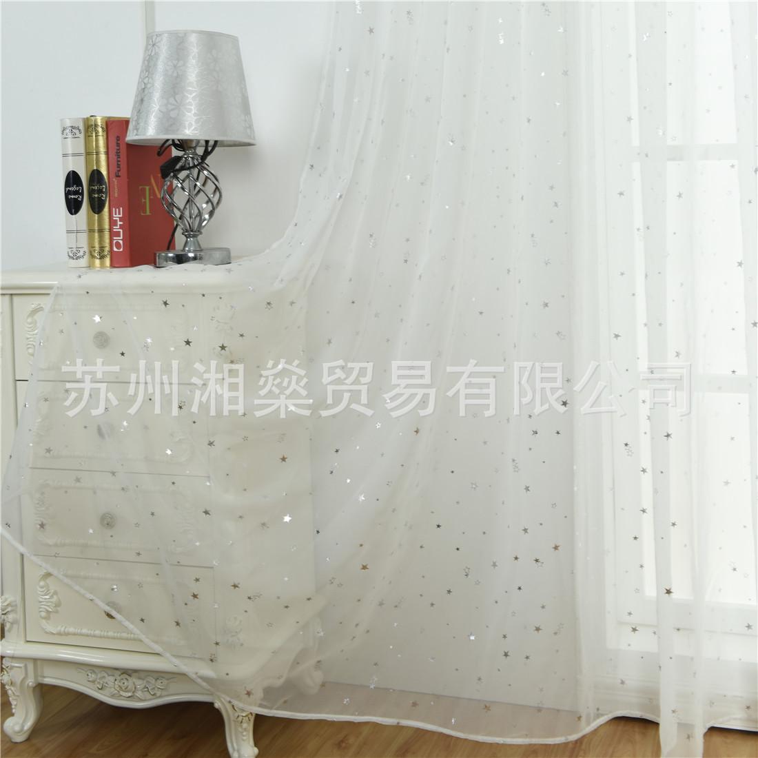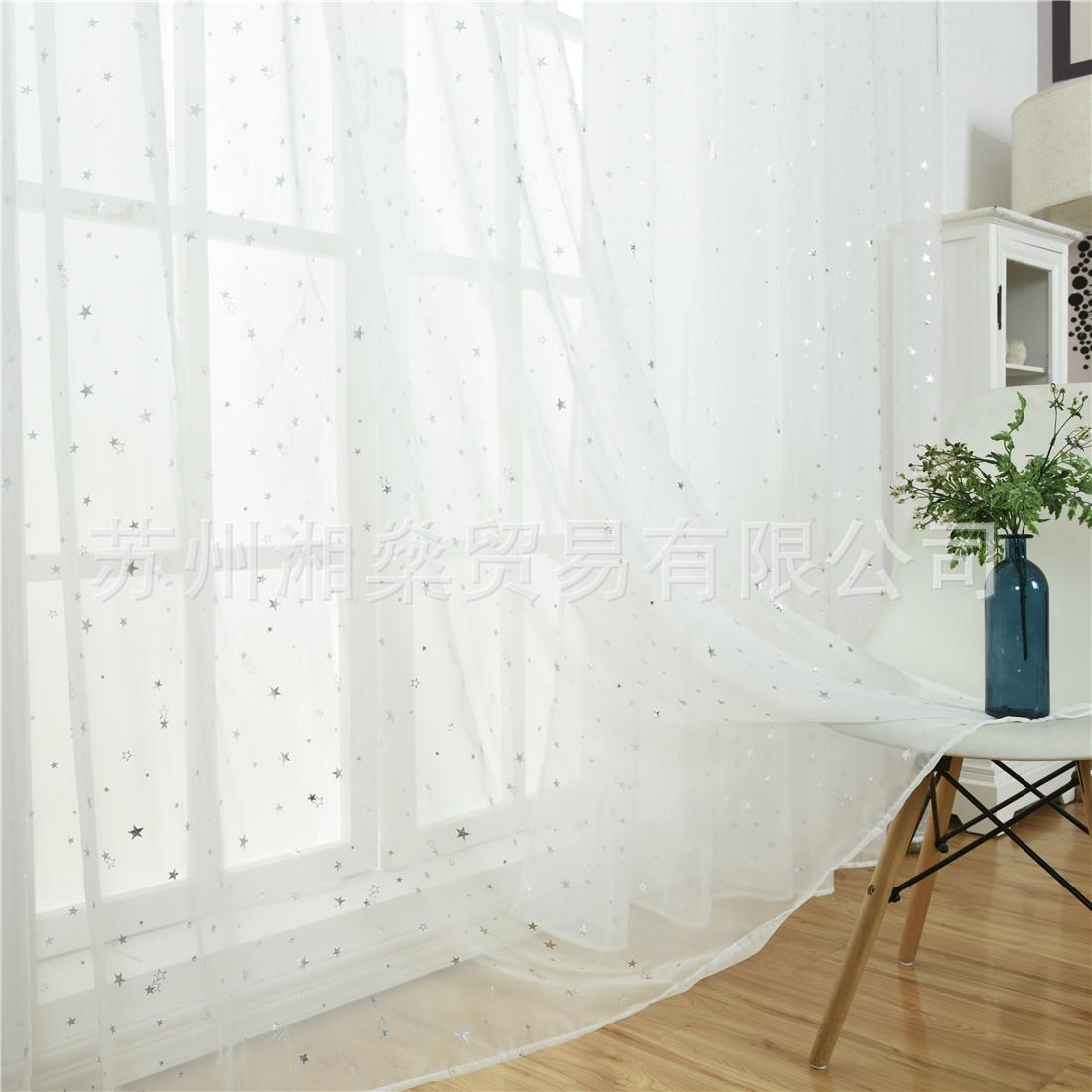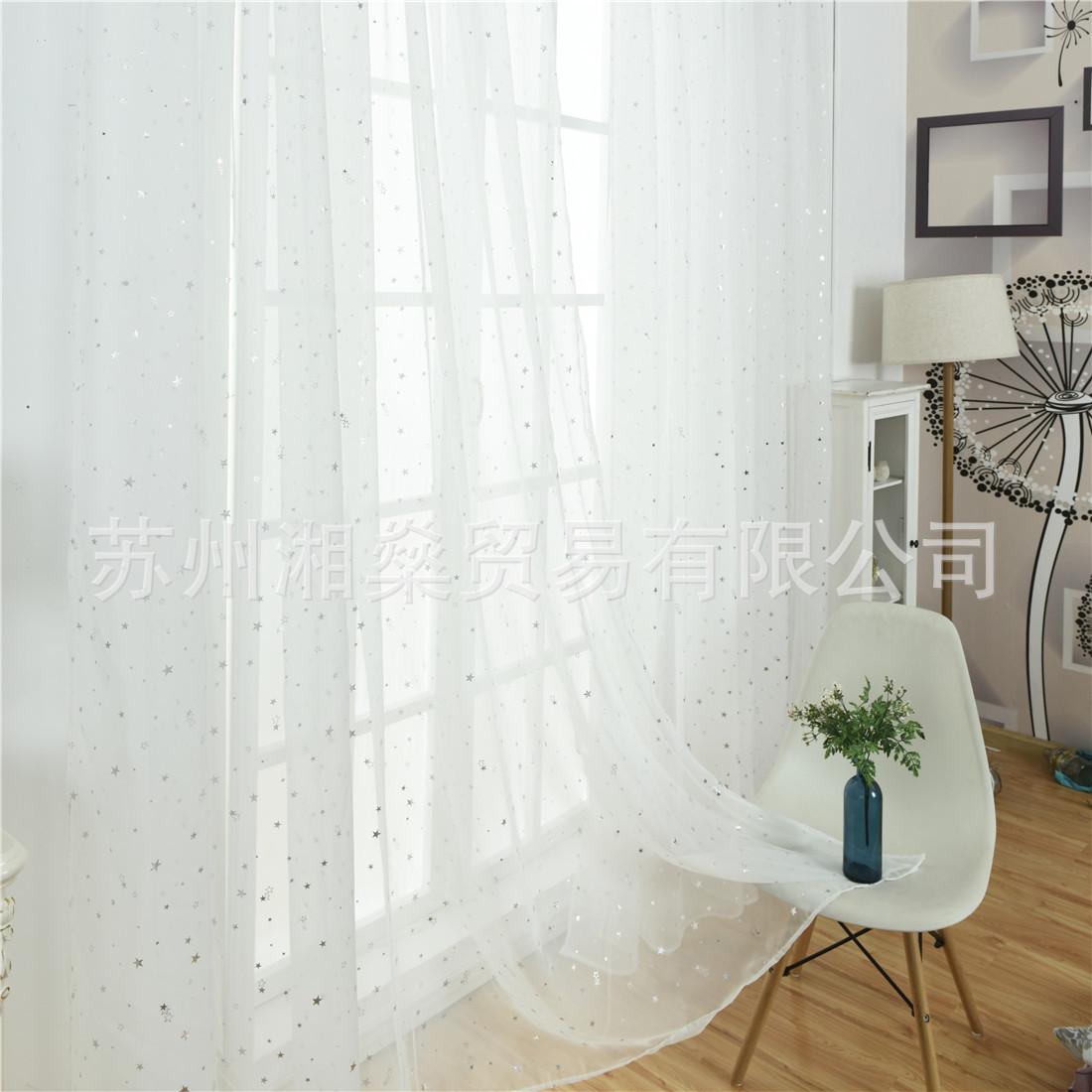 2025 Decoración del Hogar Sala de Estar Dormitorio Pequeño Fresco Pastoral Sala de Estar Estrella Plateada Cortina de Tela para Pantalla de Ventana