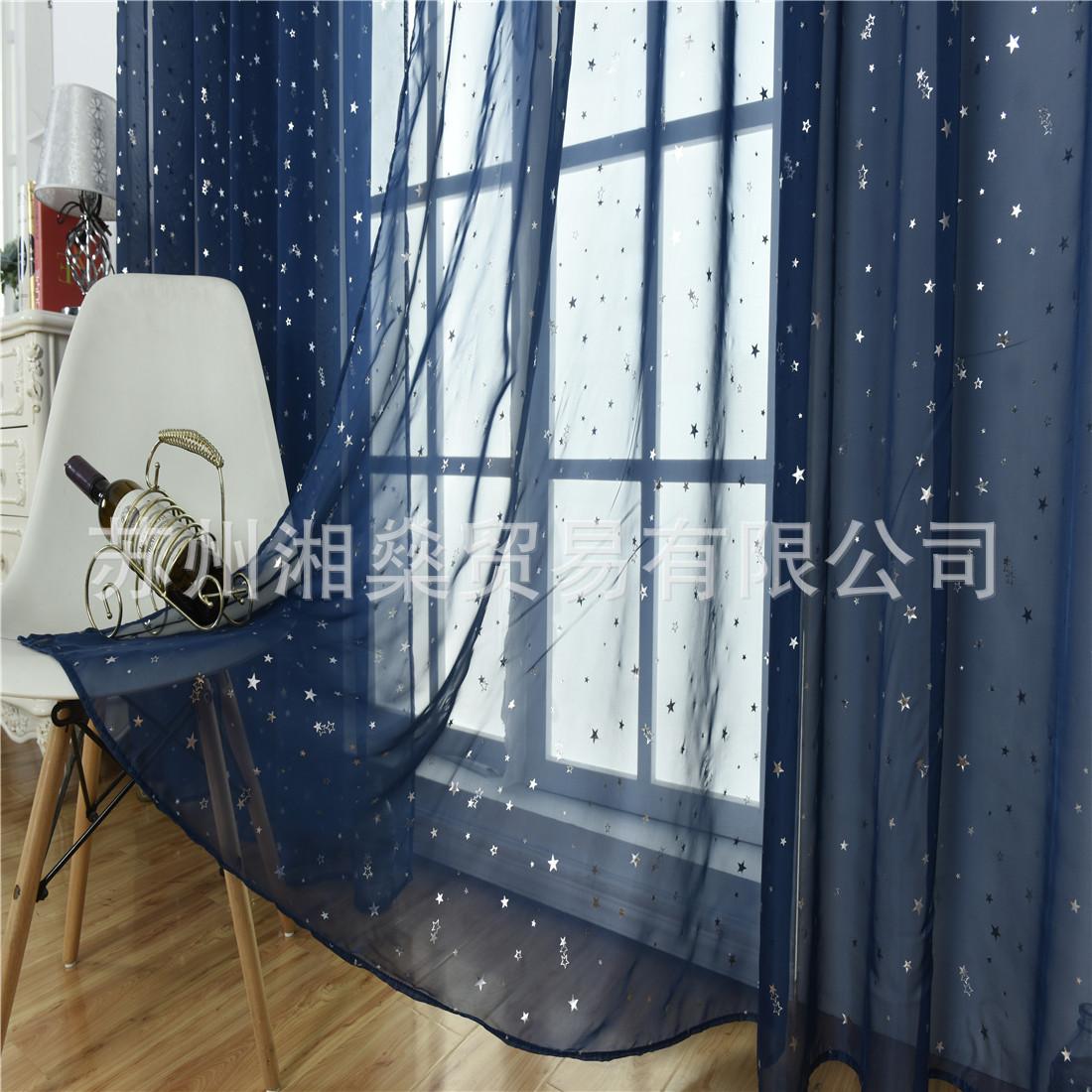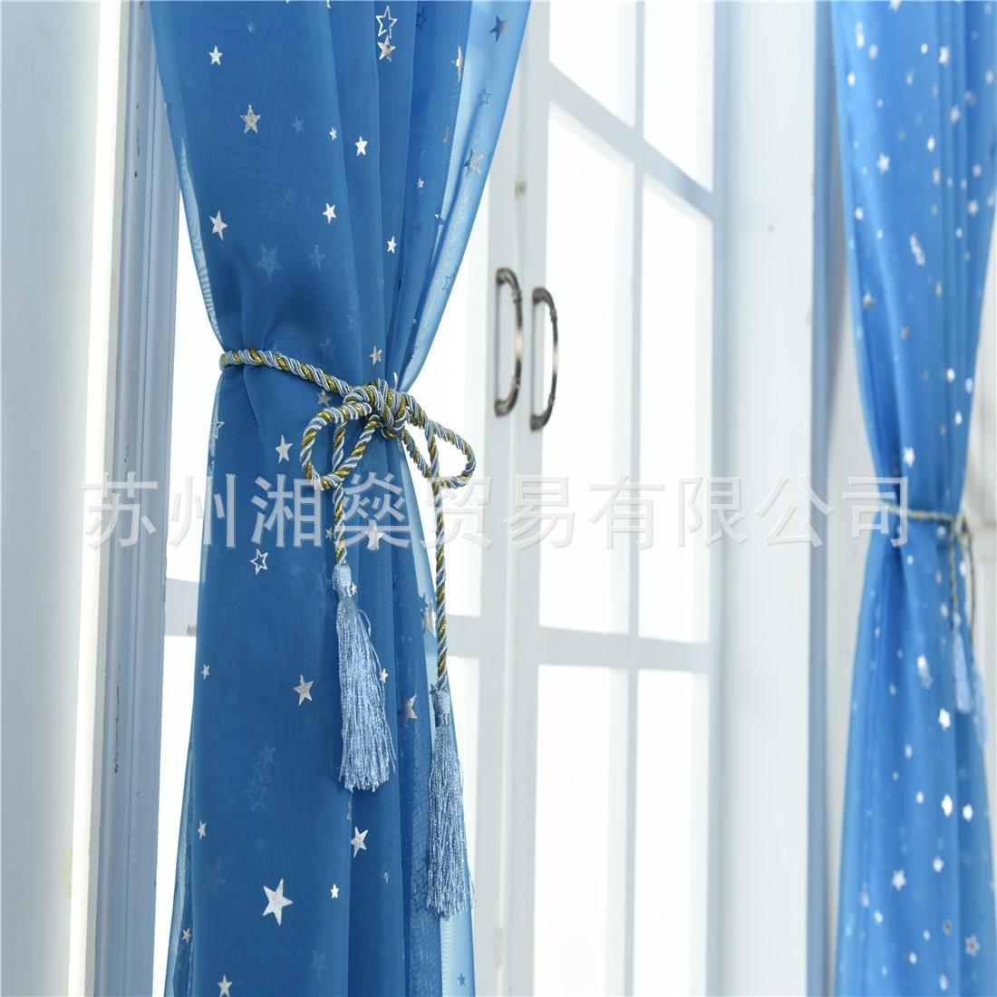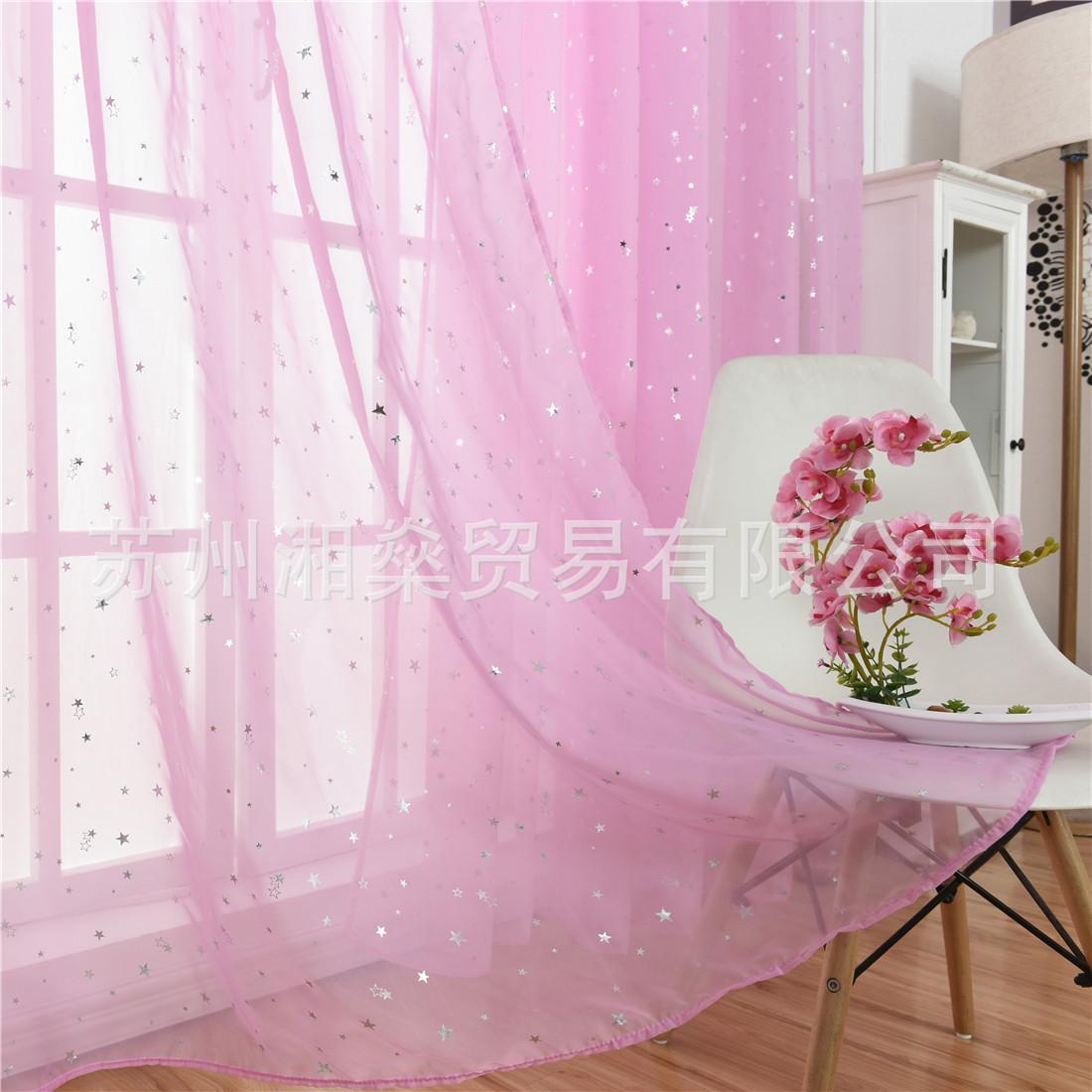 2025 Decoración del Hogar Sala de Estar Dormitorio Pequeño Fresco Pastoral Sala de Estar Estrella Plateada Cortina de Tela para Pantalla de Ventana