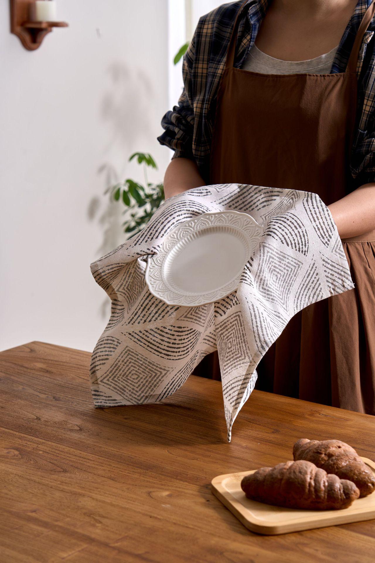 Yiman Qiyun Estilo Simple Moderno Servilleta de Tela Gris Estampado de Plántula de Trigo Decorativa para Sesión de Fotos Tela Cuadrada para Boca