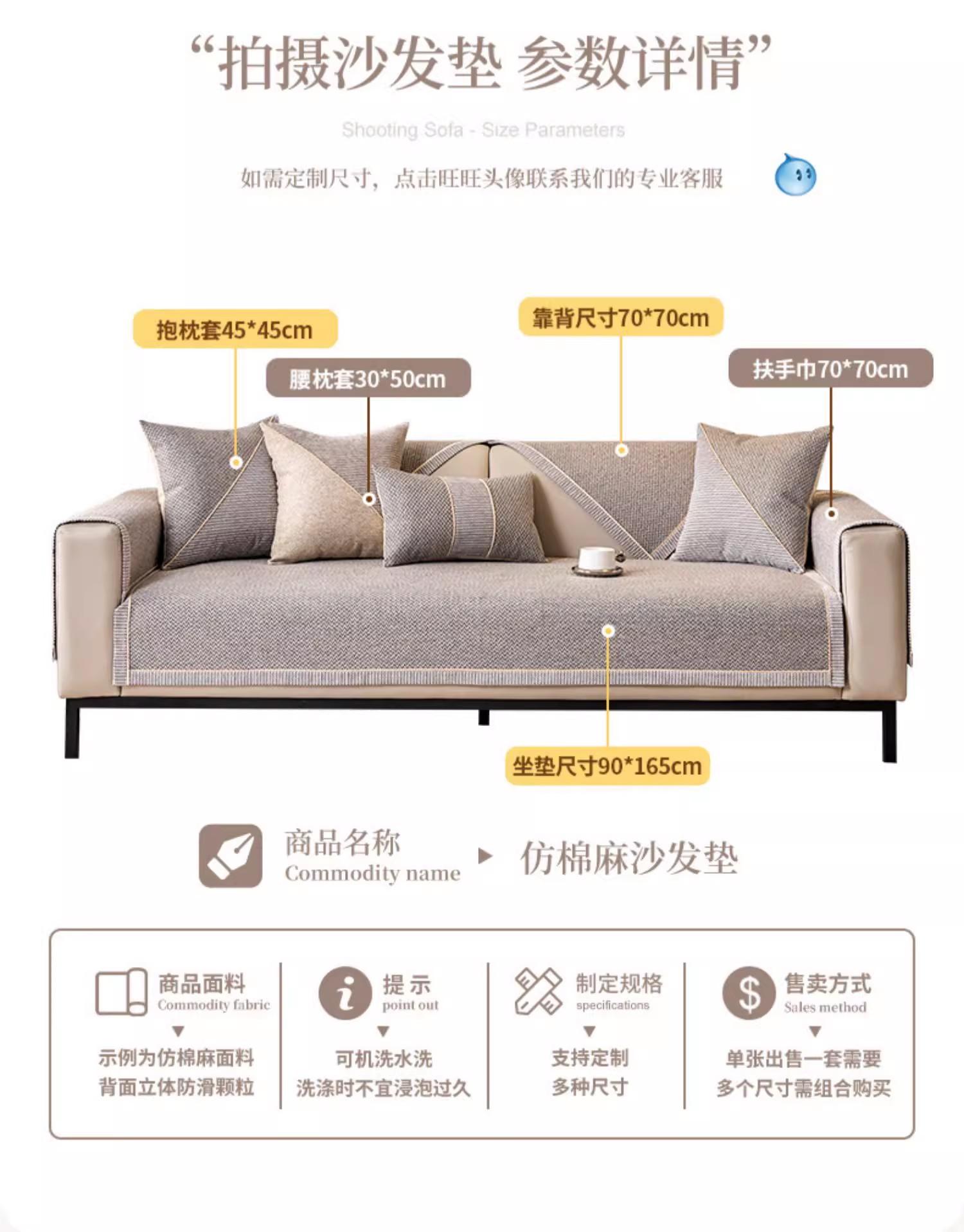2024 Shengyu Style Cojín de Sofá Algodón y Lino Imitación Universal para Cuatro Estaciones Funda de Sofá Antideslizante Cobertura Completa Toalla de Sofá Escandinavo