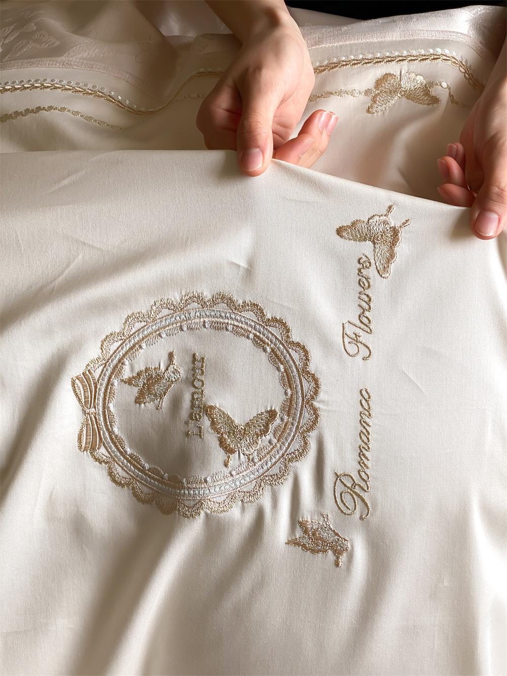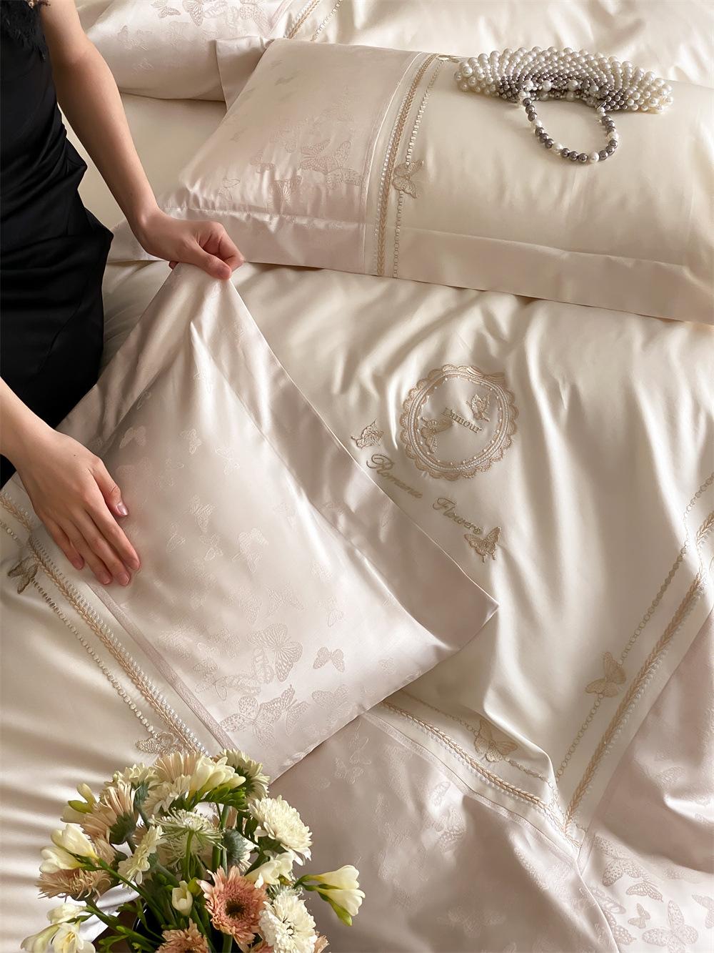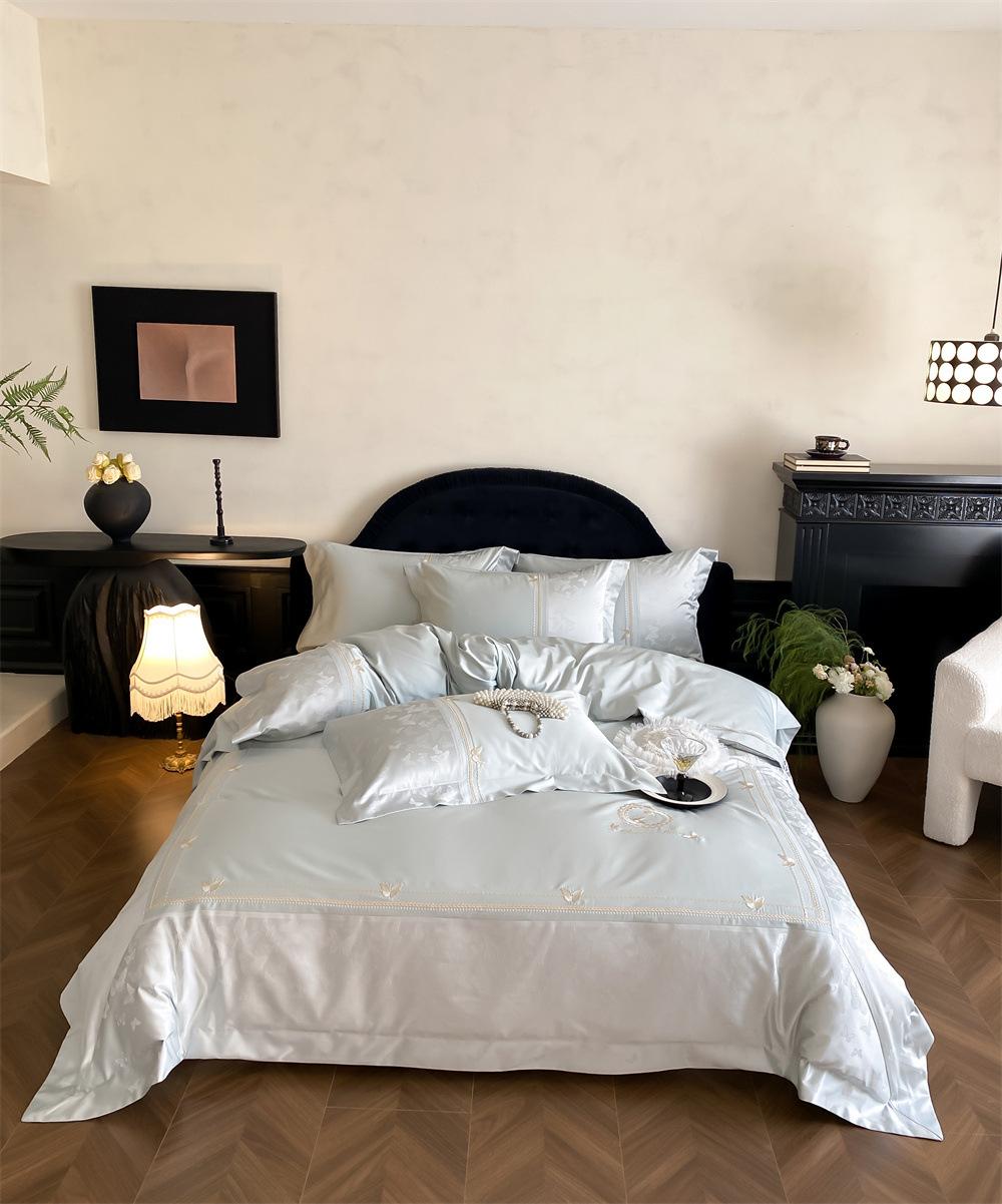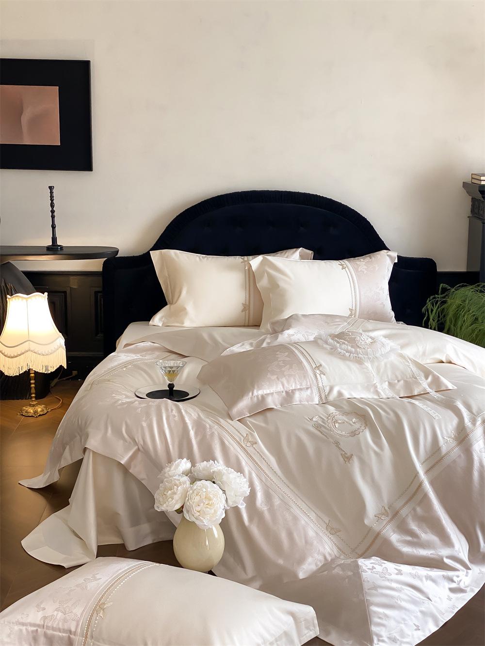 Artesanía: Jacquard de alta densidad + bordado, sábana bajera con esquinas redondeadas y bies
