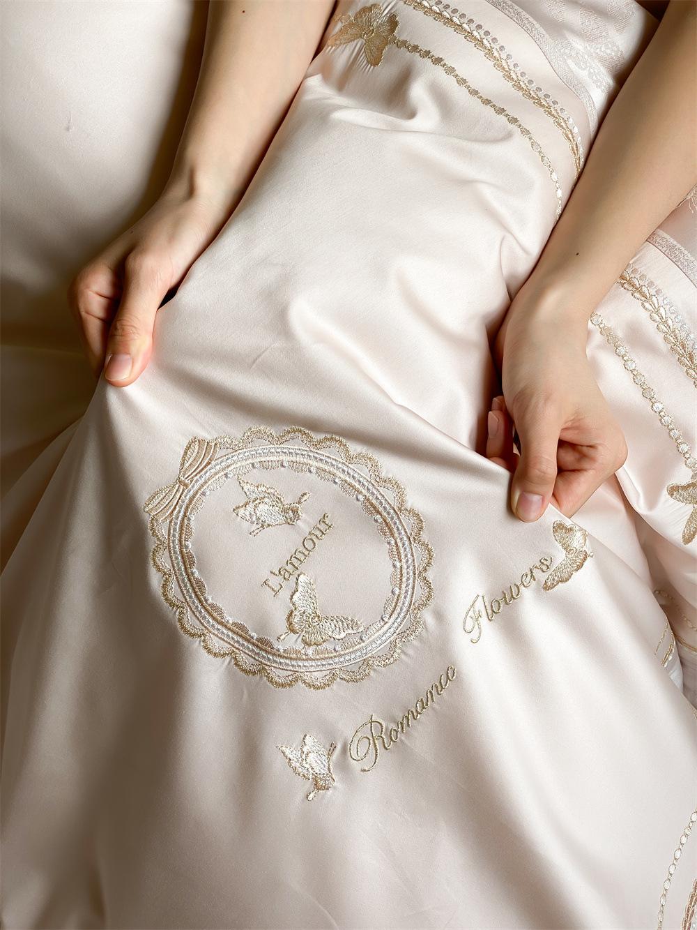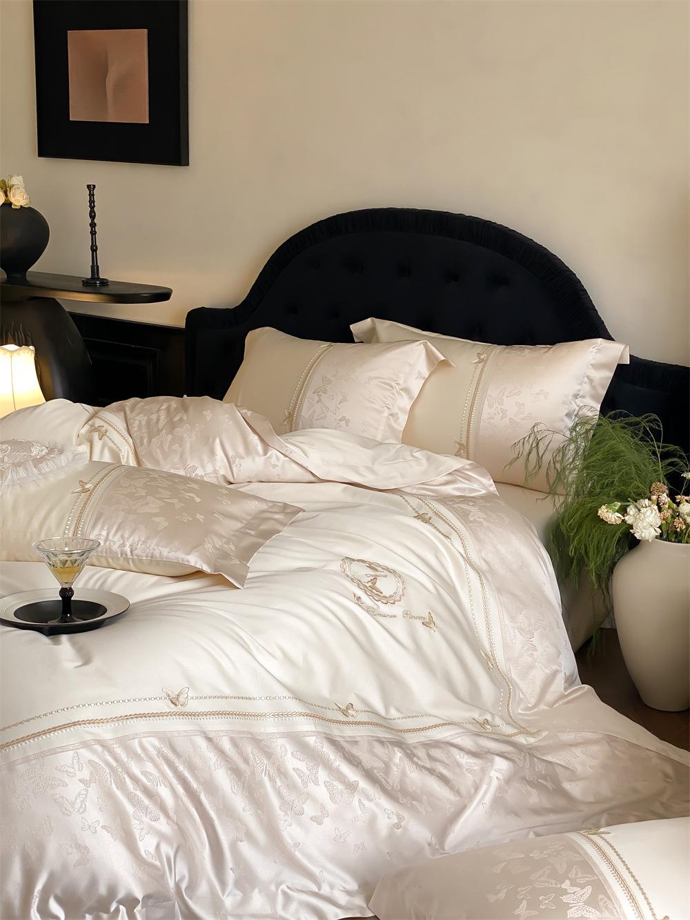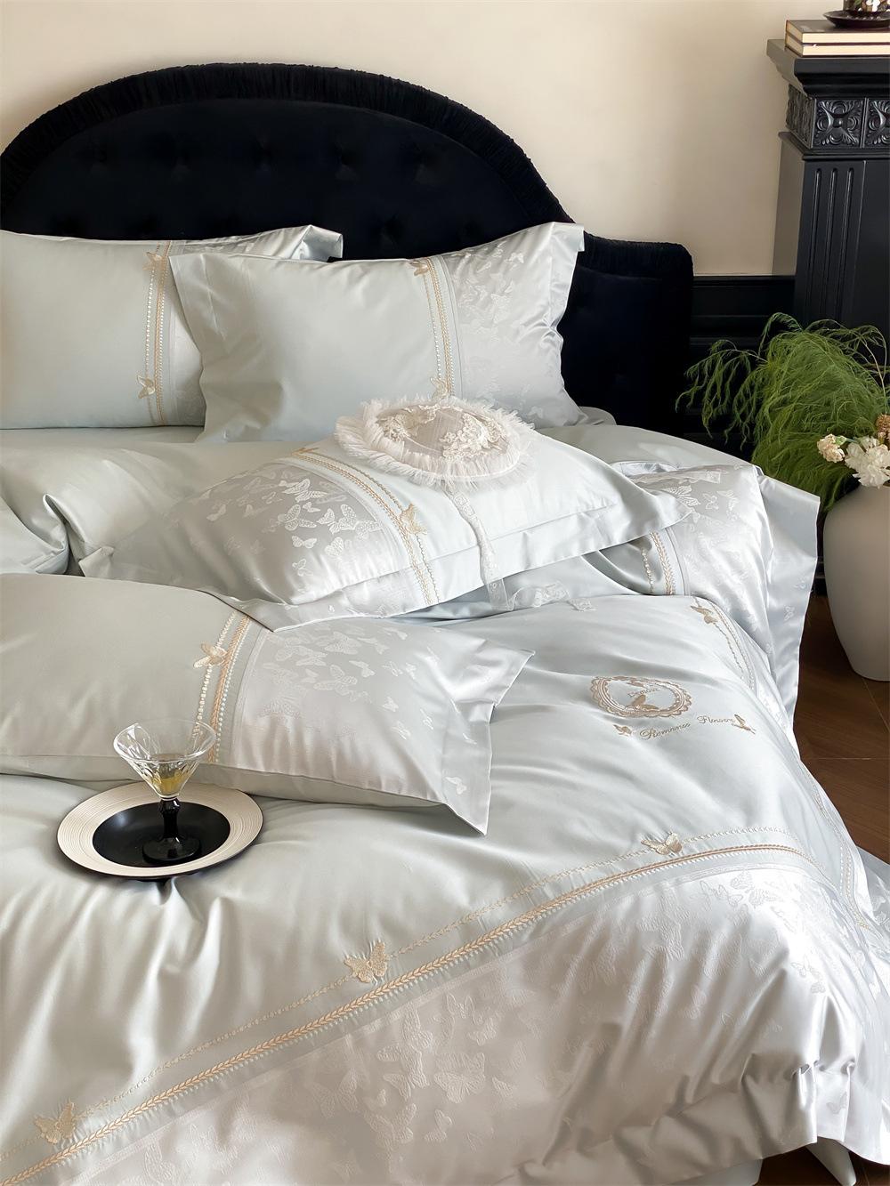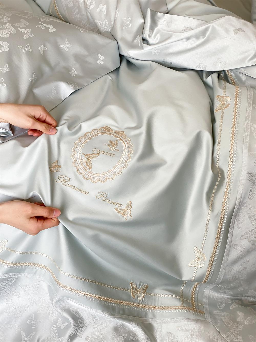 Artesanía: Jacquard de alta densidad + bordado, sábana bajera con esquinas redondeadas y bies