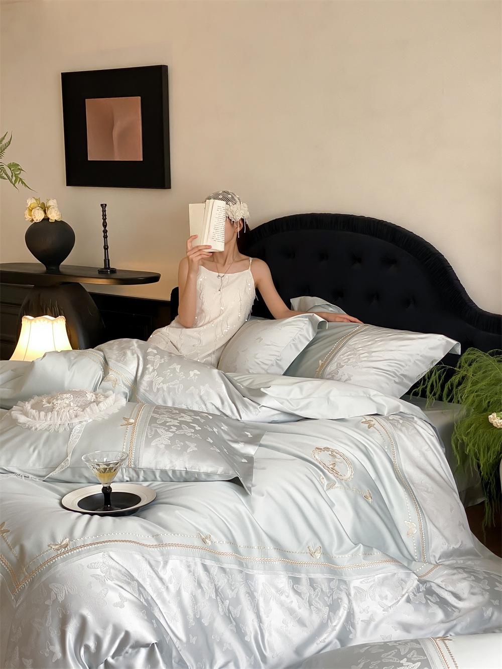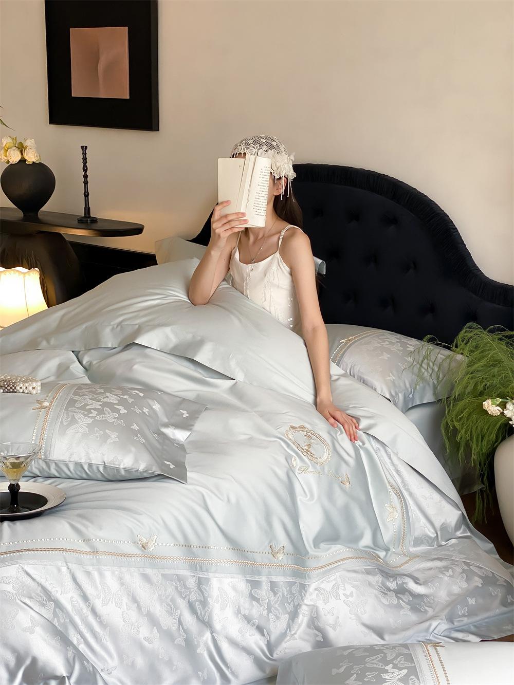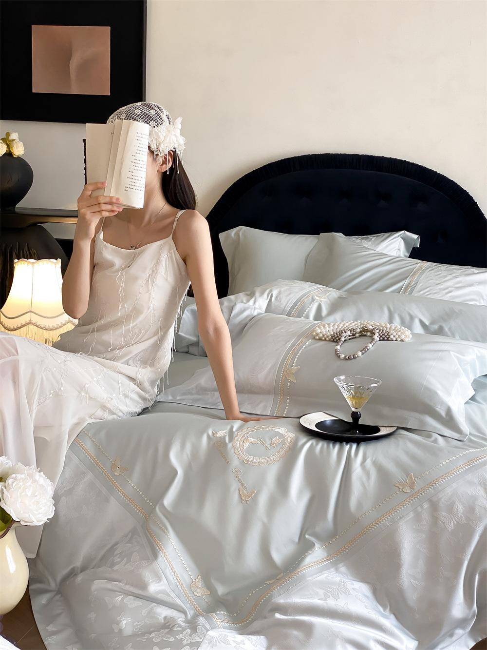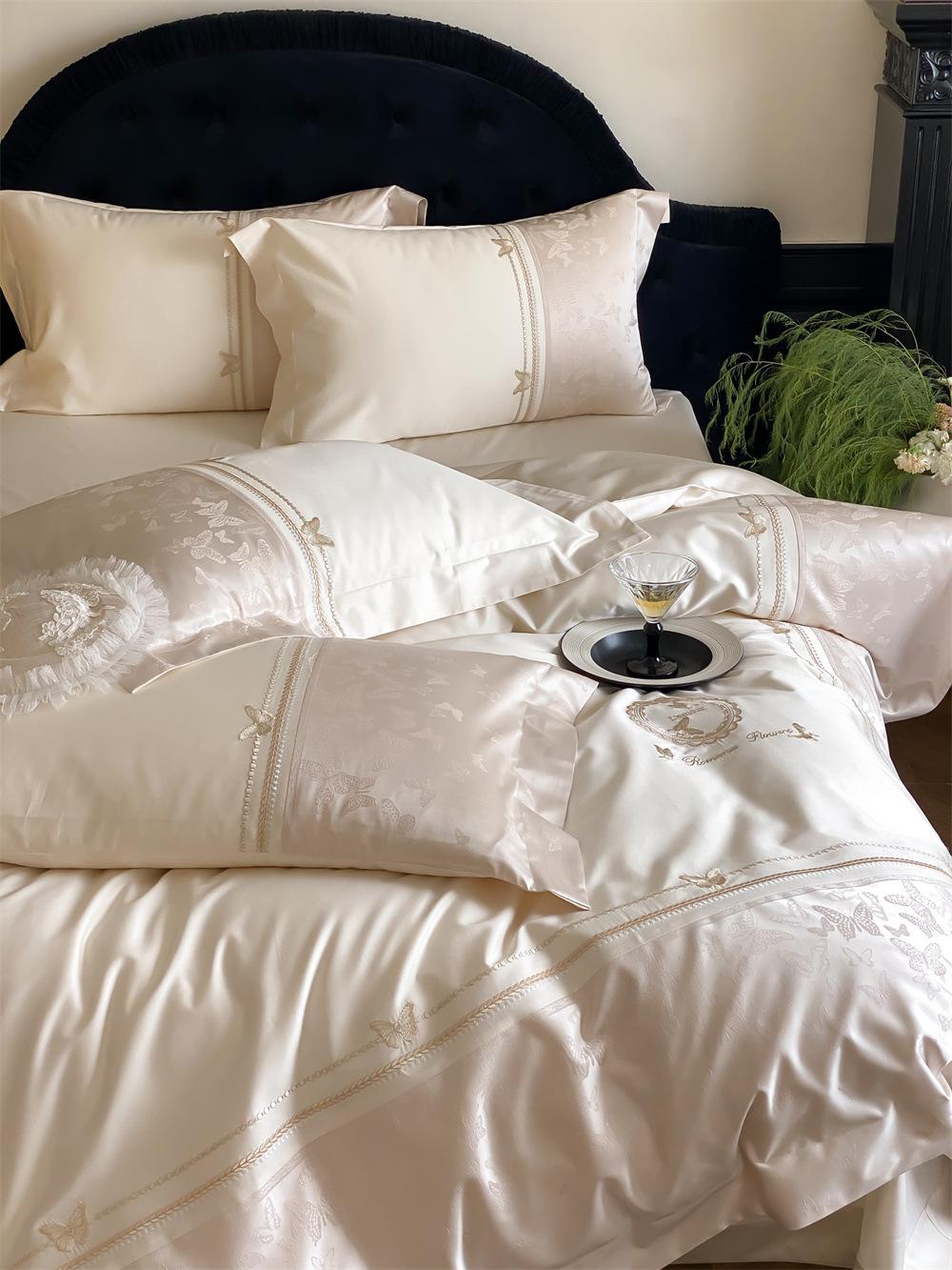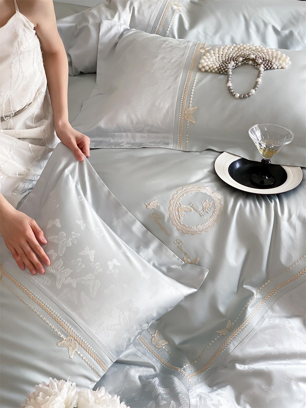 Artesanía: Jacquard de alta densidad + bordado, sábana bajera con esquinas redondeadas y bies
