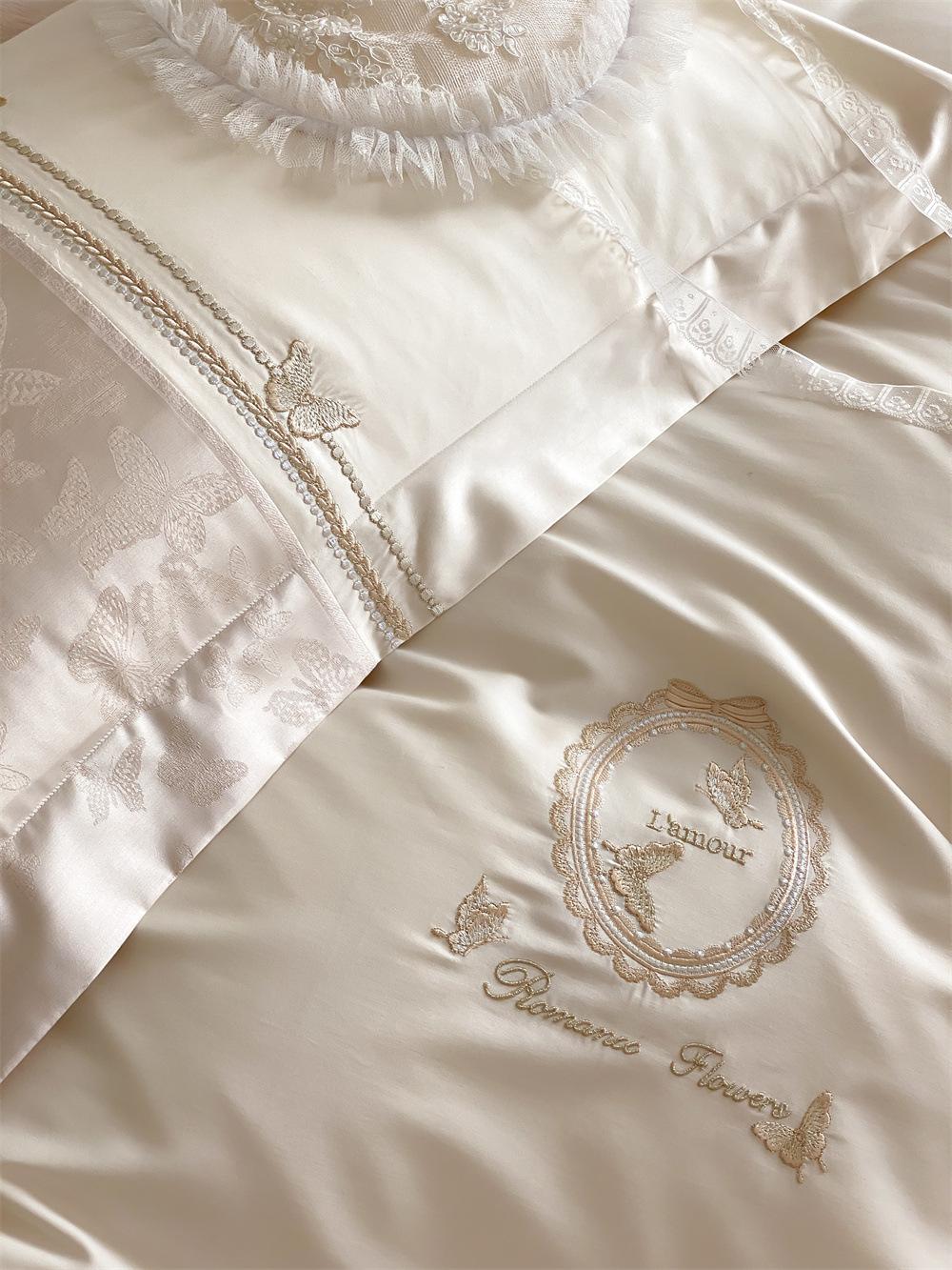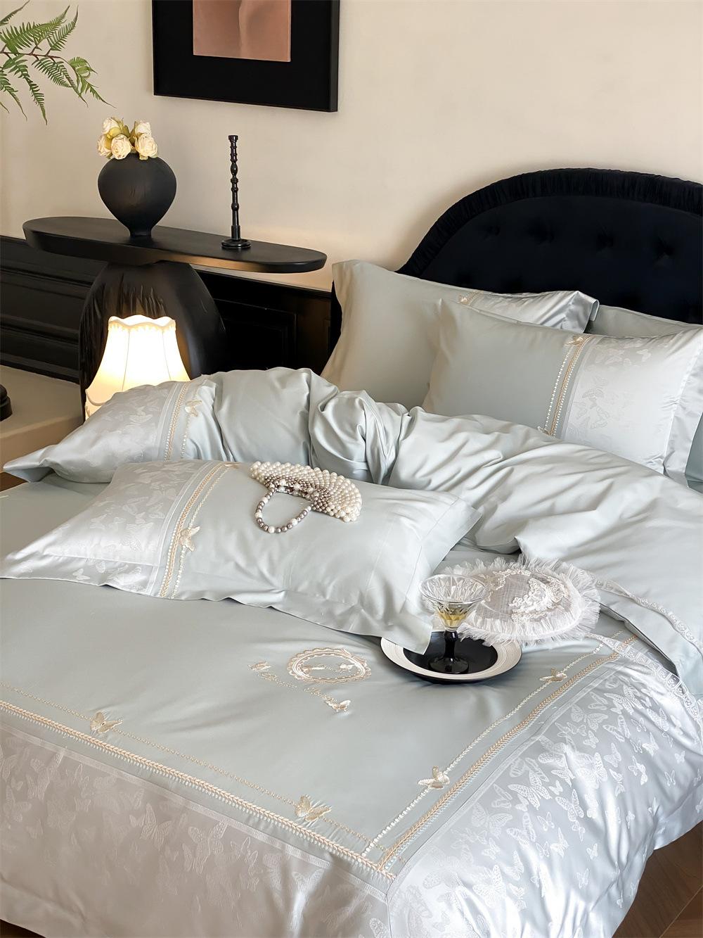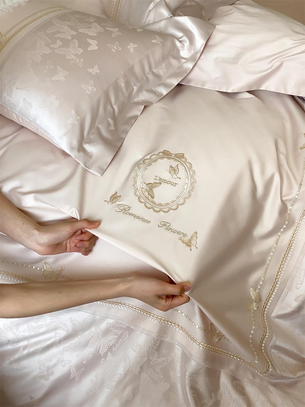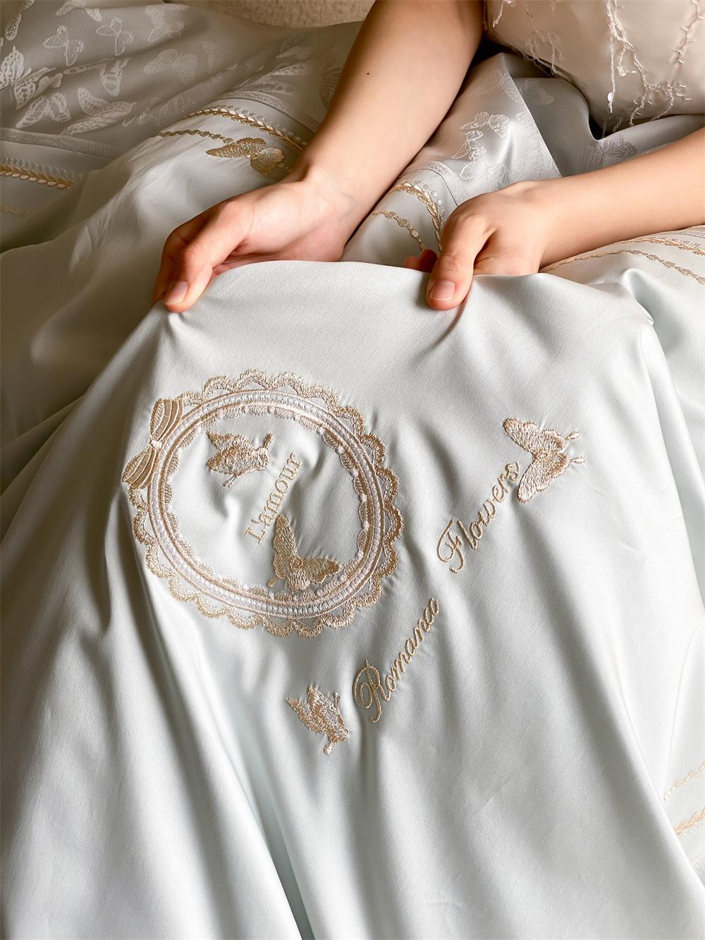 Artesanía: Jacquard de alta densidad + bordado, sábana bajera con esquinas redondeadas y bies
