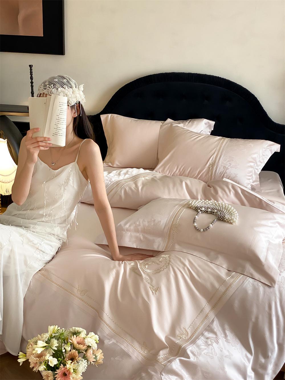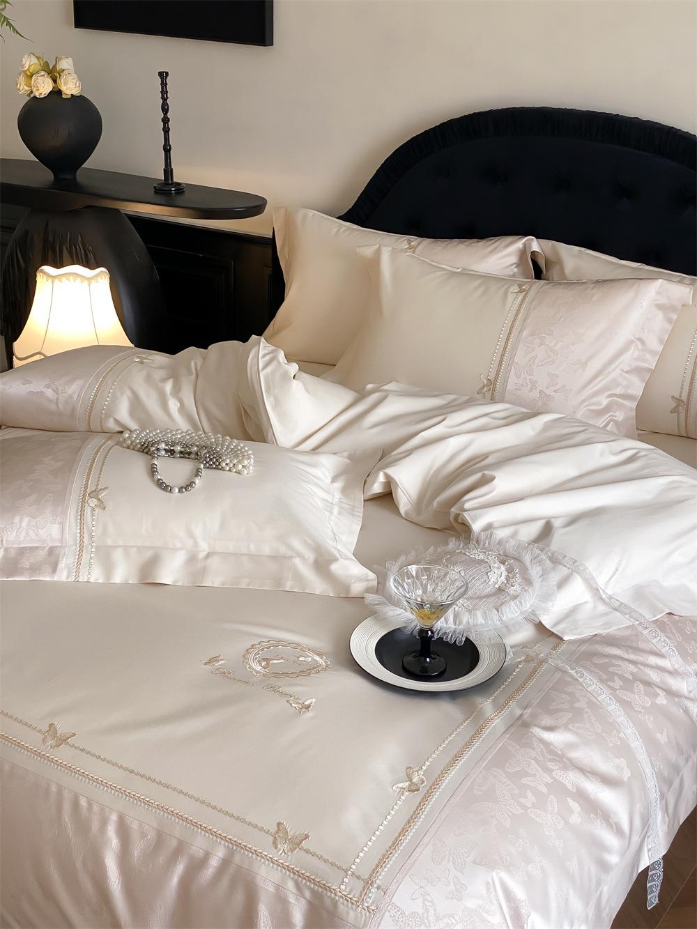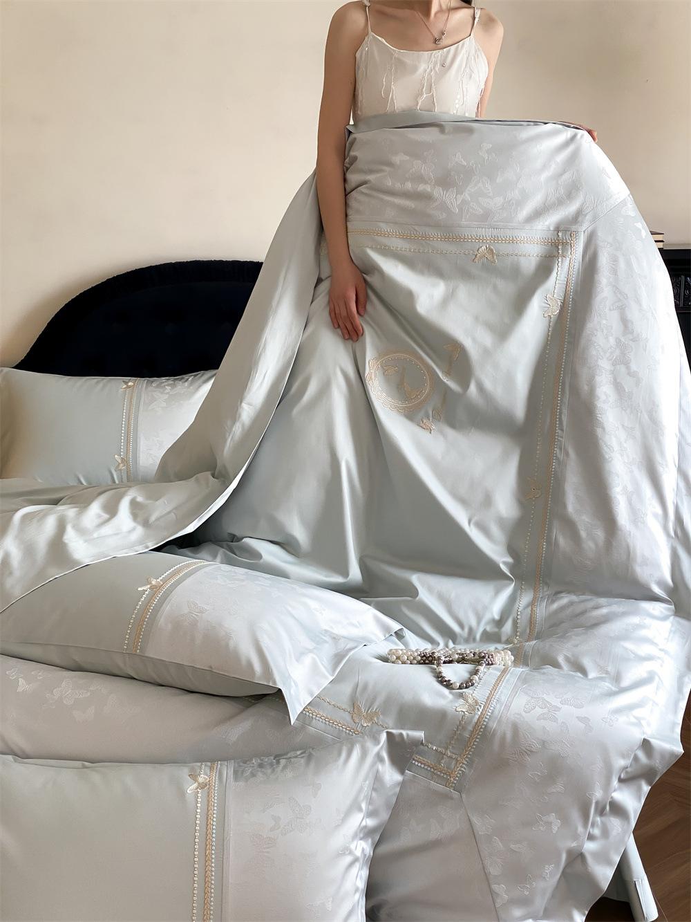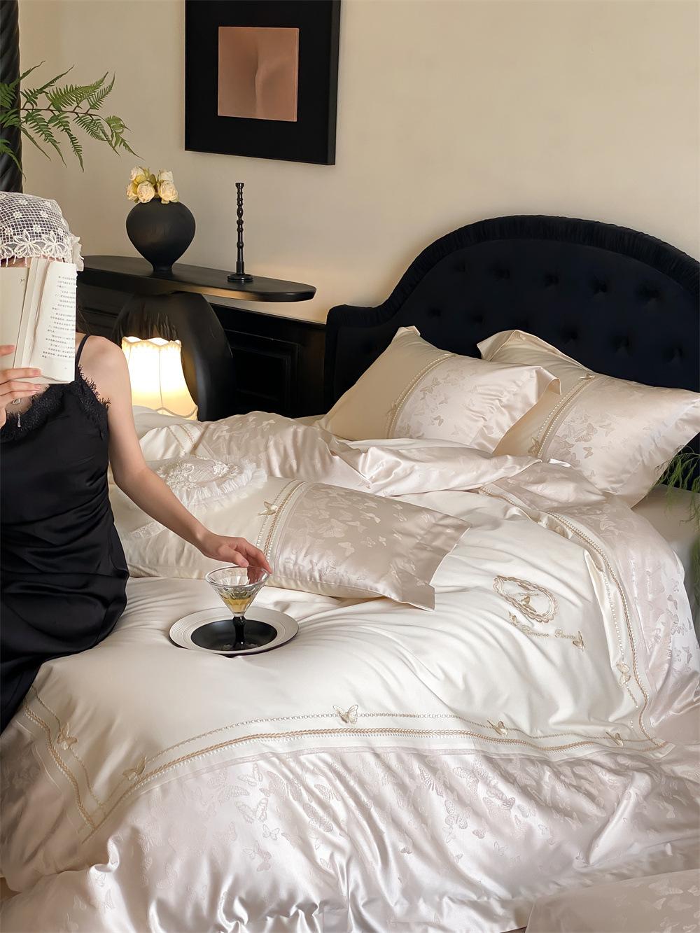 Artesanía: Jacquard de alta densidad + bordado, sábana bajera con esquinas redondeadas y bies