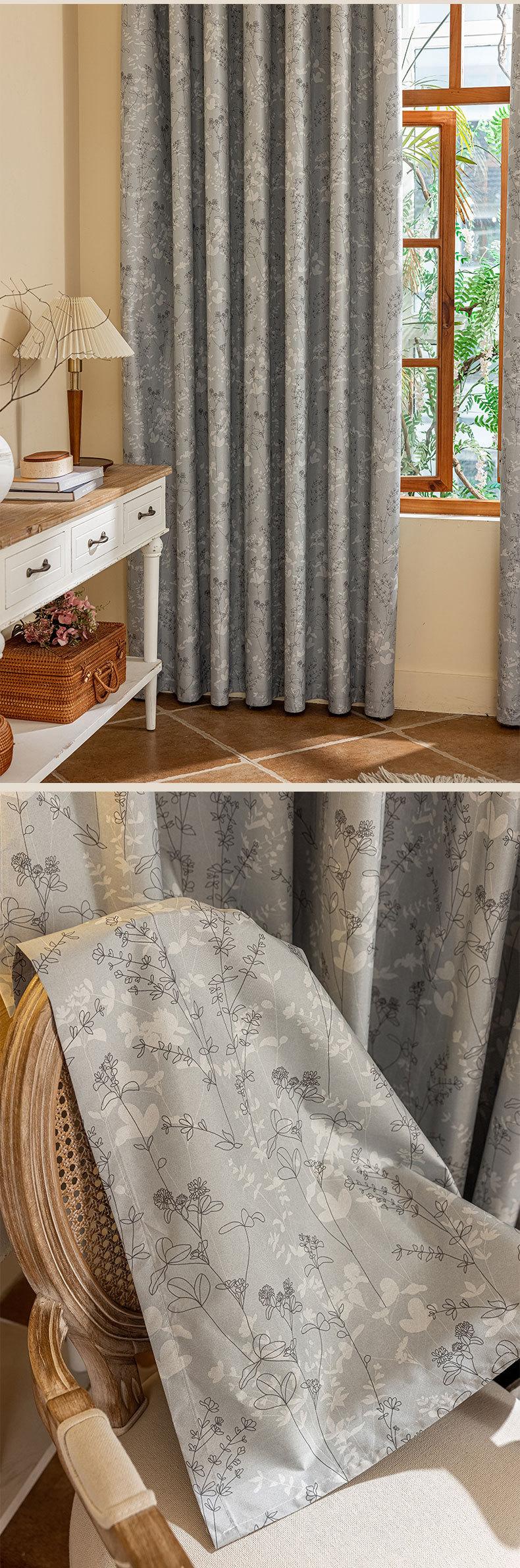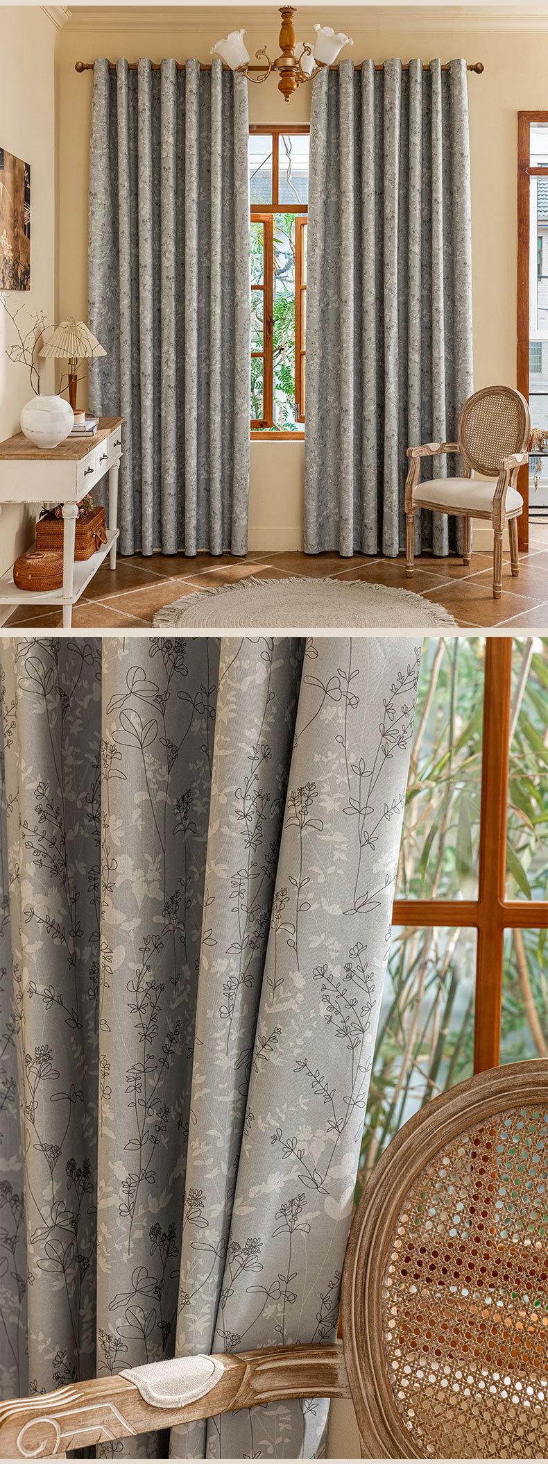 Cortinas Confeccionadas Opacas Florales Grises Estilo Americano Transfronterizo Tela de Cortina Estampada Sala de Estar Dormitorio Cortinas para Ventanas del Hogar