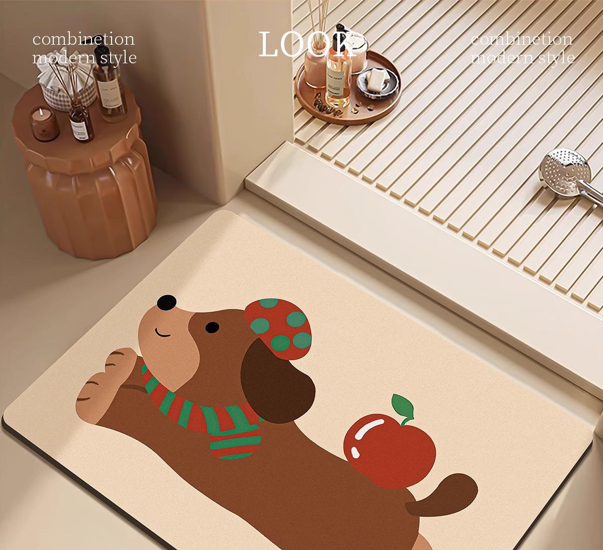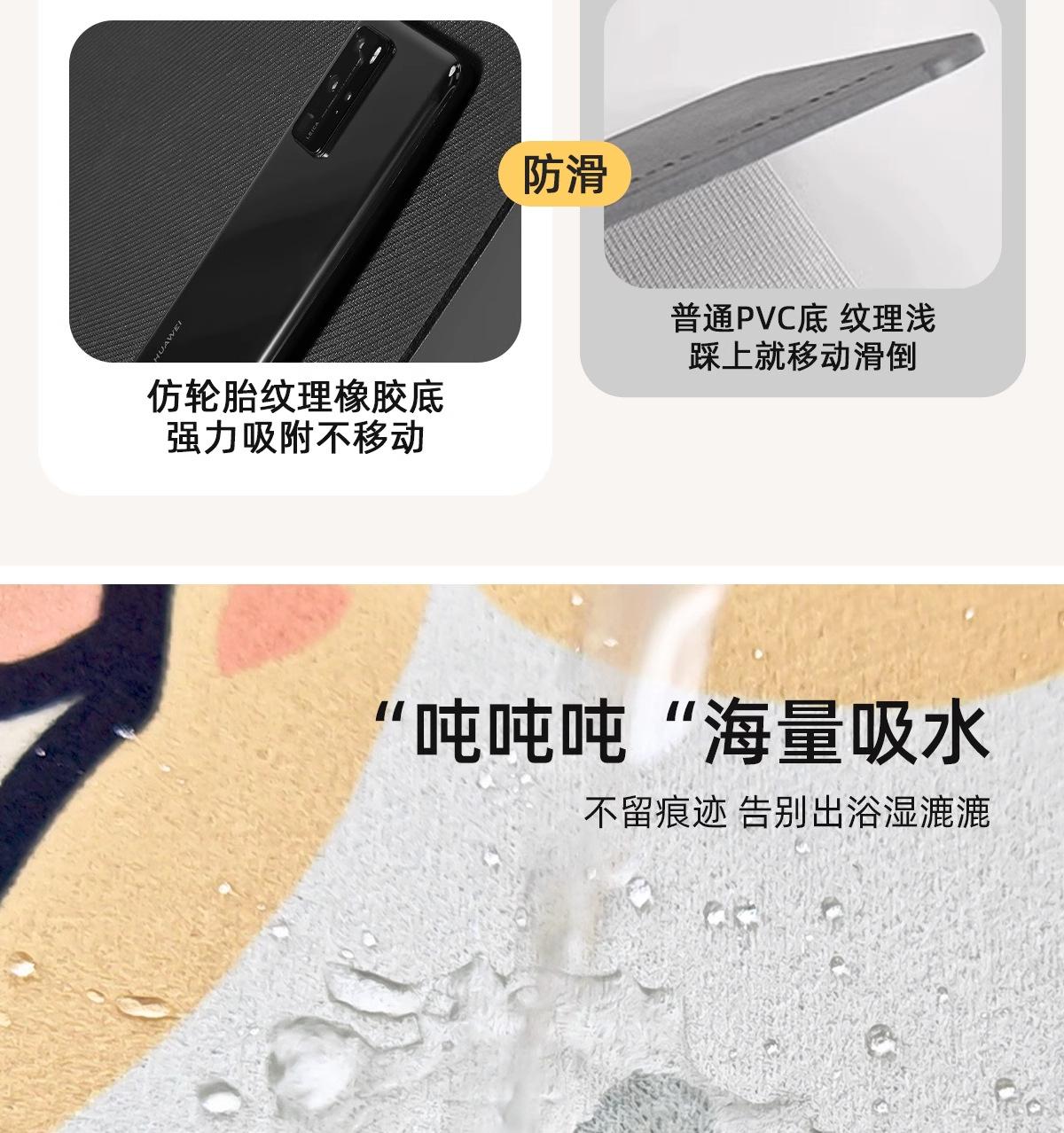 Tapete de Piso Absorbente de Dibujos Animados para Baño, Tapete para Pies Antideslizante de Barro Diatómico para Puerta de Baño, Alfombra Doméstica para Inodoro de Secado Rápido que No Necesita Lavado