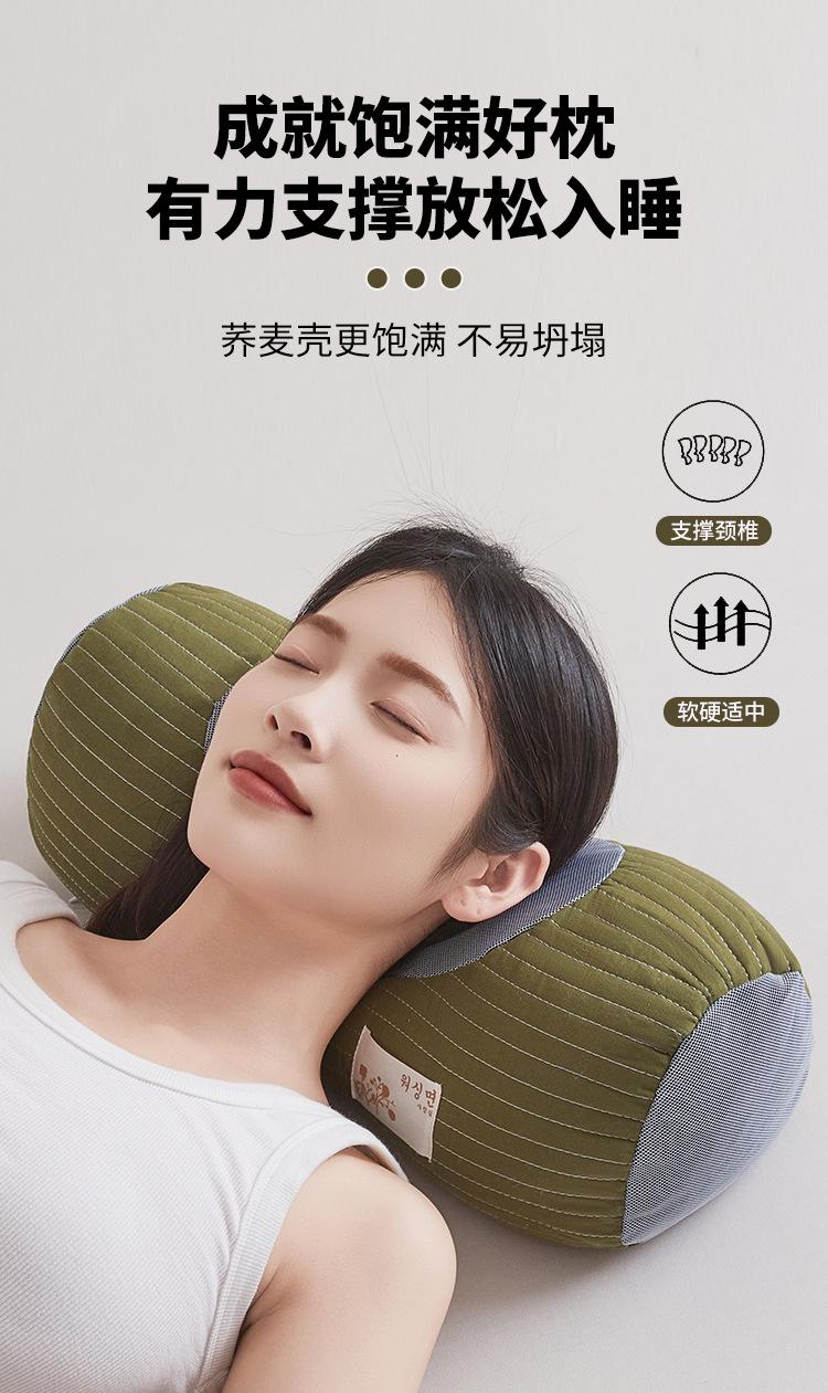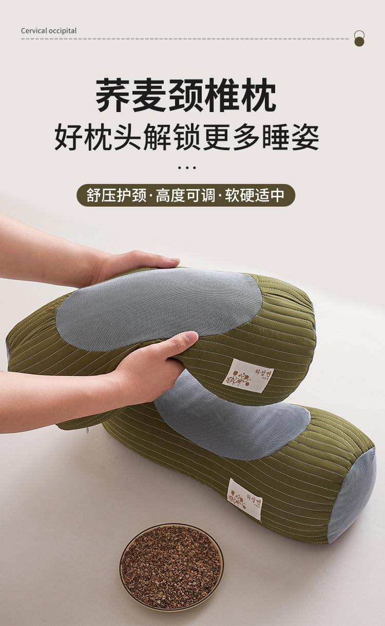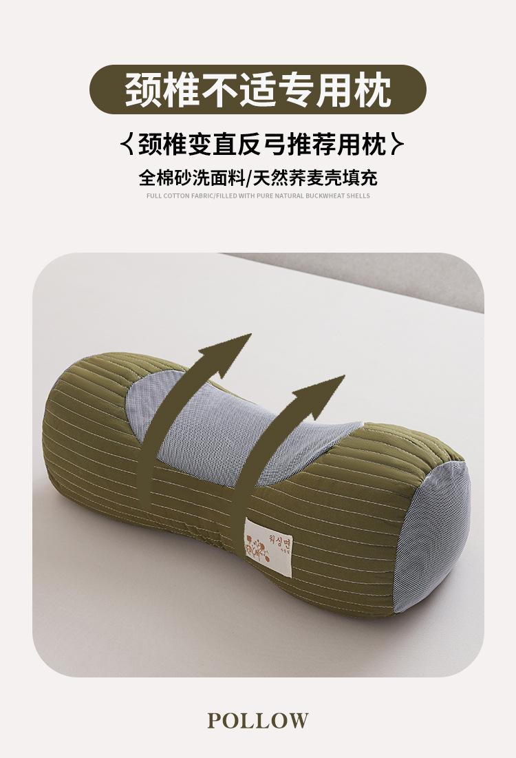 Almohada de Trigo Sarraceno Almohada de Soporte para el Cuello Almohada Individual para Estudiante Núcleo Cilíndrico Tracción de Arco Inverso Almohada Lumbar Protección Especial para el Cuello Almohada Dura