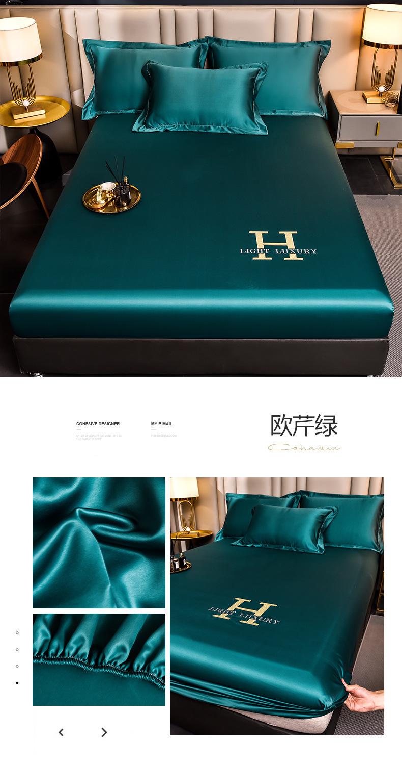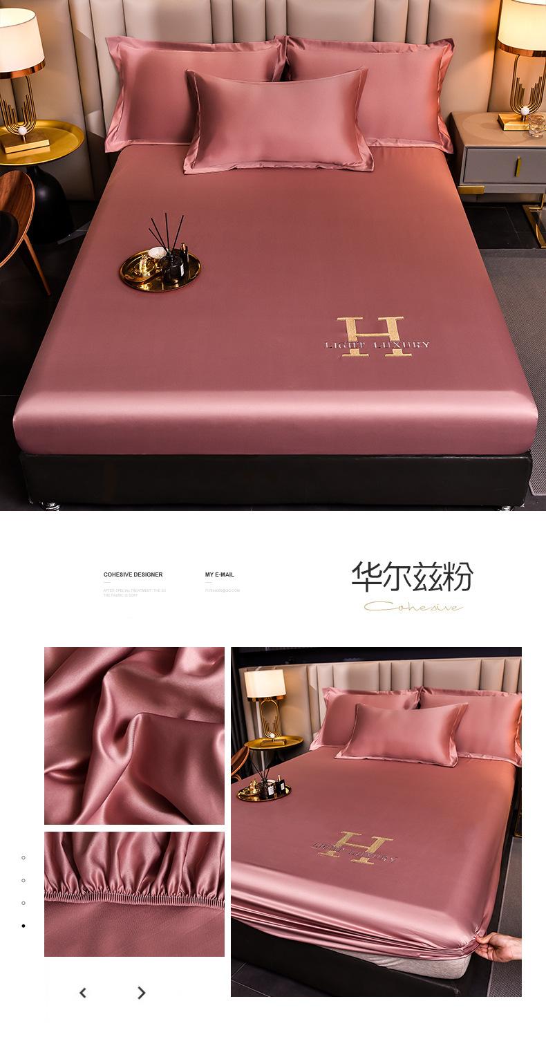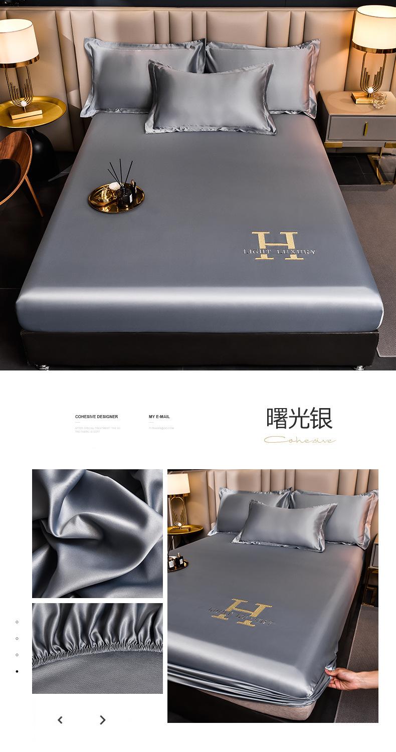 Cubrecama de Seda de Hielo de Verano 2025 Cubrecama de Color Sólido Ropa de Cama Todo Incluido Cubierta Protectora Bordada Cubrecama Colchoneta de Seda de Hielo