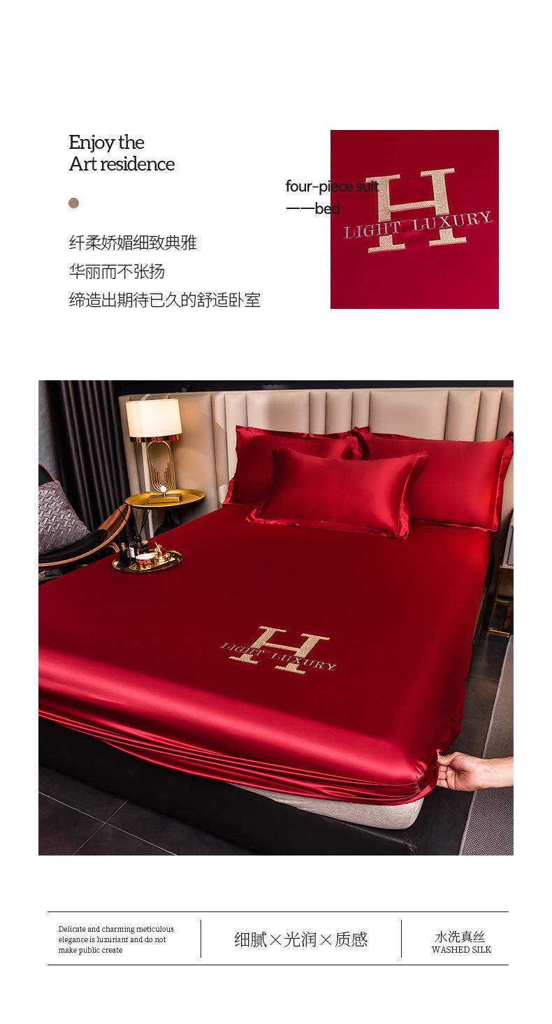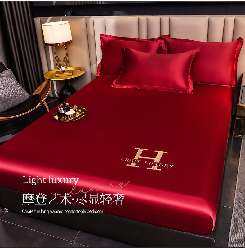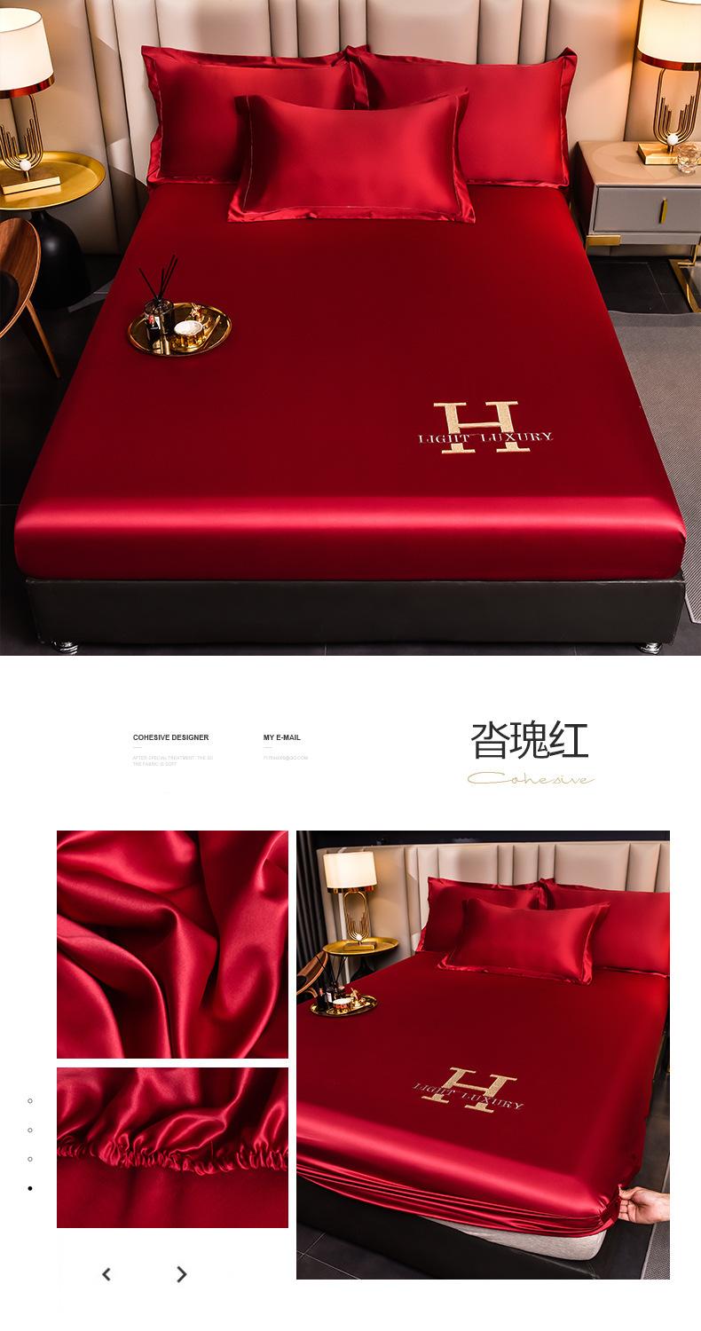 Cubrecama de Seda de Hielo de Verano 2025 Cubrecama de Color Sólido Ropa de Cama Todo Incluido Cubierta Protectora Bordada Cubrecama Colchoneta de Seda de Hielo