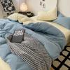 Juego de Cuatro Piezas de Algodón Lavado de Color Puro Doble Ins Sencillo Cama Sábanas Funda de Edredón Dormitorio de Estudiantes Juego de Cama de Tres Piezas Sábanas al Por Mayor