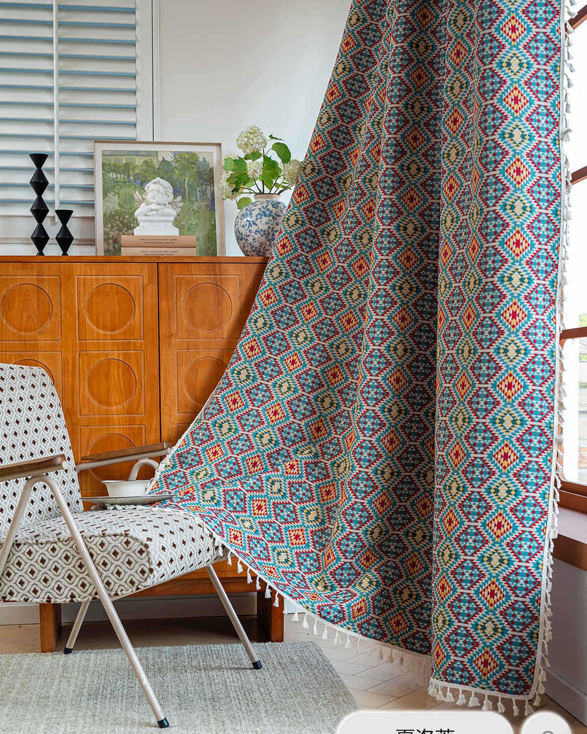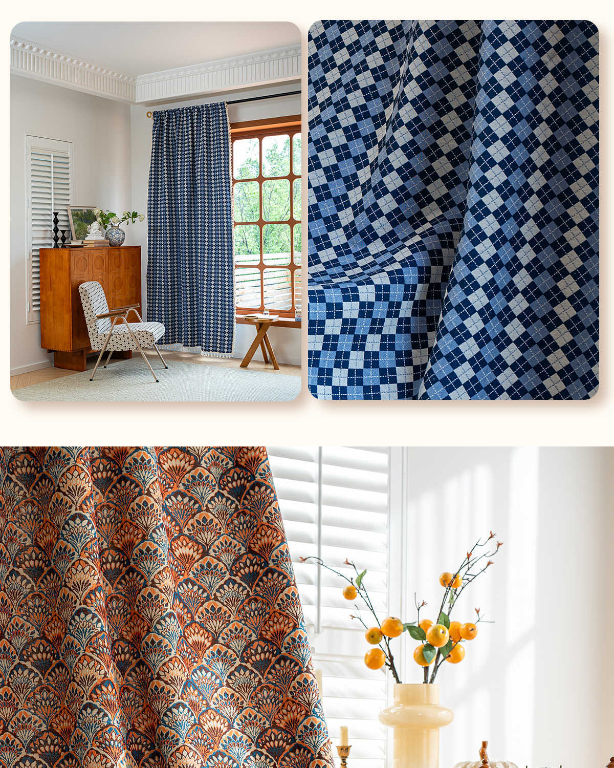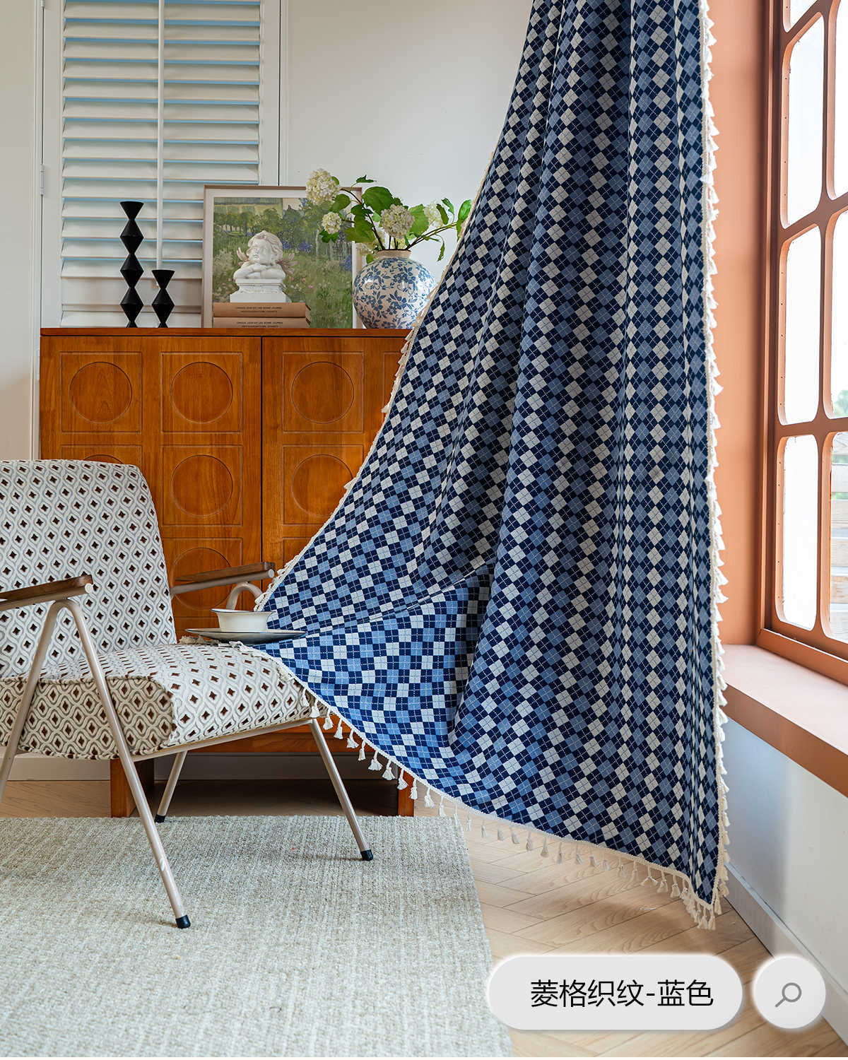 Cortinas Jacquard Gruesas Youzhuo Bloqueo de Color Geométrico Cortinas Terminadas Cortinas de Cocina Cortinas de Dormitorio Ventana Mirador Semicortinas Decorativas