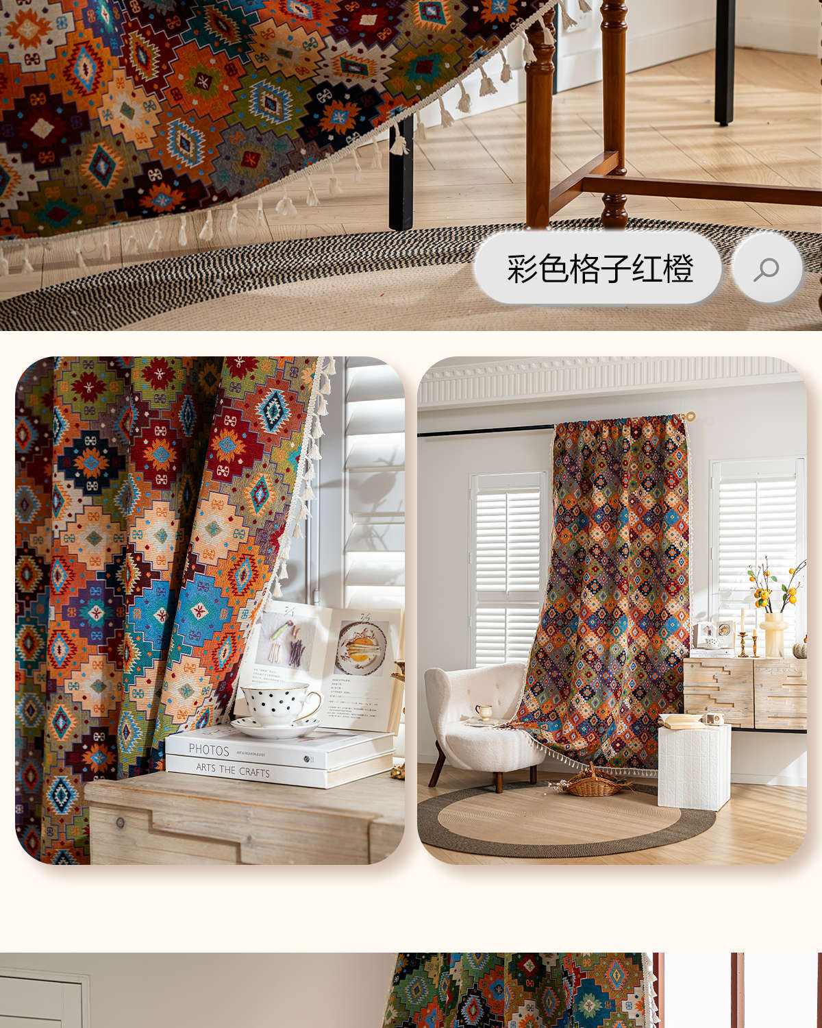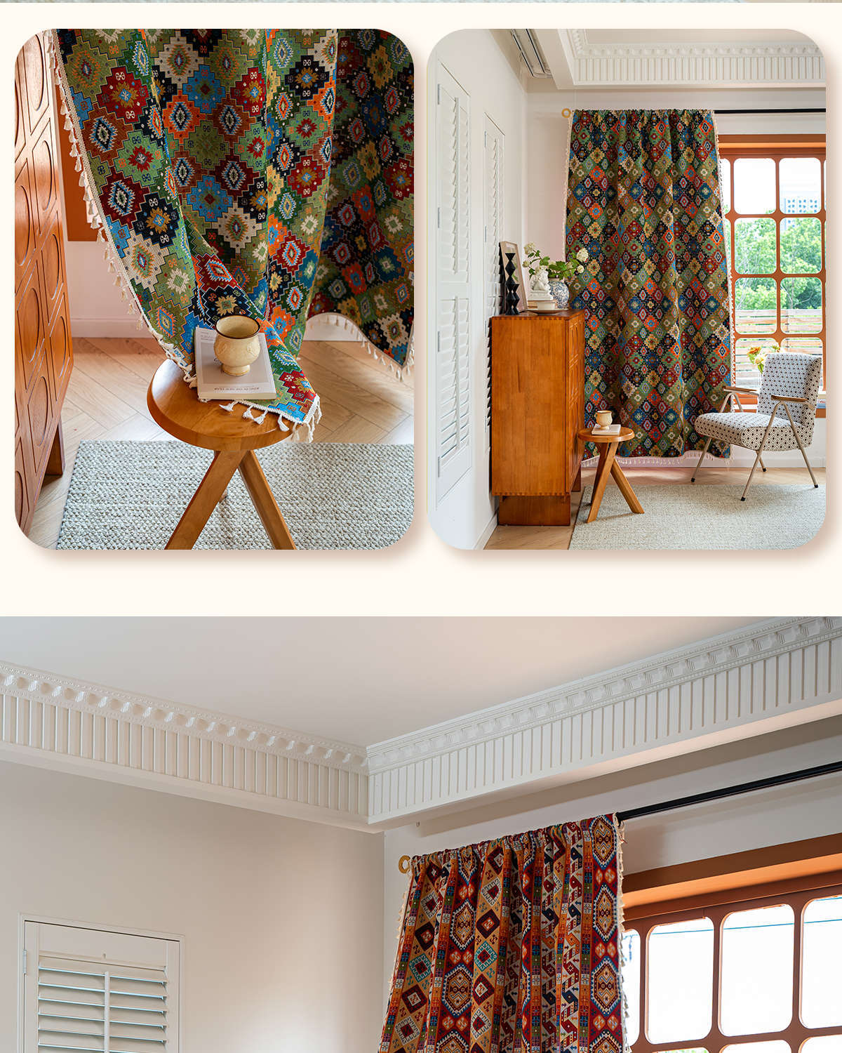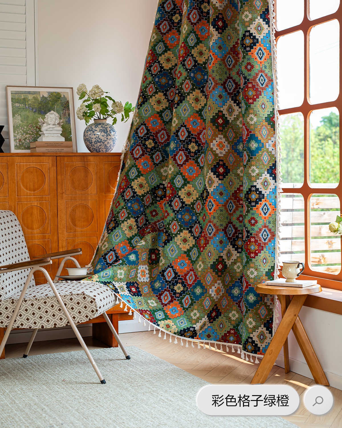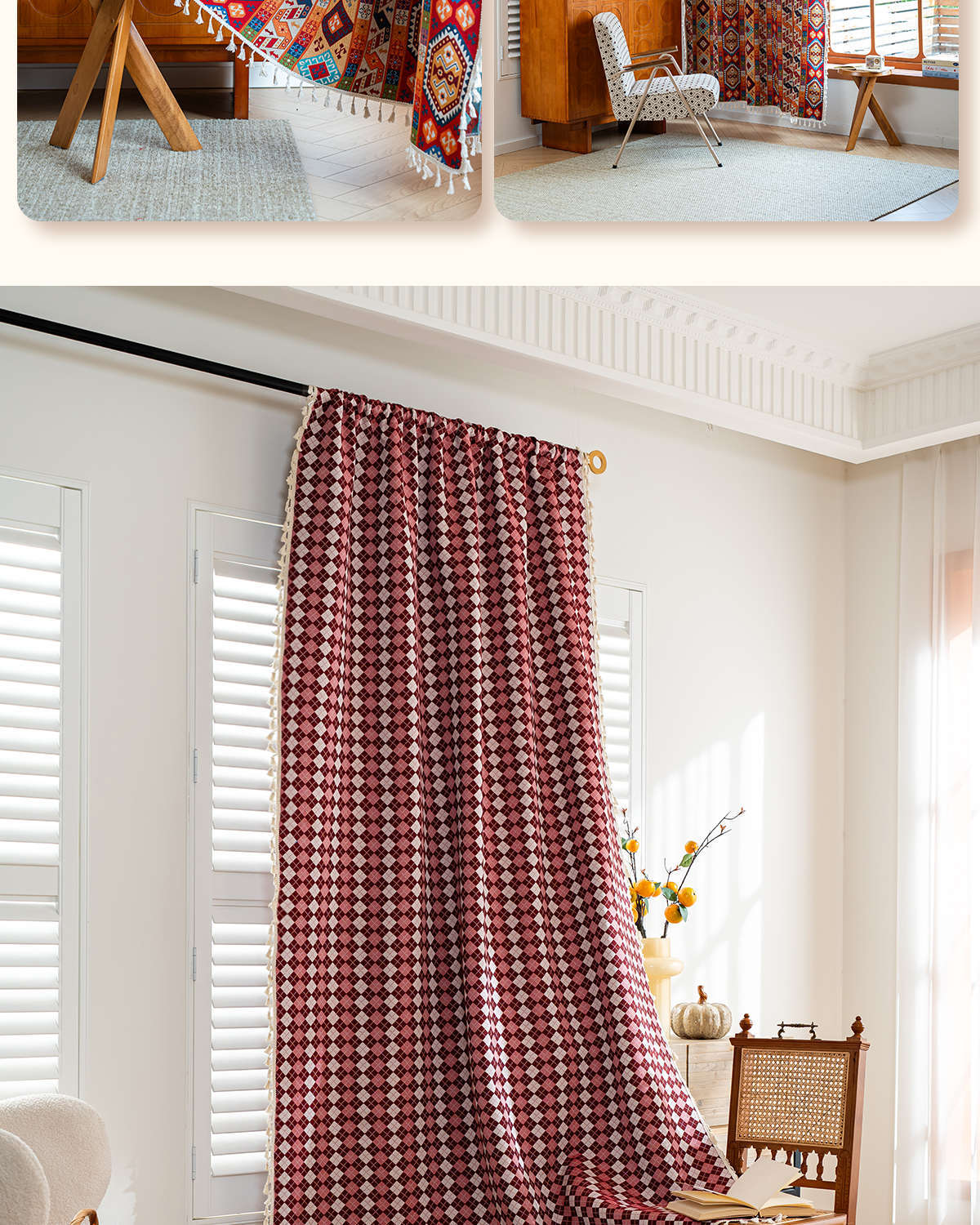 Cortinas Jacquard Gruesas Youzhuo Bloqueo de Color Geométrico Cortinas Terminadas Cortinas de Cocina Cortinas de Dormitorio Ventana Mirador Semicortinas Decorativas