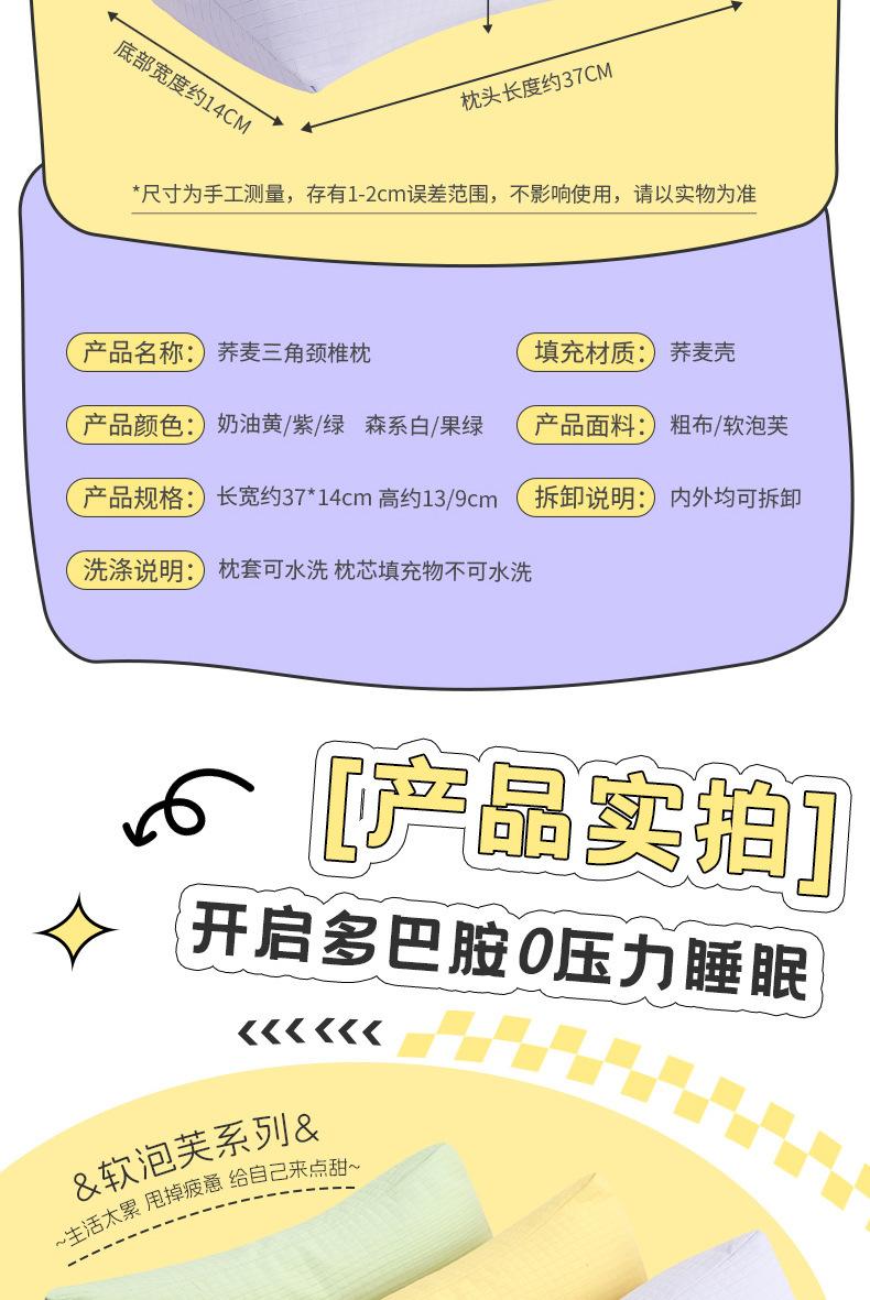 Green apple buckwheat triangular pillow + 100g buckwheat bun, Purple buckwheat triangle pillow + 100g buckwhea...