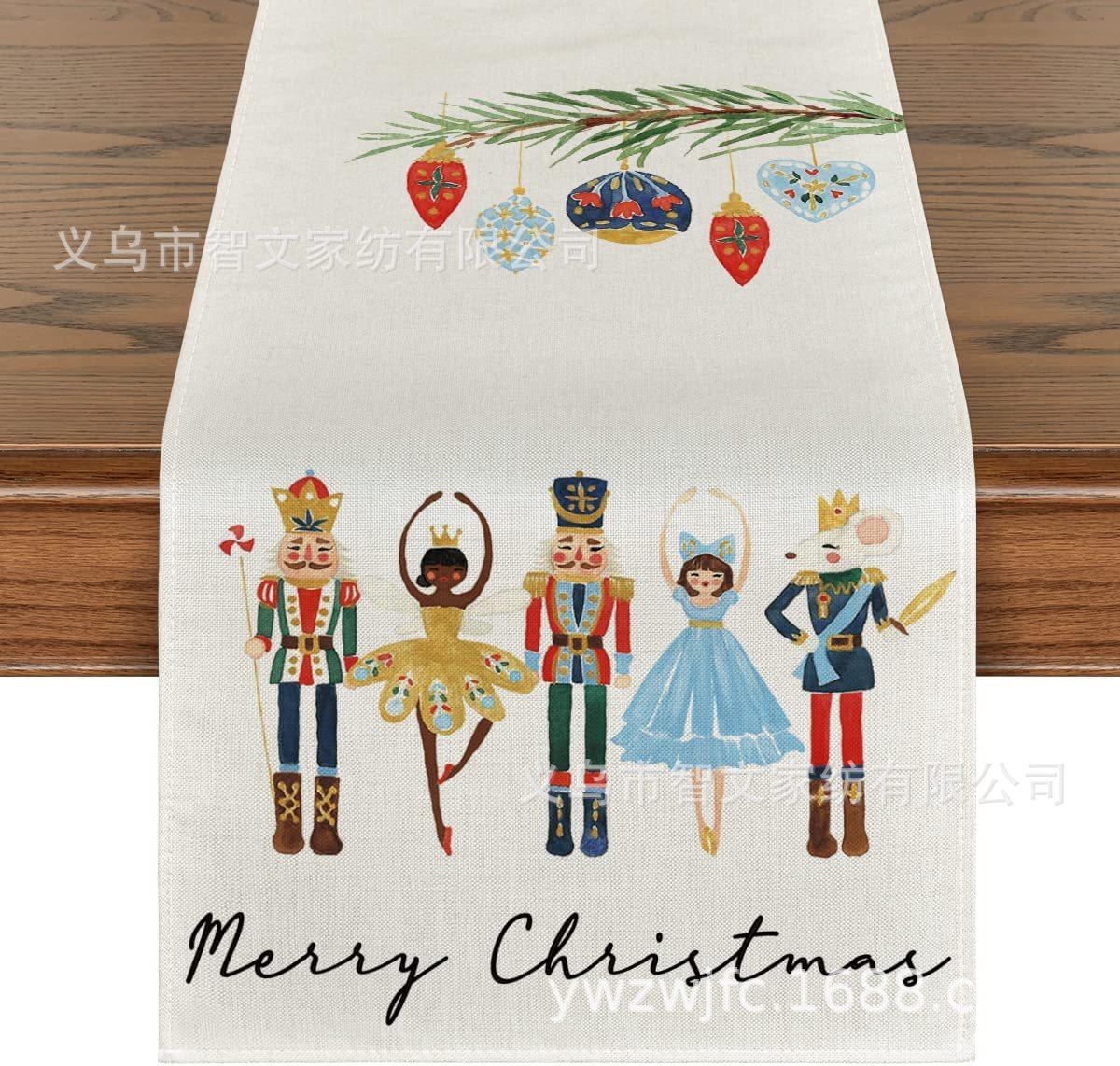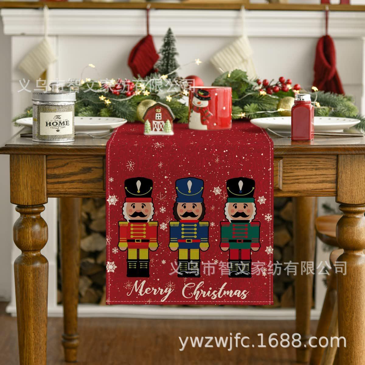 Amazon popular Navidad invierno lino camino de mesa decoración del hogar restaurante estampado mantel camino de mesa