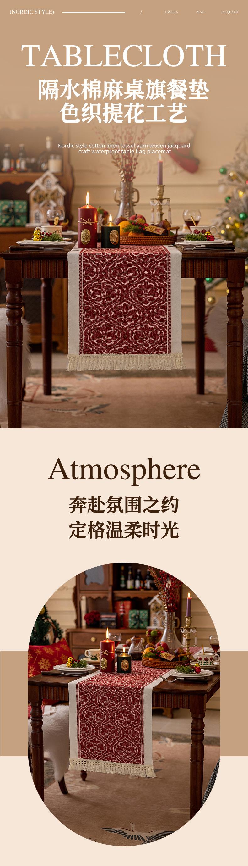 2025 Nueva Decoración para Restaurante en Casa Estilo Escandinavo Algodón y Lino Borla Hilado Teñido Jacquard Artesanal Impermeable Camino de Mesa Mantel