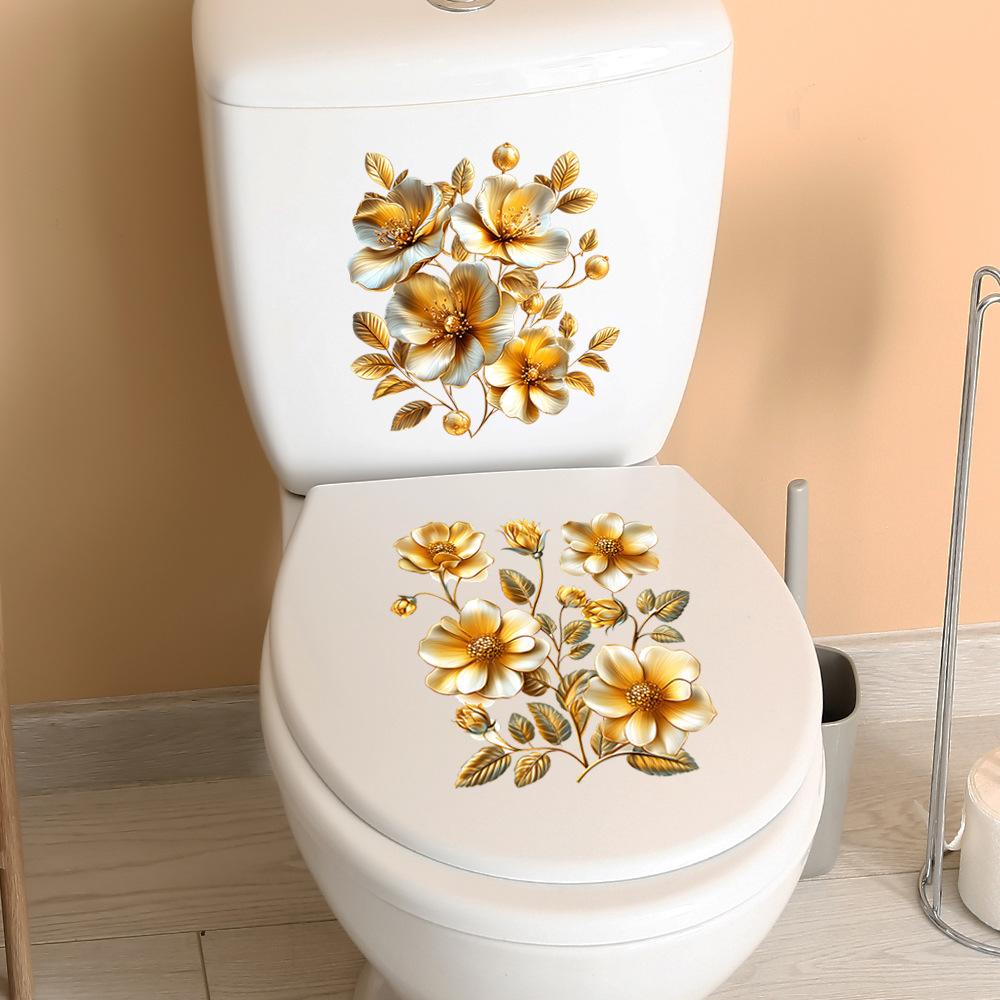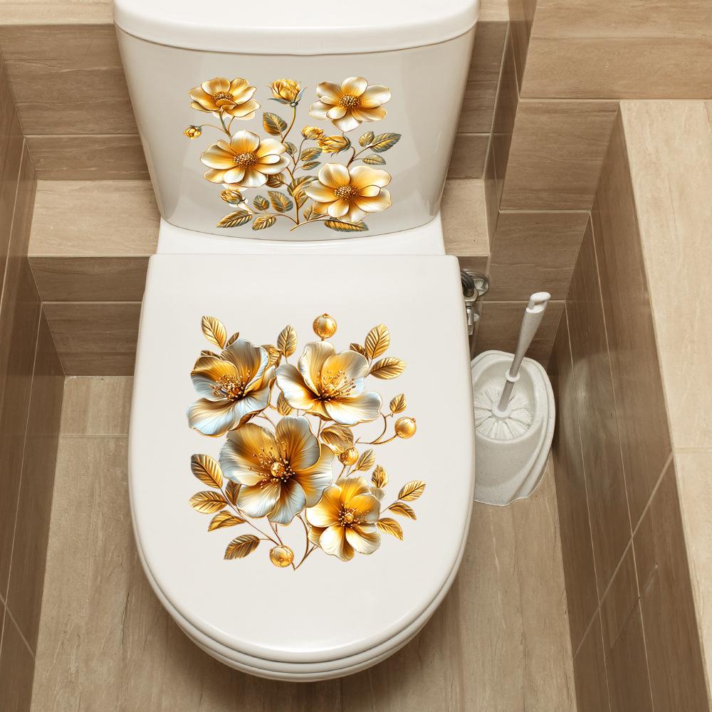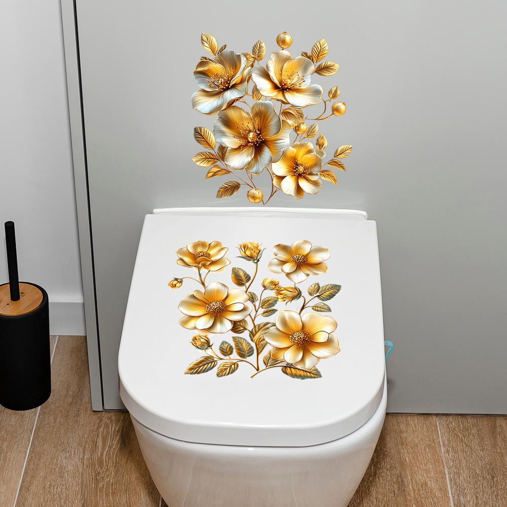 Simulación tridimensional flor dorada pegatinas para inodoro decoración del hogar pegatinas de pared autoadhesivas venta al por mayor HY-M446