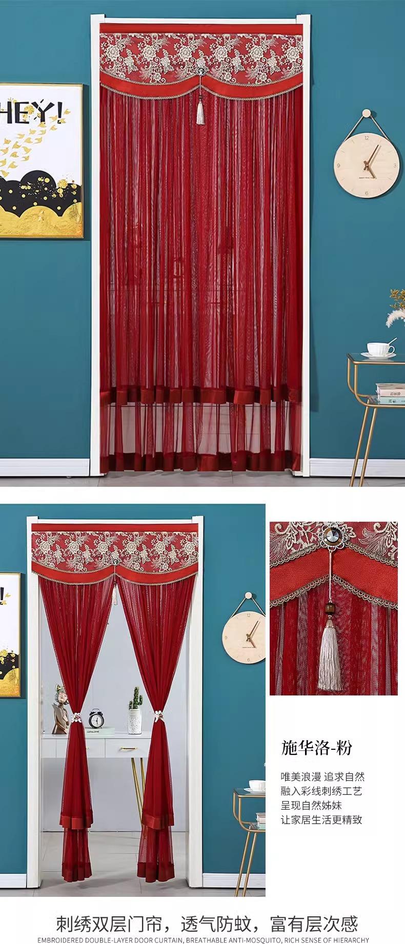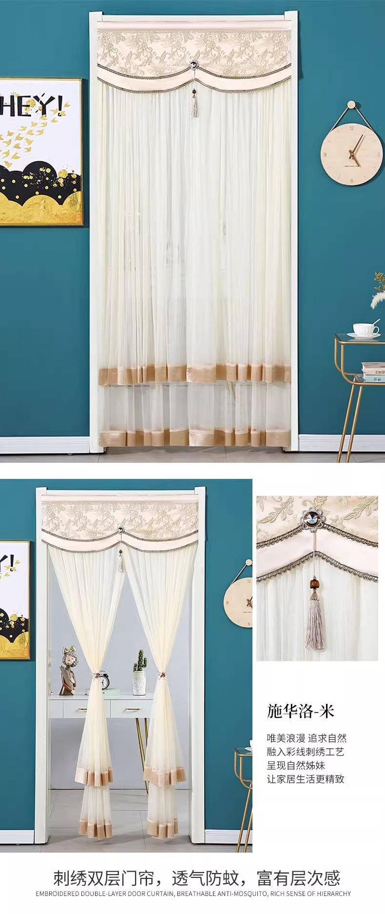 Cortina de Puerta de Dormitorio de Lujo Ligero para el Hogar, Anti-mosquitos, Anti-privacidad, Sin Perforaciones, Cortina de Hilo, Cortina de Partición, Cortina Colgante para las Cuatro Estaciones, Nuevo Estilo