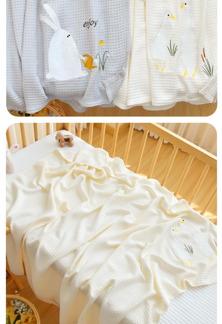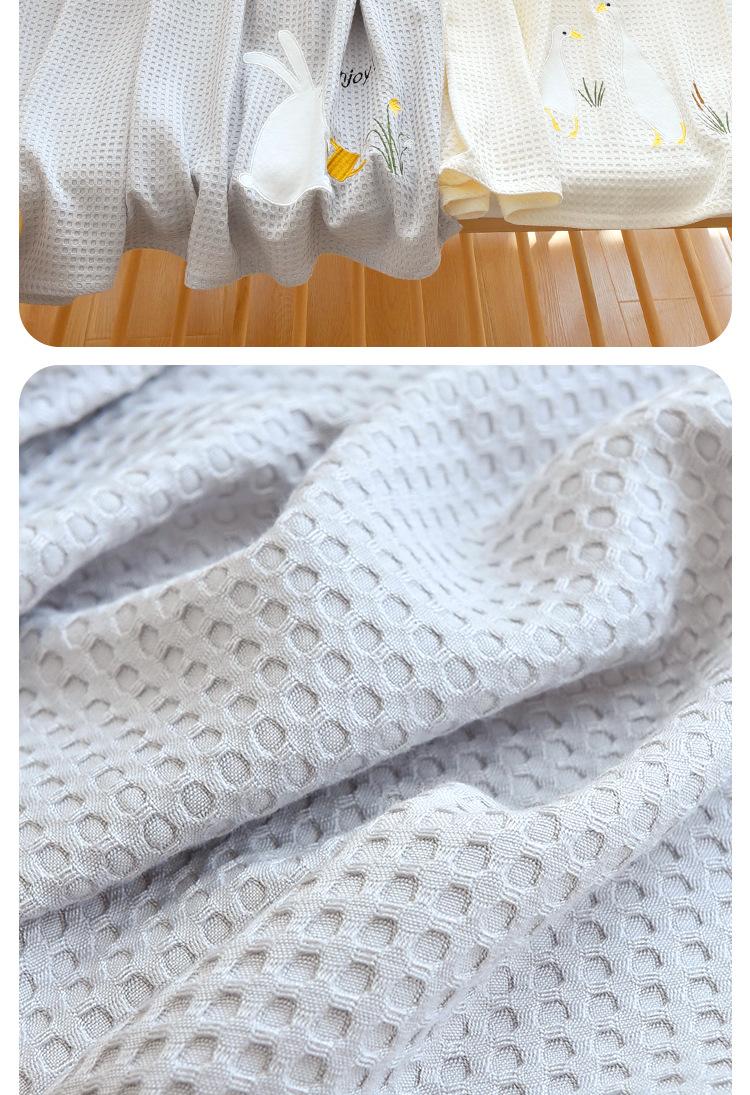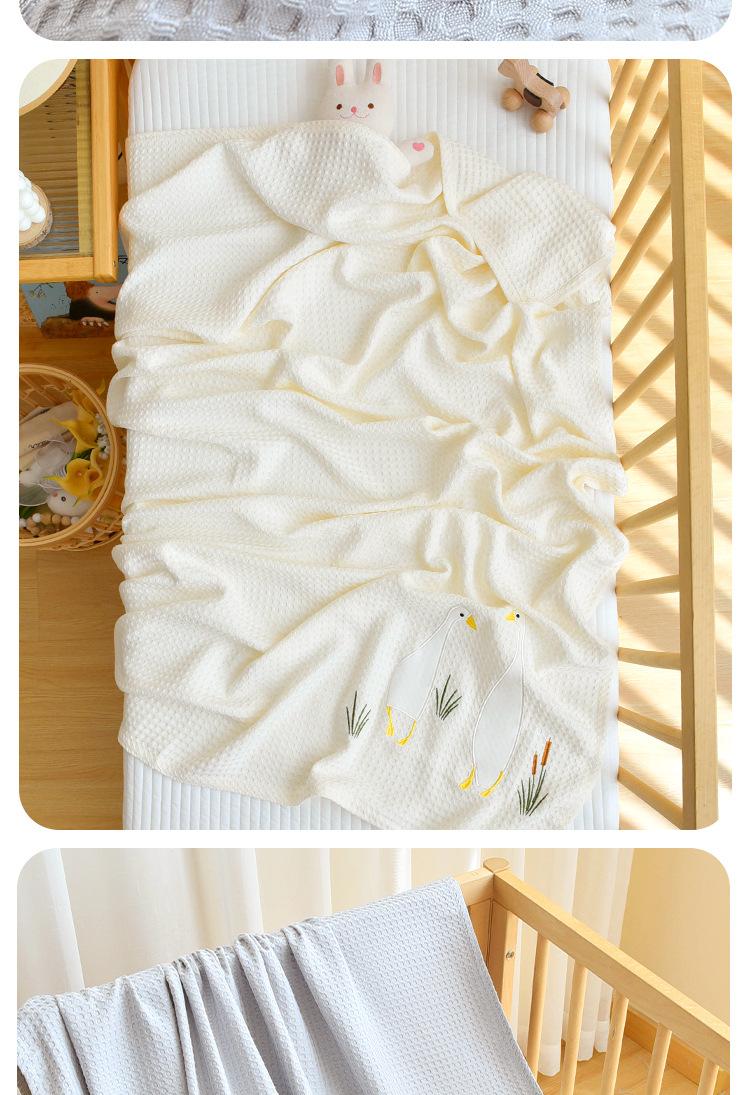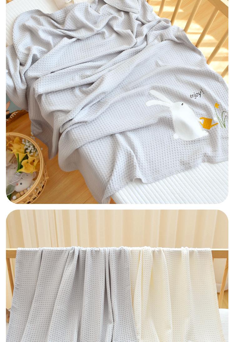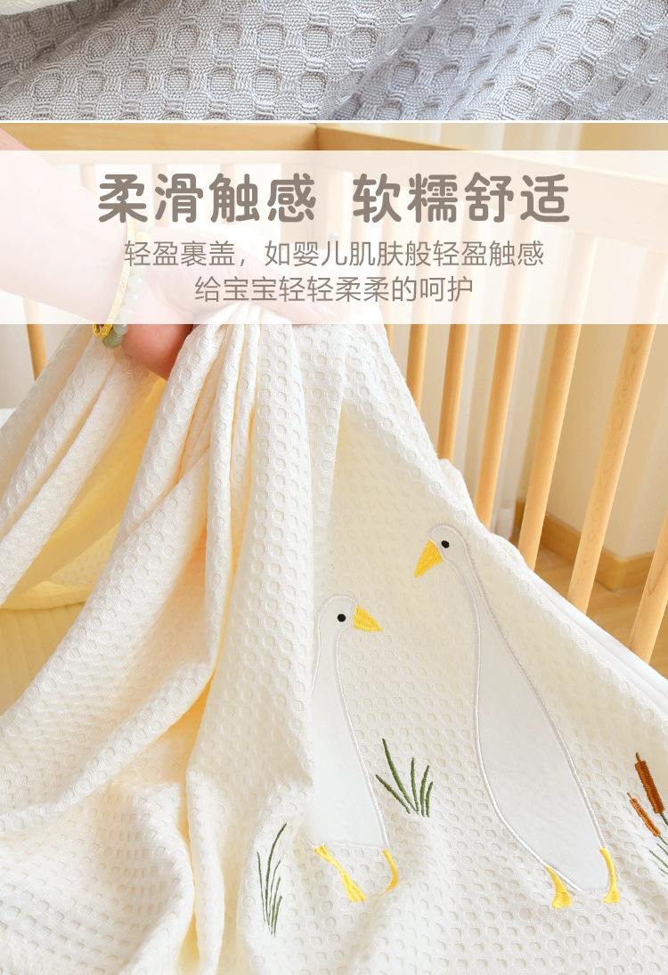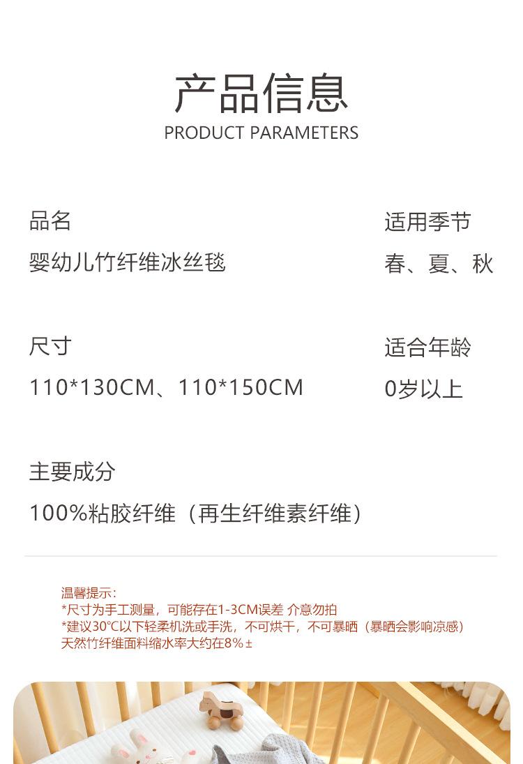 Manta de seda helada de fibra de bambú para bebés Esta manta de fibra de bambú tiene hilo fino y es una manta relativamente suave. La tela es tejido gofrado 21s, El tejido gofrado tiene una estructura densa y es más duradero. La tela de fibra de bambú tiene una sensación fresca natural, por lo que es fresca pero no fría en verano. Absorbe el sudor, es transpirable y no pegajoso, lo que le brinda a su bebé un ambiente cómodo para dormir. Suave y ajustado, adecuado tanto para adultos como para bebés. La fibra de bambú tampoco produce olor fácilmente. Hecho con bordado de aplique, las puntadas son limpias y no rozarán la piel del bebé. Calidad clase A, sin fluorescencia. El acolchado está doblado por todos lados y no es fácil de desenredar. Consejos de lavado: Lavar a mano a 30°C, ciclo suave. Lavar a máquina en ciclo suave (poner en una bolsa de lavandería) No enjuagar, lavar a alta temperatura y exponer al sol están prohibidos. El lavado a alta temperatura o la exposición al sol afectarán la sensación y la frescura de la tela. Material: 100% viscosa (fibra de celulosa regenerada) Talla: 110*130cm adecuado para 1-3 años (alrededor de 400 gramos) 110*150cm es adecuado para niños de 3 a 8 años (alrededor de 460 gramos) 150*200cm es adecuado para niños mayores de 8 años y adultos (alrededor de 840 gramos) 180*200cm es adecuado para un adulto (alrededor de 1000 gramos) 200*230cm es adecuado para un adulto y un niño (alrededor de 1290 gramos) 220*250cm es adecuado para dos adultos (alrededor de 1610 gramos) Temporada adecuada: finales de primavera, verano, principios de otoño. La fibra de bambú natural tiene una gran sección transversal y una fuerte absorción de humedad. La tasa de contracción del producto terminado es de aproximadamente el 8%-10% del área, lo que está dentro del rango normal. Nota: El tamaño se mide a mano y el error de aproximadamente 1-3 cm está dentro del rango normal.