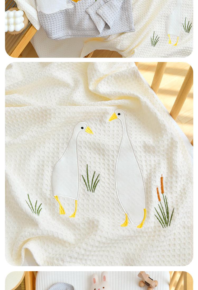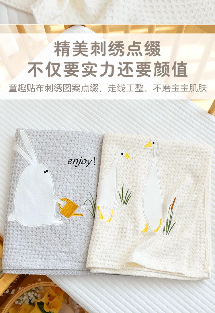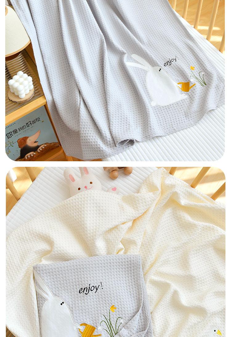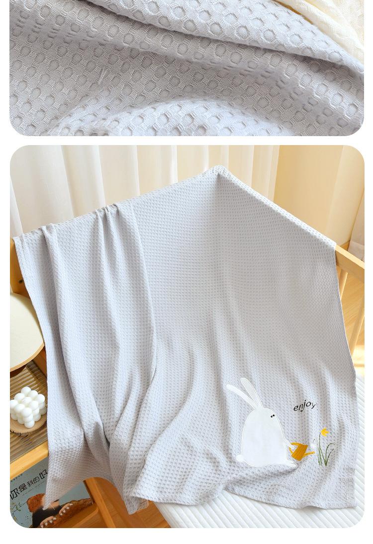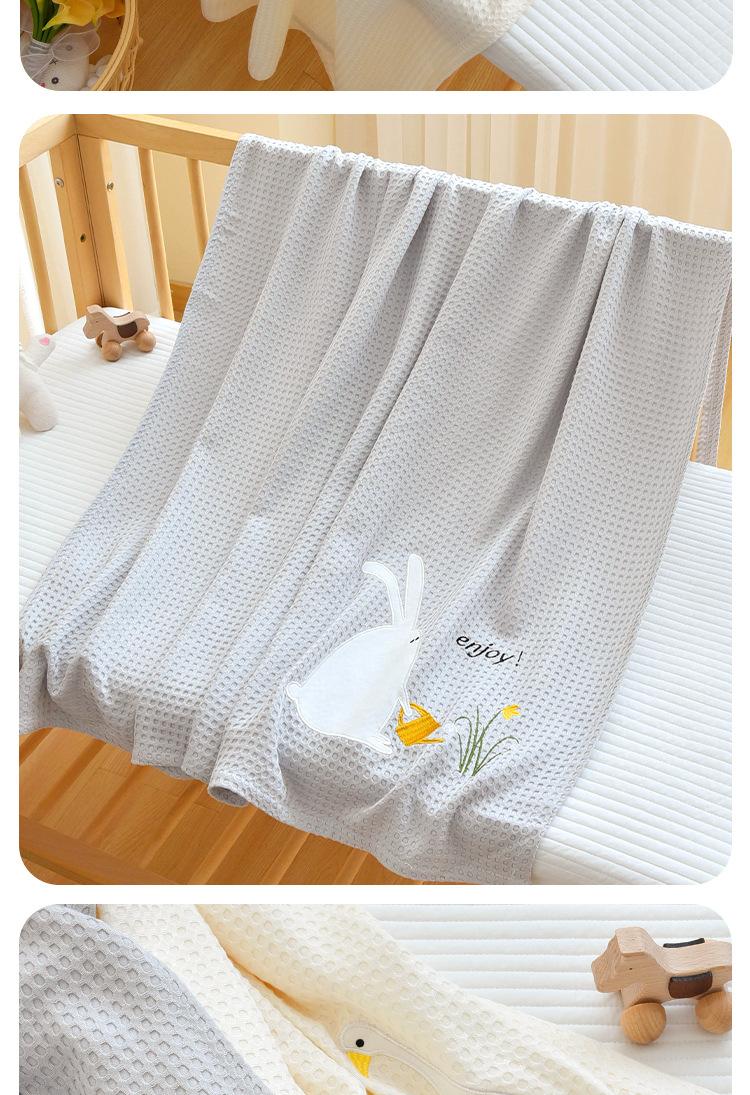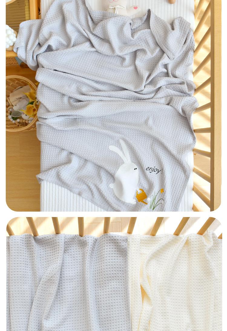 Manta de seda helada de fibra de bambú para bebés Esta manta de fibra de bambú tiene hilo fino y es una manta relativamente suave. La tela es tejido gofrado 21s, El tejido gofrado tiene una estructura densa y es más duradero. La tela de fibra de bambú tiene una sensación fresca natural, por lo que es fresca pero no fría en verano. Absorbe el sudor, es transpirable y no pegajoso, lo que le brinda a su bebé un ambiente cómodo para dormir. Suave y ajustado, adecuado tanto para adultos como para bebés. La fibra de bambú tampoco produce olor fácilmente. Hecho con bordado de aplique, las puntadas son limpias y no rozarán la piel del bebé. Calidad clase A, sin fluorescencia. El acolchado está doblado por todos lados y no es fácil de desenredar. Consejos de lavado: Lavar a mano a 30°C, ciclo suave. Lavar a máquina en ciclo suave (poner en una bolsa de lavandería) No enjuagar, lavar a alta temperatura y exponer al sol están prohibidos. El lavado a alta temperatura o la exposición al sol afectarán la sensación y la frescura de la tela. Material: 100% viscosa (fibra de celulosa regenerada) Talla: 110*130cm adecuado para 1-3 años (alrededor de 400 gramos) 110*150cm es adecuado para niños de 3 a 8 años (alrededor de 460 gramos) 150*200cm es adecuado para niños mayores de 8 años y adultos (alrededor de 840 gramos) 180*200cm es adecuado para un adulto (alrededor de 1000 gramos) 200*230cm es adecuado para un adulto y un niño (alrededor de 1290 gramos) 220*250cm es adecuado para dos adultos (alrededor de 1610 gramos) Temporada adecuada: finales de primavera, verano, principios de otoño. La fibra de bambú natural tiene una gran sección transversal y una fuerte absorción de humedad. La tasa de contracción del producto terminado es de aproximadamente el 8%-10% del área, lo que está dentro del rango normal. Nota: El tamaño se mide a mano y el error de aproximadamente 1-3 cm está dentro del rango normal.