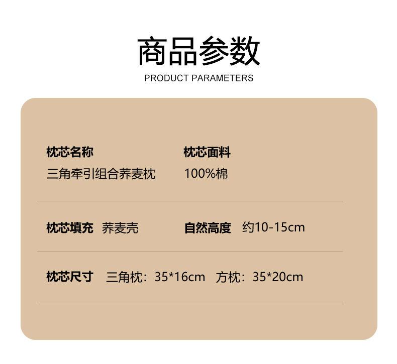 Triangle Traction Combination Pillow-Khaki【Full Buckwheat Hull Filling】Single