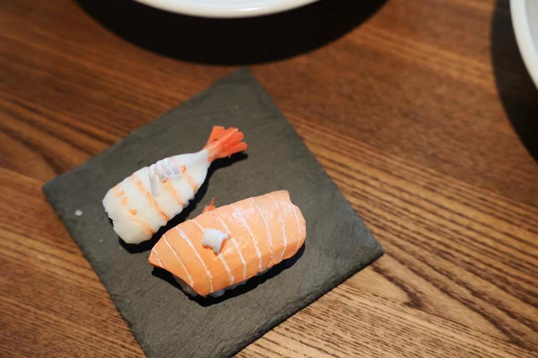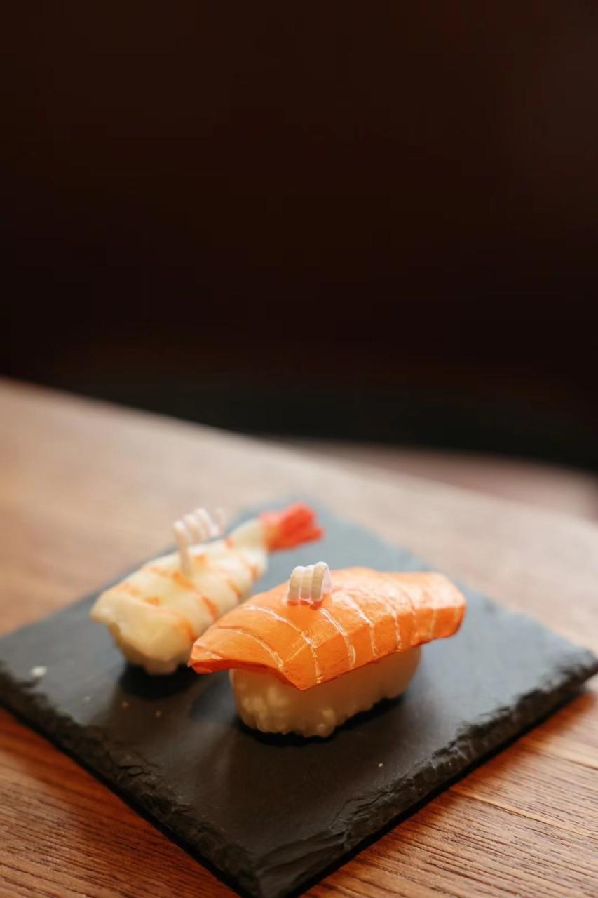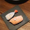 Shrimp sushi + salmon sushi + plate 10×10cm
