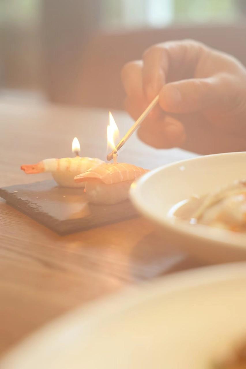 Vela Aromática de Salmón para Sushi Japonés Creativa y Linda, Utilería para Fotografía, Productos de Fábrica de Origen