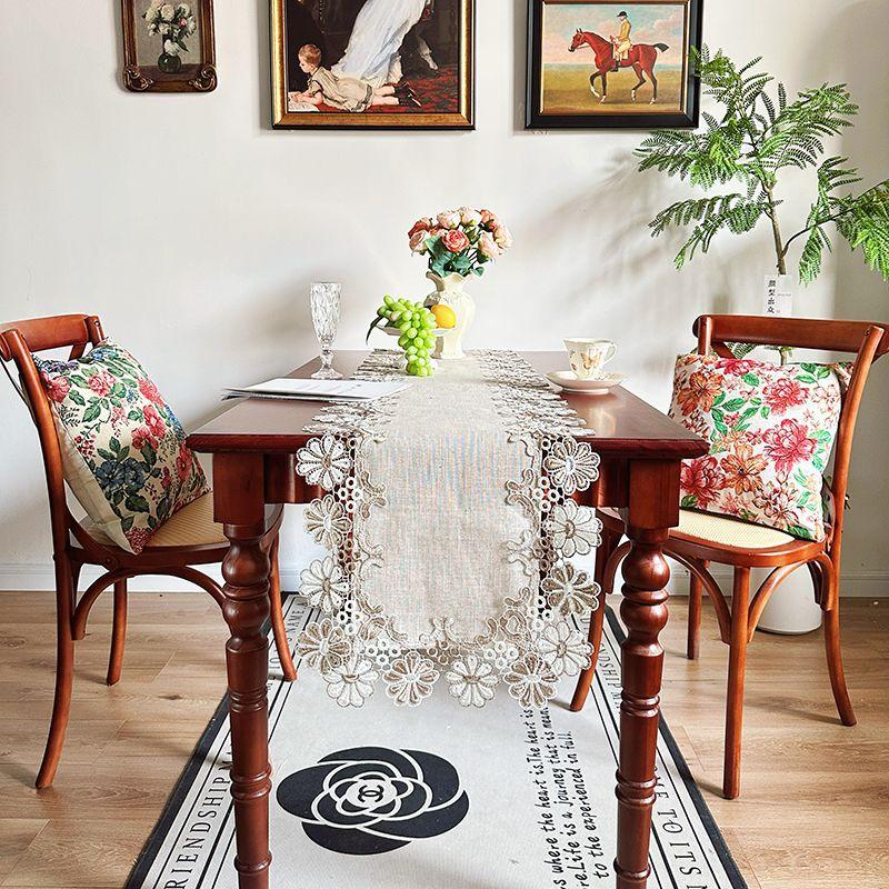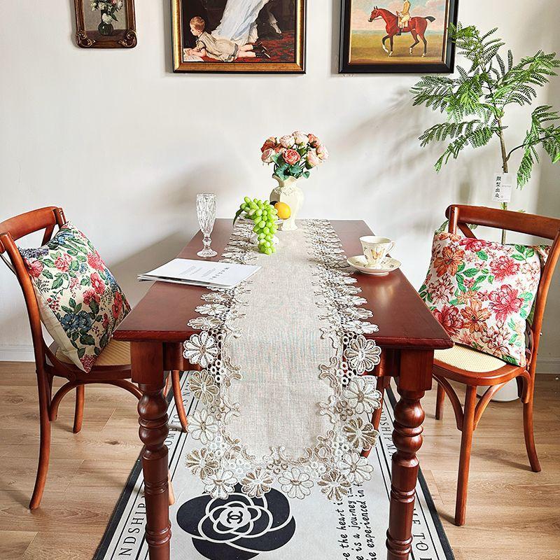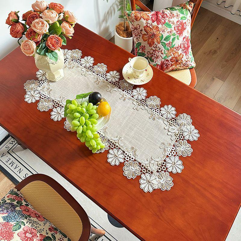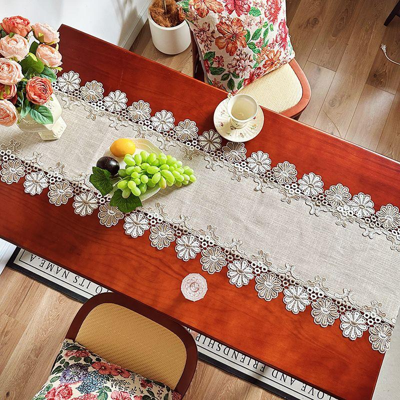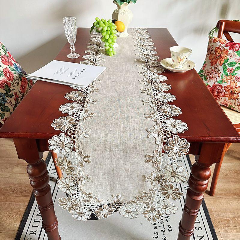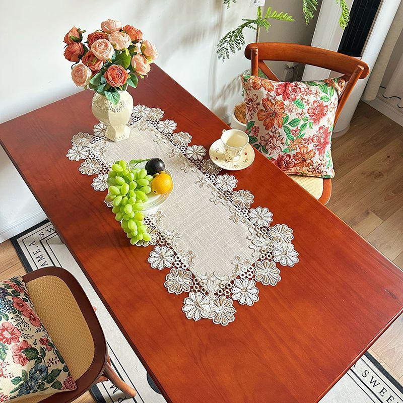 Mantel de encaje hueco de poliéster algodón nórdico transfronterizo nuevo, estilo europeo para el hogar, rectangular, de esquina plana, camino de mesa de tira larga, venta al por mayor