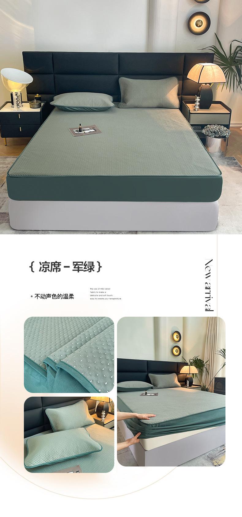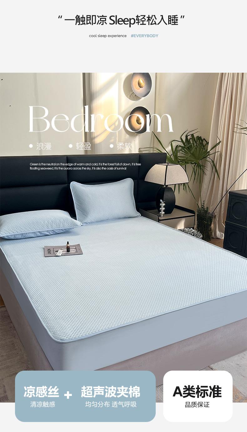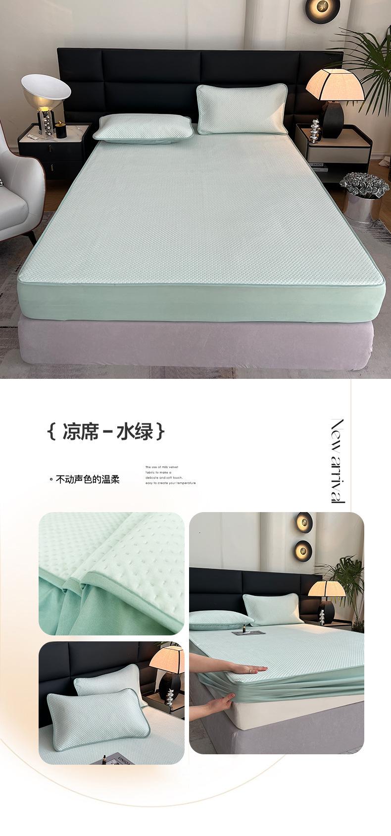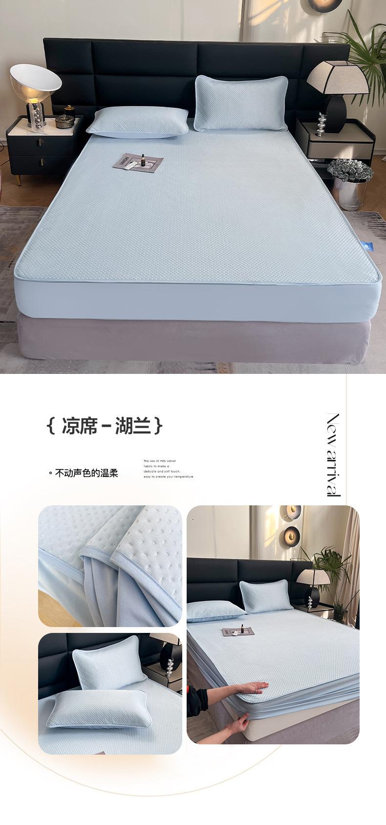 Sábana Acolchada de Seda Fría de Color Sólido al por Mayor 2024 Verano Colchoneta Fresca de Hielo Juego de Tres Piezas Protector de Colchón Simmons