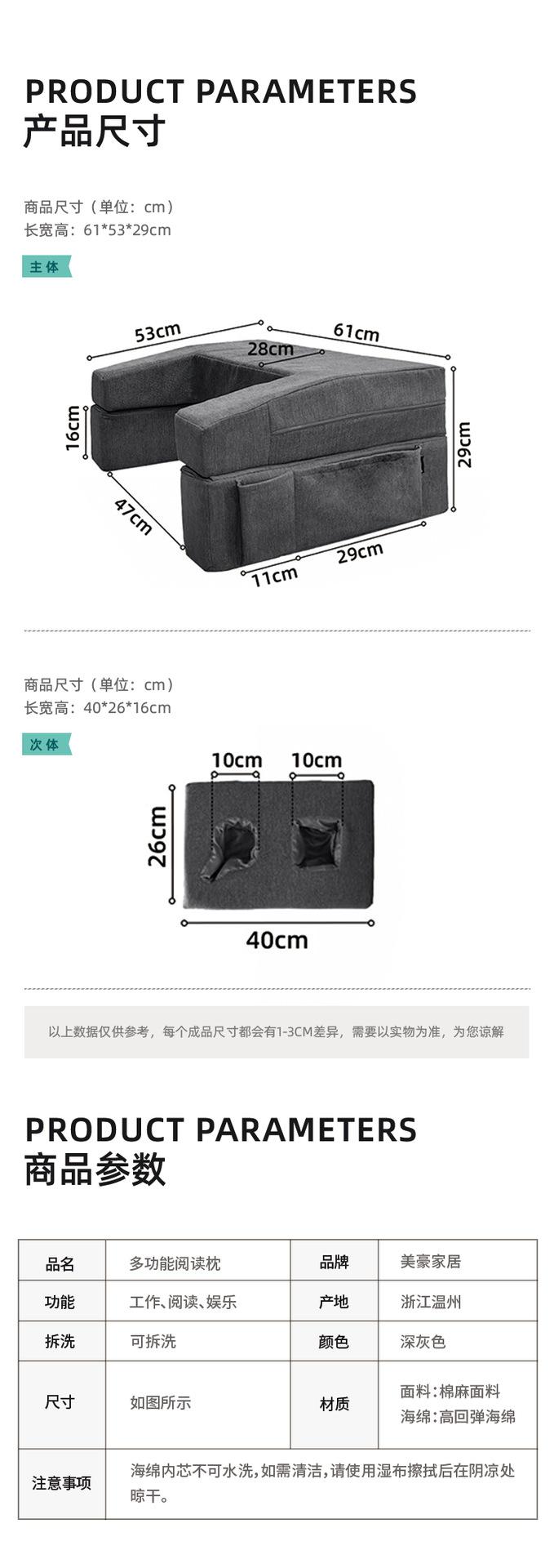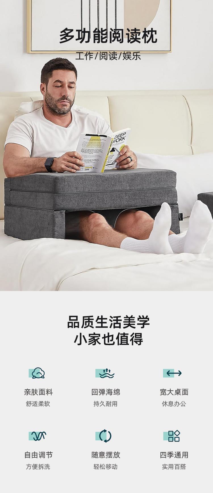 Almohada de Espuma Viscoelástica Personalizada para Fabricante Transfronterizo para Leer en la Cama, Sofá de Trabajo, Mesa de Bolsa Suave con Bolsillo Almohada de Lectura