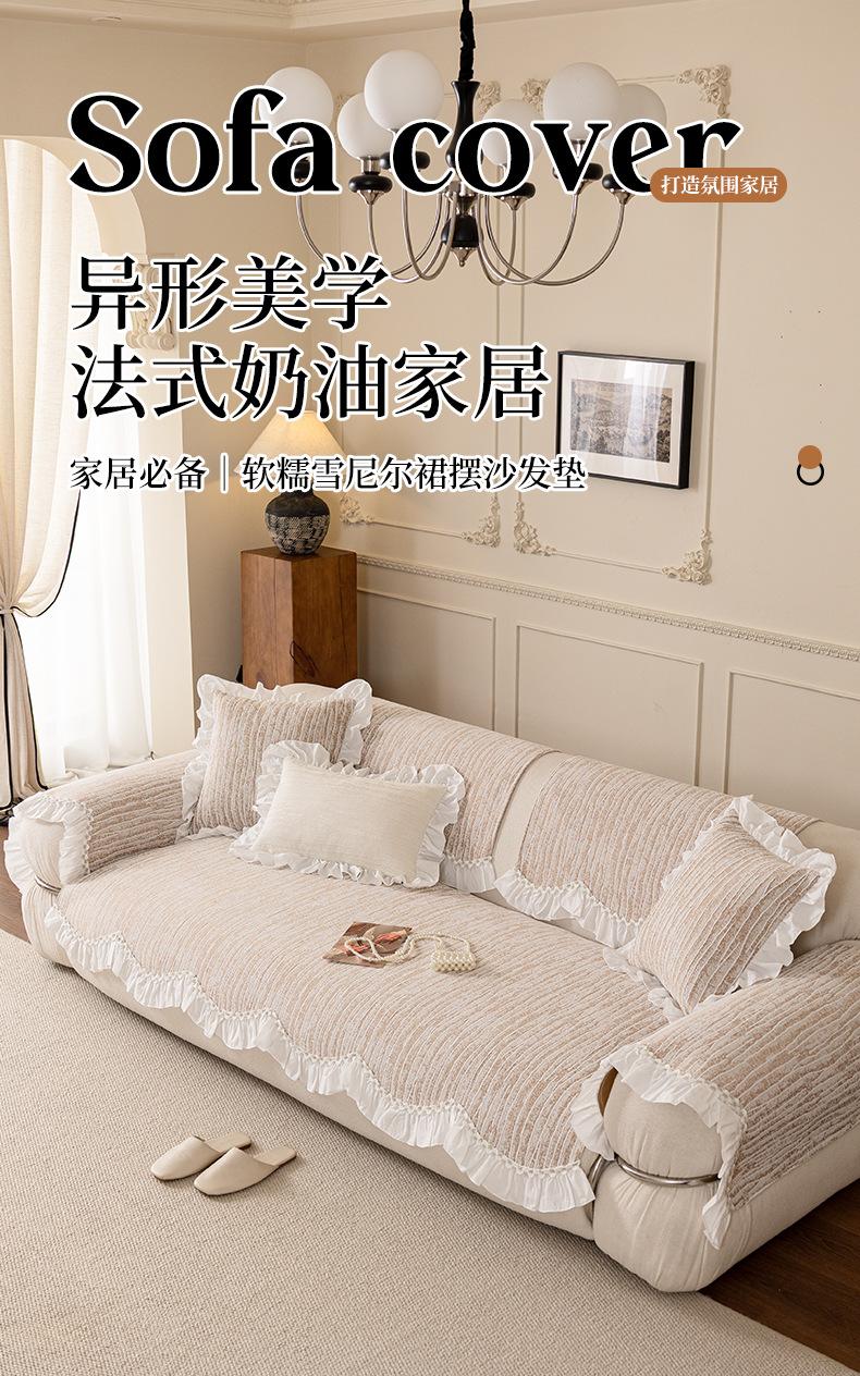 Estilo Nórdico Falda de Alto Peso Chenilla Cojín de Sofá de Una Pieza 2025 Nuevo Estilo Universal Cuatro Estaciones Cojín de Asiento Antideslizante