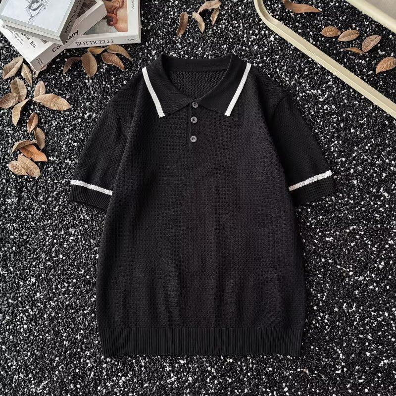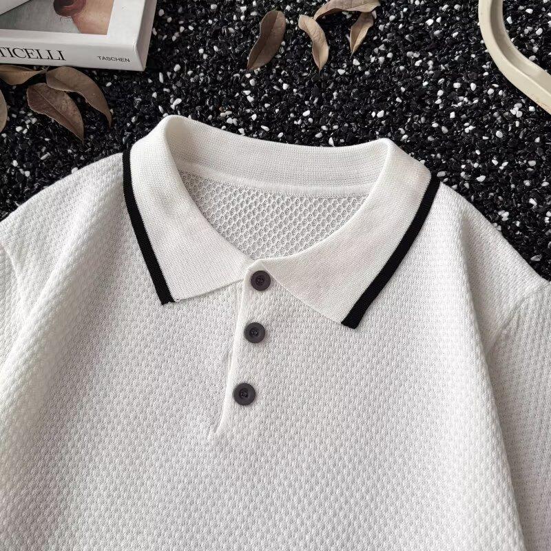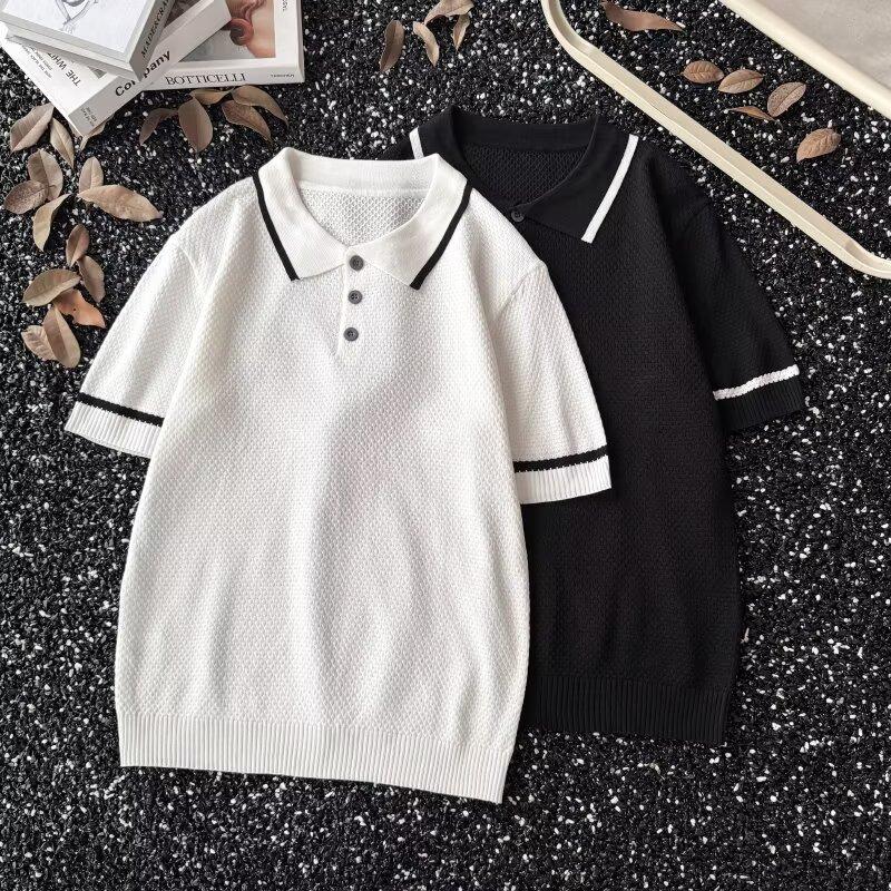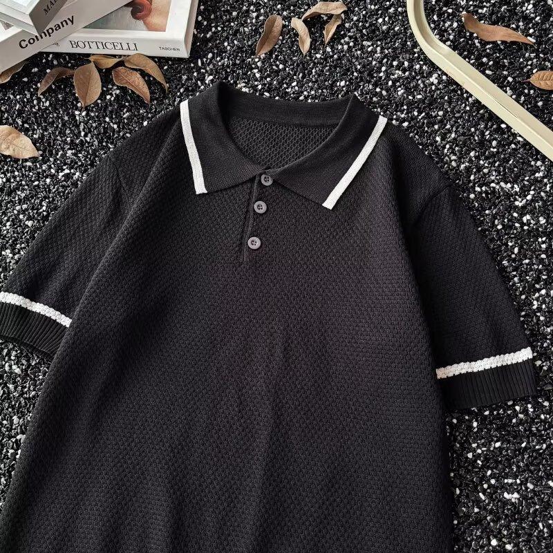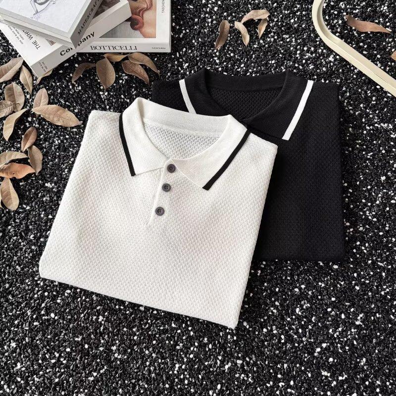 Verano Nueva Camisa de Punto de Manga Corta Hombre Seda de Hielo POLO Cuello Kent Ajuste Slim Clásica Camiseta de Negocios Comercio Exterior Transfronterizo Venta al por Mayor