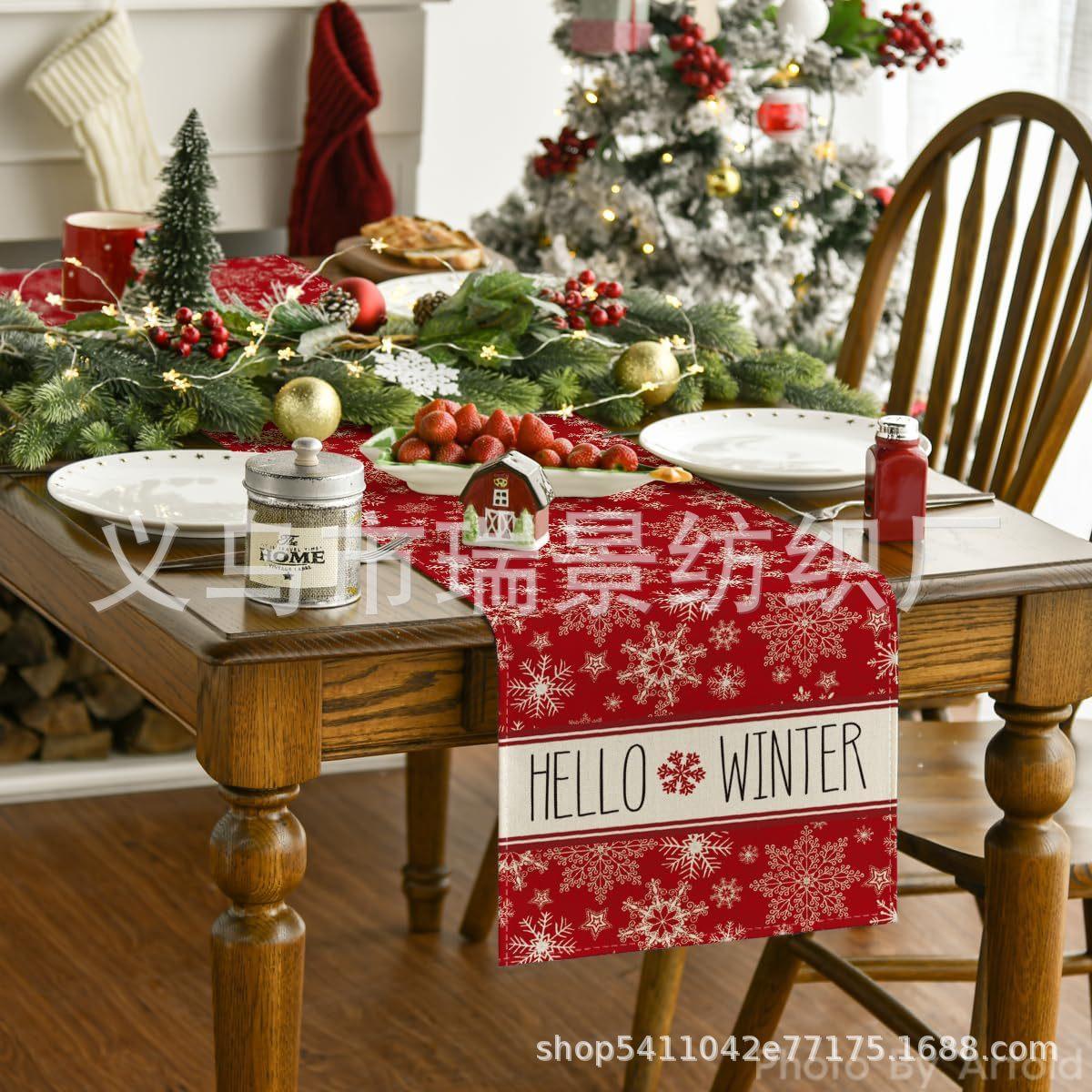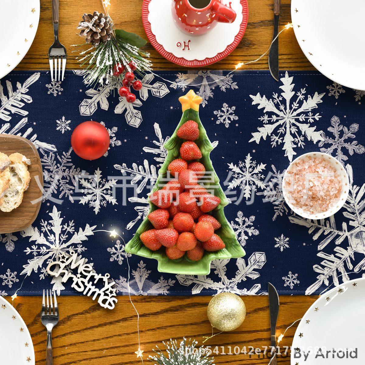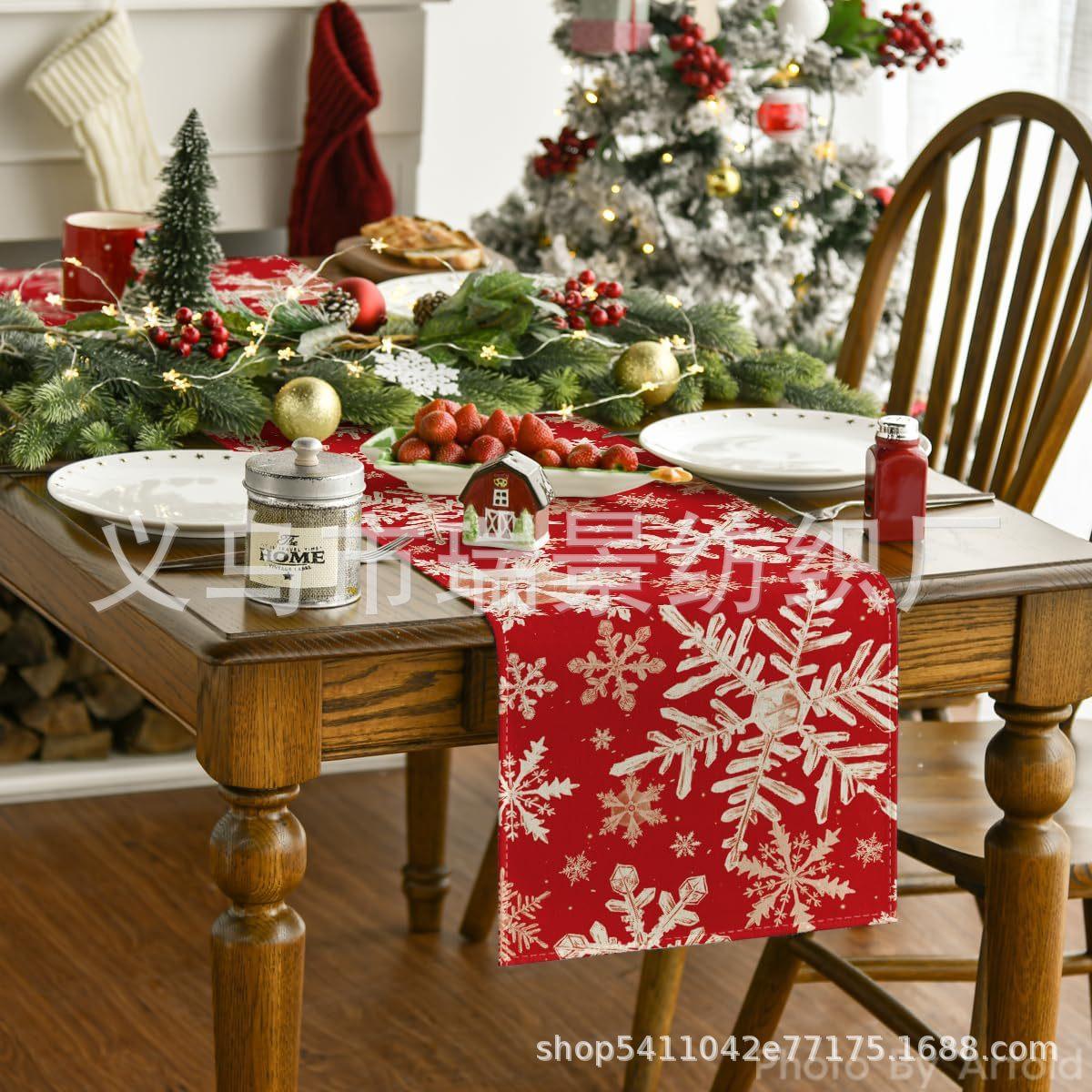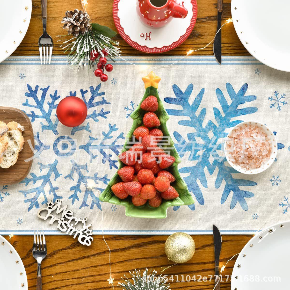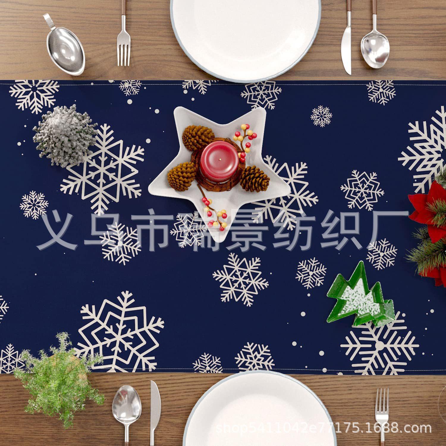 Amazon Más Vendido Invierno Camino de Mesa Transfronterizo Navidad Copo de Nieve Ambiente Festivo Decoración Mesa de Comedor de Cocina Camino de Mesa de Lino