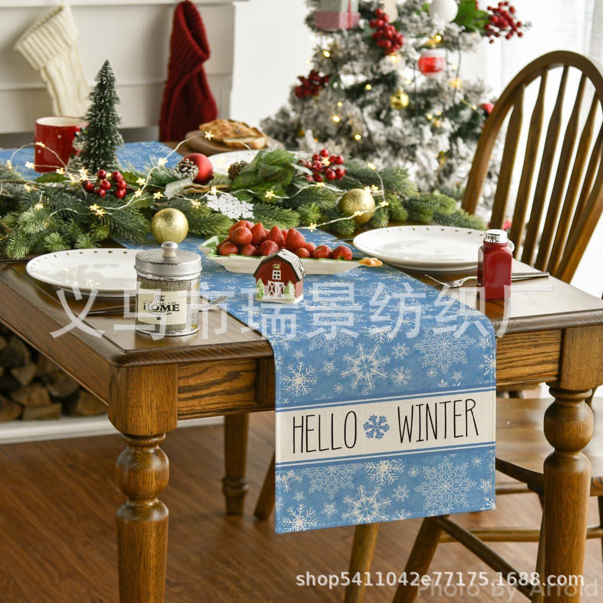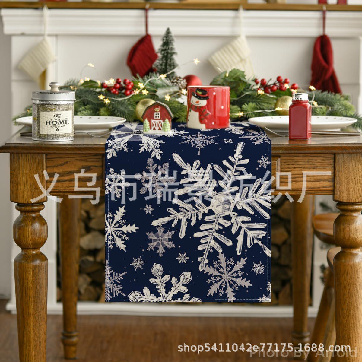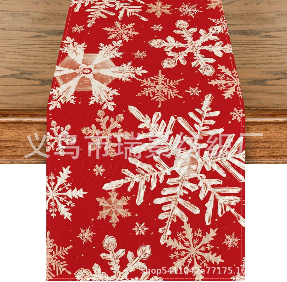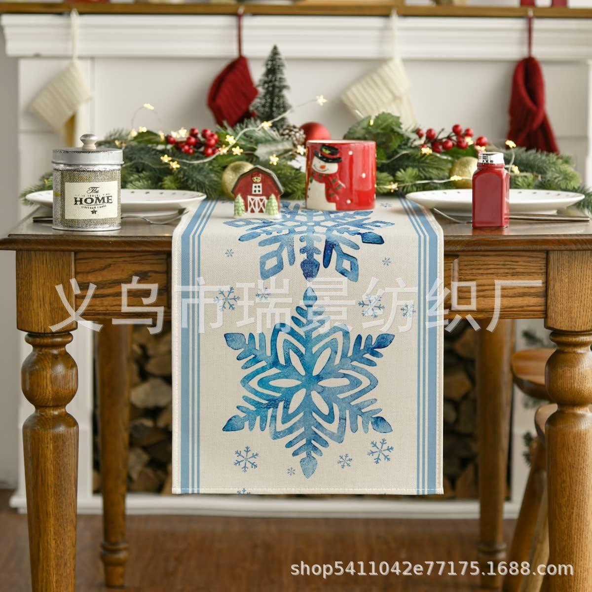 Amazon Más Vendido Invierno Camino de Mesa Transfronterizo Navidad Copo de Nieve Ambiente Festivo Decoración Mesa de Comedor de Cocina Camino de Mesa de Lino