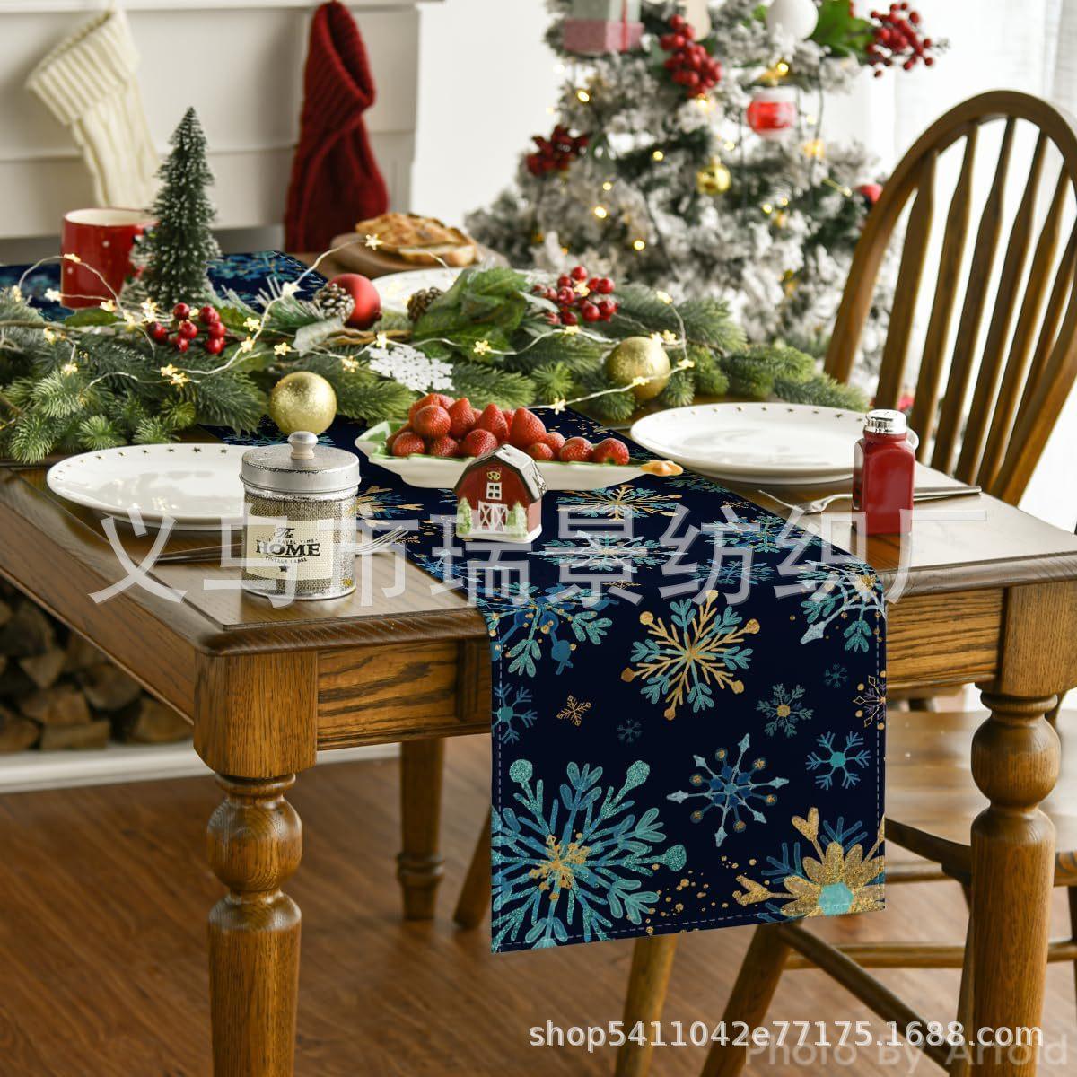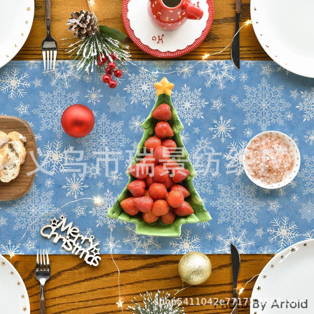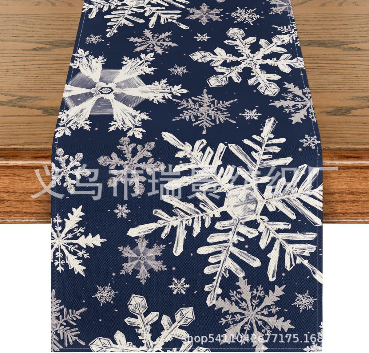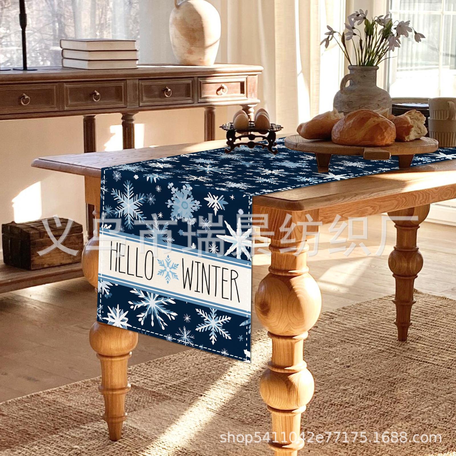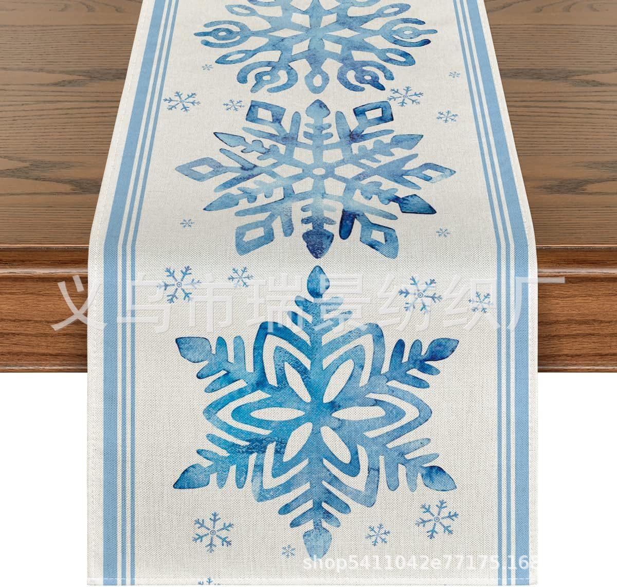 Amazon Más Vendido Invierno Camino de Mesa Transfronterizo Navidad Copo de Nieve Ambiente Festivo Decoración Mesa de Comedor de Cocina Camino de Mesa de Lino